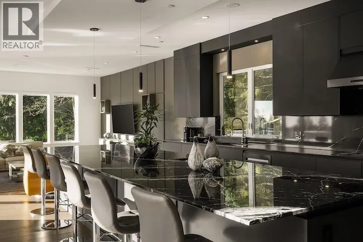 When architecture, setting, & privacy converge, the result is extraordinary. Welcome to 205 Kinsey Drive in Anmore. Privately gated & framed by manicured grounds, this contemporary estate is inspired by sweeping mountain and SFU views. The interior unfolds in a dramatic open plan with soaring ceilings, expansive walls of glass and stone, and a statement black Italian kitchen anchored by a 16-foot island. Luxury materials are thoughtfully curated throughout, highlighted by an elevator wrapped in burnt granite. The lifestyle continues outdoors with a private five-hole golf course, & a walk-out lower level with nearly 12-foot ceilings. Completing the experience: Control4 smart home technology and a spa-like primary retreat with rain and steam shower. A rare offering-designed to be felt. (id:27476)