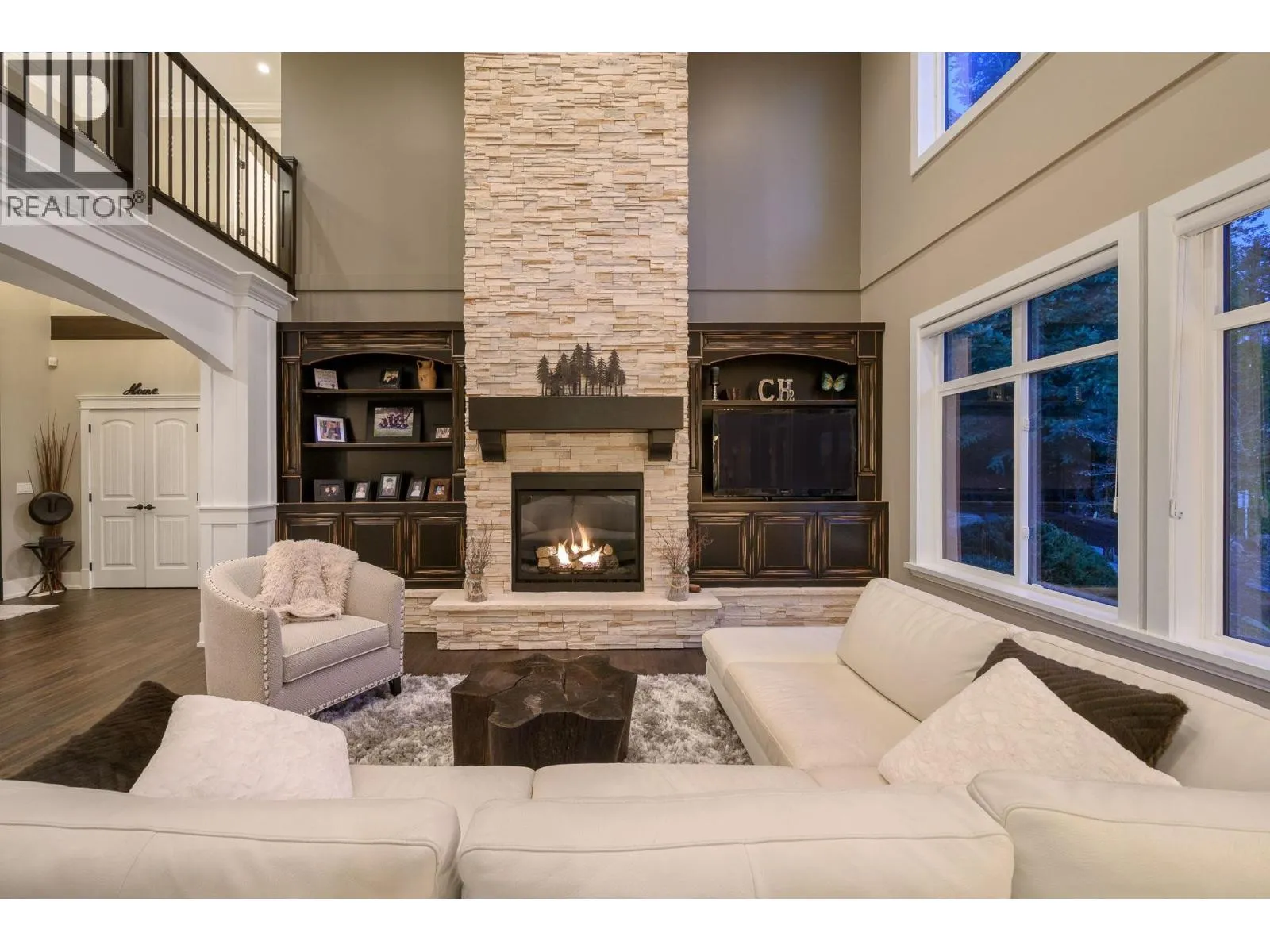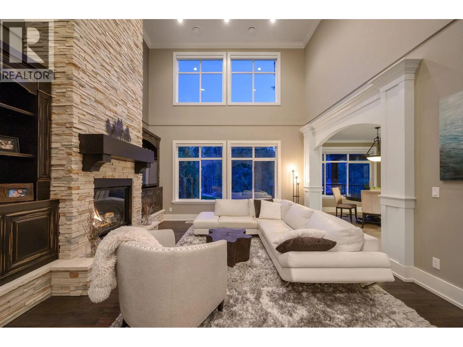 Experience refined executive living in this impeccably maintained three-level residence in one of Anmore's premiere neighbourhoods, offering exceptional privacy and timeless design. A long, level driveway and triple garage create a grand first impression, while mature landscaping surrounds the home in natural seclusion. Inside, elegant principal rooms, a soaring two-storey great room, and a private den set the tone for sophisticated living. The gleaming white, chef-inspired kitchen with premium Sub Zero/Miele appliances anchors the main floor, opening to a covered, stamped concrete deck with built-in fireplace. Upstairs offers 3 spacious bedrooms and a games room. The lower level is designed for upscale entertaining include a rec room with surround sound, oversized bar, gym, and a guest bedroom. Don't miss the hot tub and new paving stone patio with fire bowl! Magazine worthy garage with custom cabinets, 9ft garage doors and epoxy floor. Truly a 10 out of a 10! (id:27476)