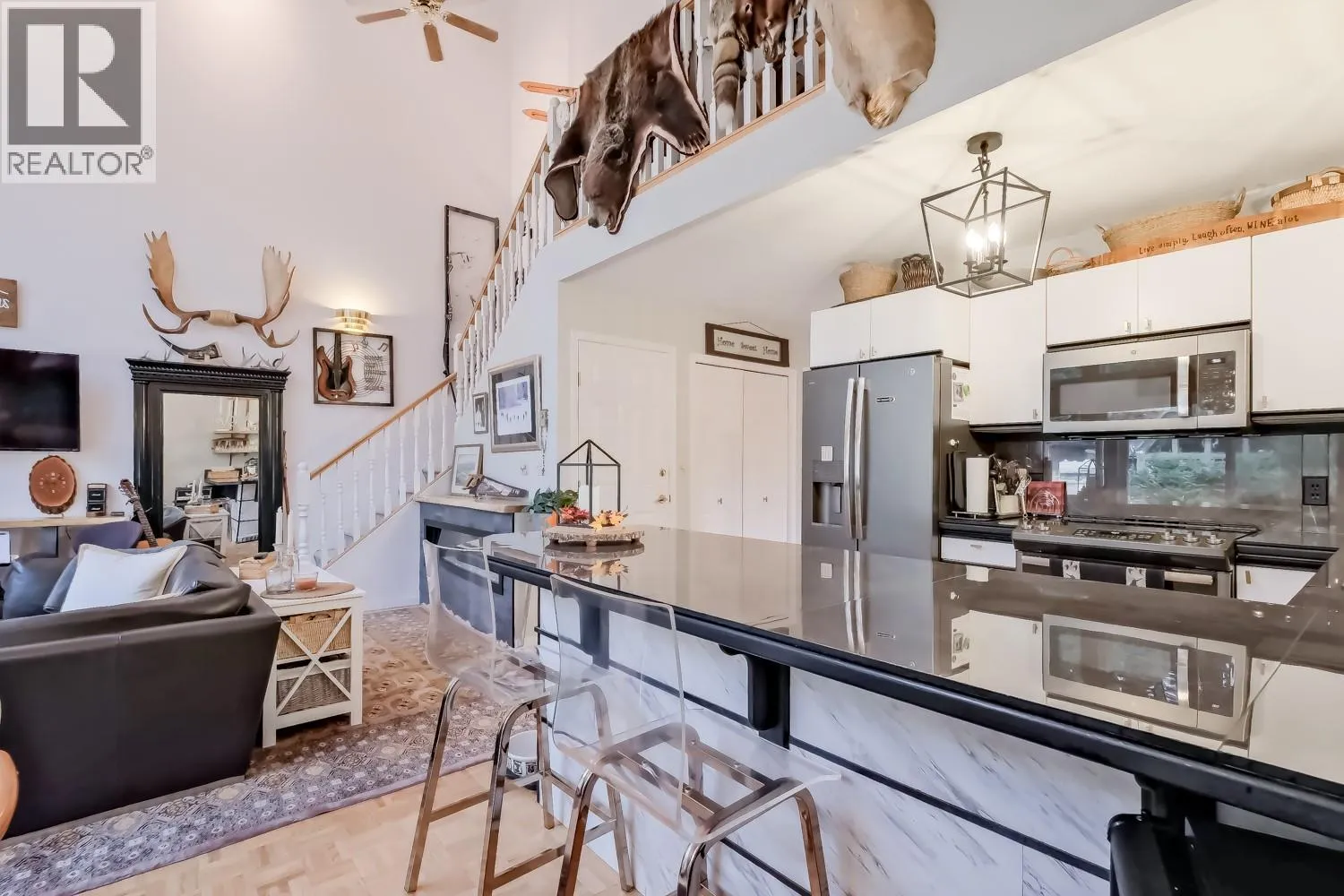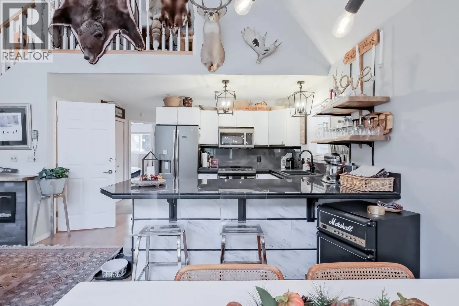 Welcome to Whitetail road at popular Apex Mountain Resort! This beautiful and spacious 3-bedroom plus den and loft, 3-bathroom half duplex at Apex Mountain offers luxurious living with quality updates throughout. Whether it's sleeping for 2 or up to 14 there is no shortage of room here. Have a seat in this great room featuring impressive 25-foot vaulted ceilings, a new high-efficiency wood stove, and a wall of windows that provide abundant natural light. The kitchen, appliances, and main home bathrooms have all been updated, including new lighting and fixtures for ease of nothing to replace. This valuable property also includes a self-contained, 1-bedroom walkout basement suite with a full bath, kitchen, separate entrance, and private patio, offering proven income potential in the previous years. Enjoy quiet mountain evenings from the private deck with a hot tub and relaxed sitting area. Downstairs offers a workshop and ski room to ensure your equipment is always in top condition. This home is designed for comfort, ease, and enjoyment, perfectly suited for an elevated ski mountain lifestyle. Practical features include a covered metal walkway to clear snow before entry and a high-pitched metal roof designed for efficient snow shedding. There is parking available for up to four vehicles, and it's just a short walk to the Apex Village and lifts! No Strata fees here! (id:27476)