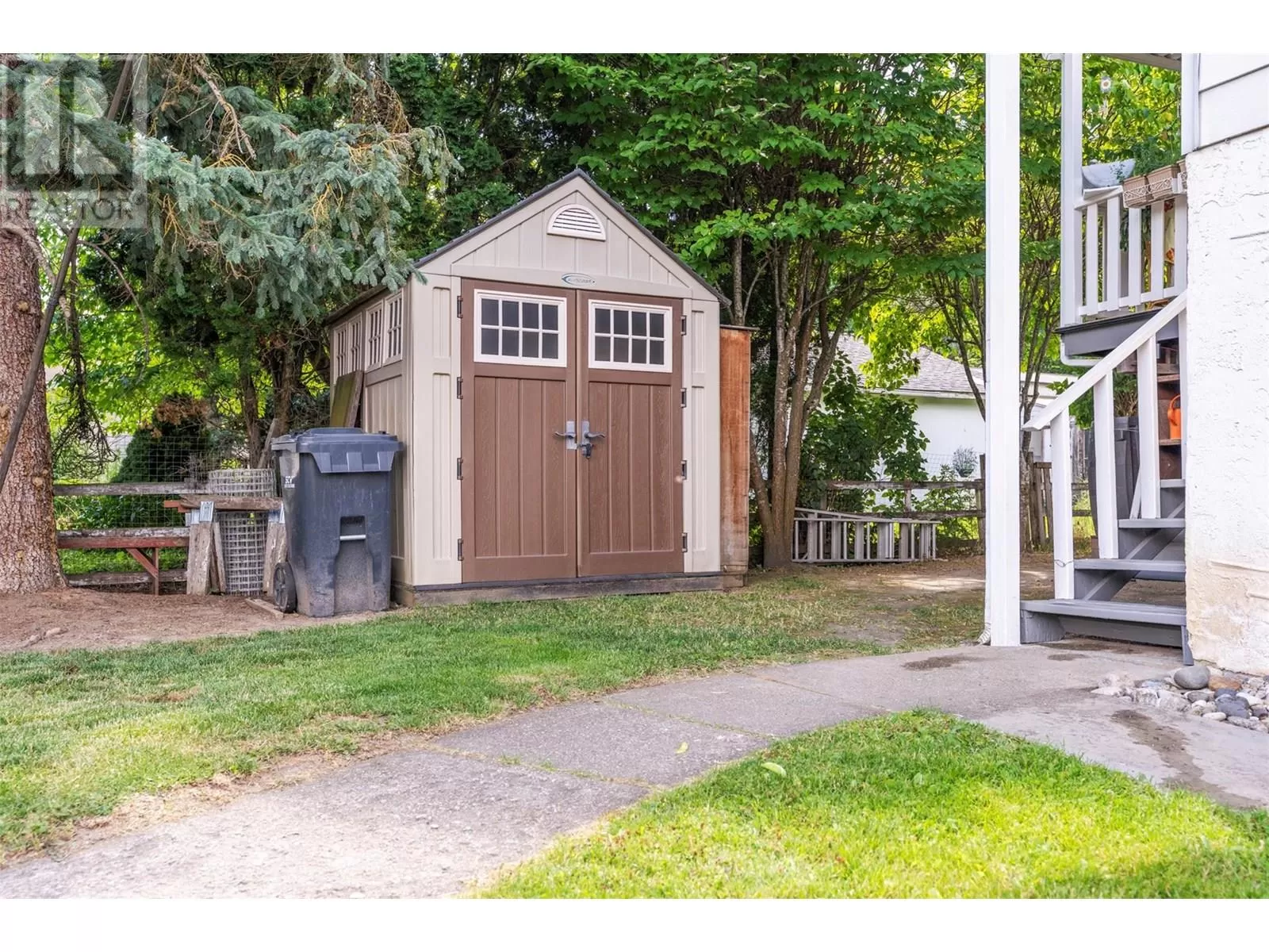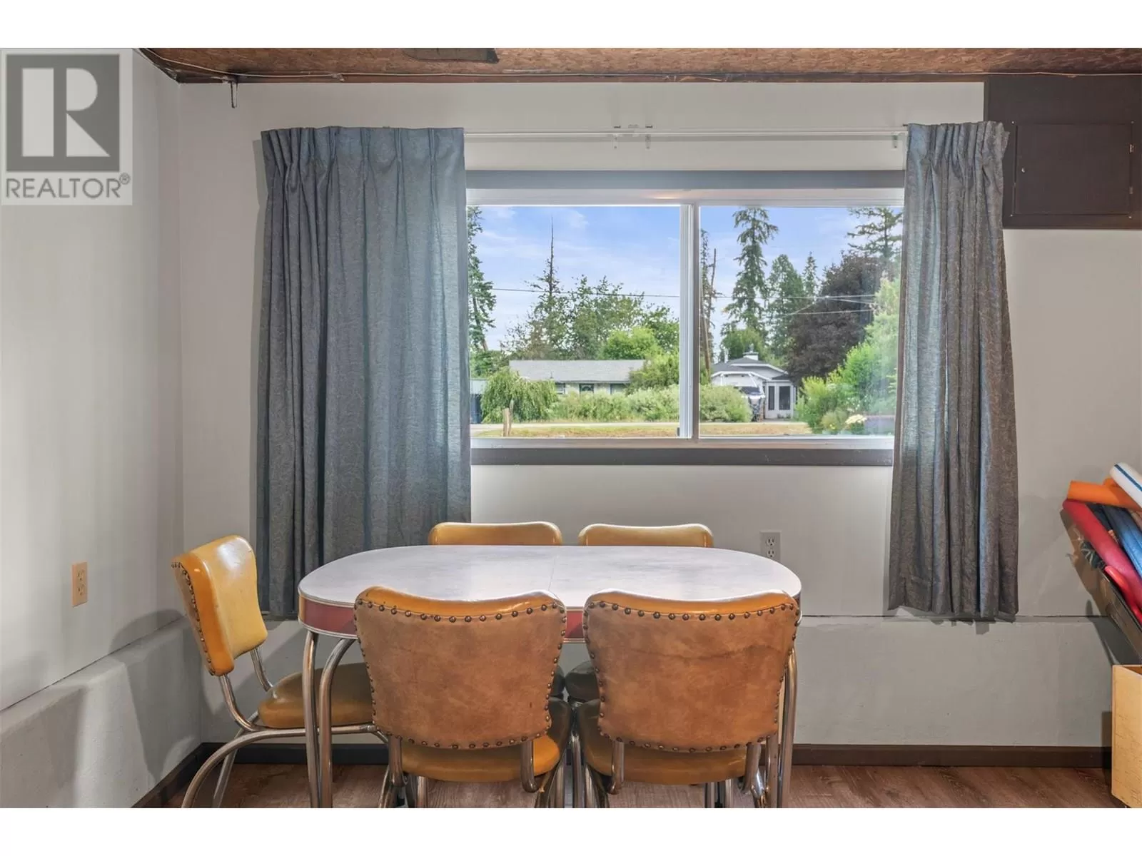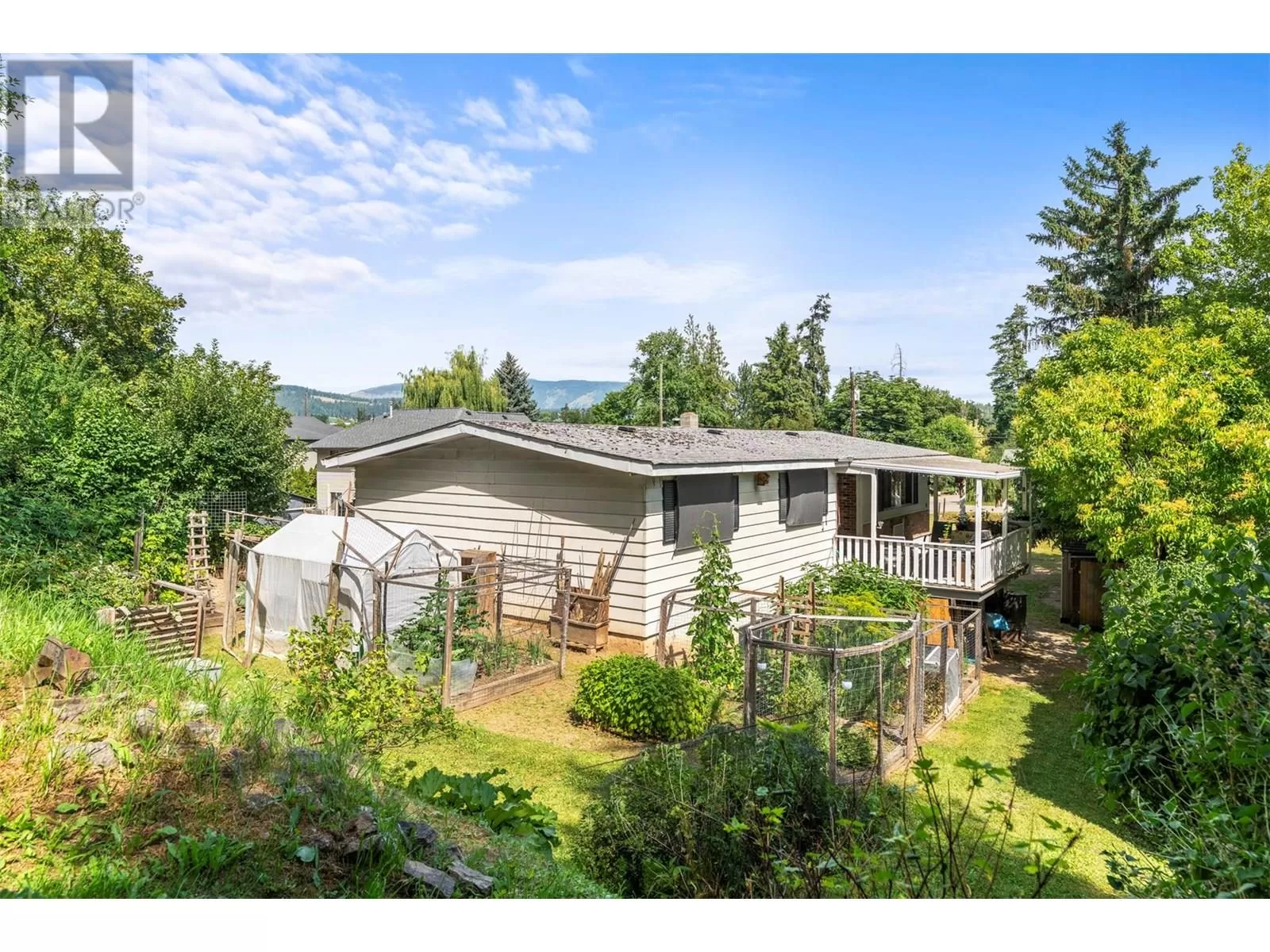 Spacious and centrally located, this well-loved family home offers a great opportunity for affordable home ownership and room to thrive. Set in the middle of a longer lot, the home faces a stretching yard and driveway with lots of room for activities and parking. Tucked in the back, is a peaceful growing space with raised garden beds and a variety of plants ready to fill the generous pantry. Upstairs features the main living areas, three bedrooms, and a covered deck with views of active bird houses. Downstairs, youâll find a fourth bedroom and a large rec room, ideal for hosting, creating a kid-friendly zone, setting up a hobby space or guest suite. Large front windows on both levels give the home loads of natural light - Looking to put your own design into action? This move-in ready home allows you to settle in comfortably while taking on projects over time; your very own workshop and ample storage is just steps away! - Walking distance to schools, parks, outdoor pool, arenas and fair grounds. Just 5min to HWY 97A but tucked in a charming small town. (House is currently being painted, new photos to come. Cabinets are now crisp white, dining room/kitchen/hall being painted in a softer white. Oil furnace being replaced with new electric one in the next few weeks.) (id:27476)