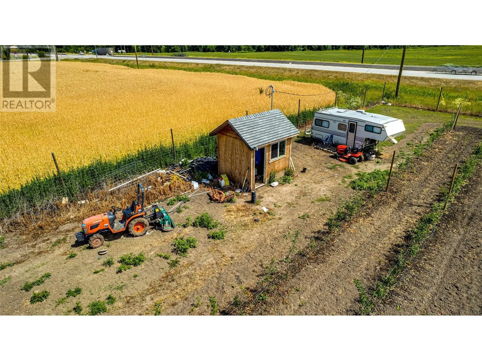 Looking to build your dream home and start a thriving farm? This stunning 8.66-acre ALR property in the heart of Armstrong offers the perfect blend of lifestyle and investment. Fully fenced and mostly irrigated with a drip system and automatic sensors, the land features 6 acres of Gala apples, pumpkins, and strawberries, all ready for harvest. With direct highway access, a septic license, highway permits, and a high-capacity well powered by BC Hydro already in place, this property is turn-key and ready for you. A cleared approximately 2-acre site is ideal for building, plus a fruit stand is coming soon to enhance income potential. Valuable farm assets, including a new tractor, an automatic lawn mower, tools, and rootstock, as well as a mobile home/RV, are included. Surrounded by sweeping valley and mountain views in a welcoming, family-friendly farming community with excellent schools, this rare opportunity offers a peaceful, enriched lifestyle just waiting to be lived. (id:27476)