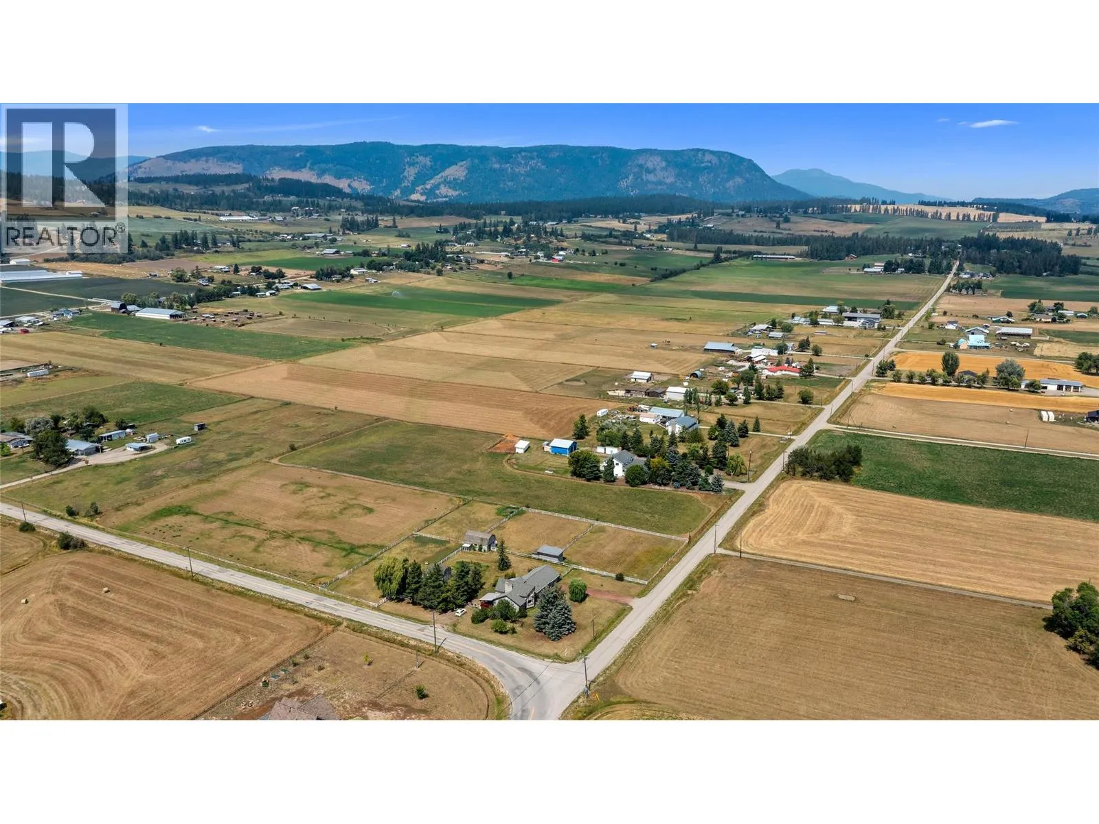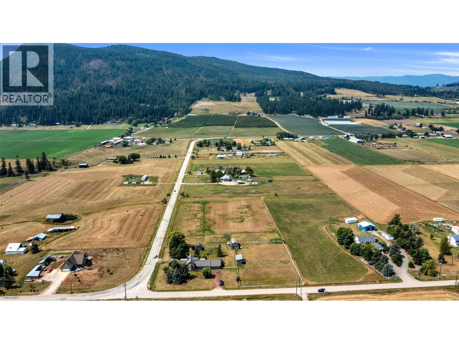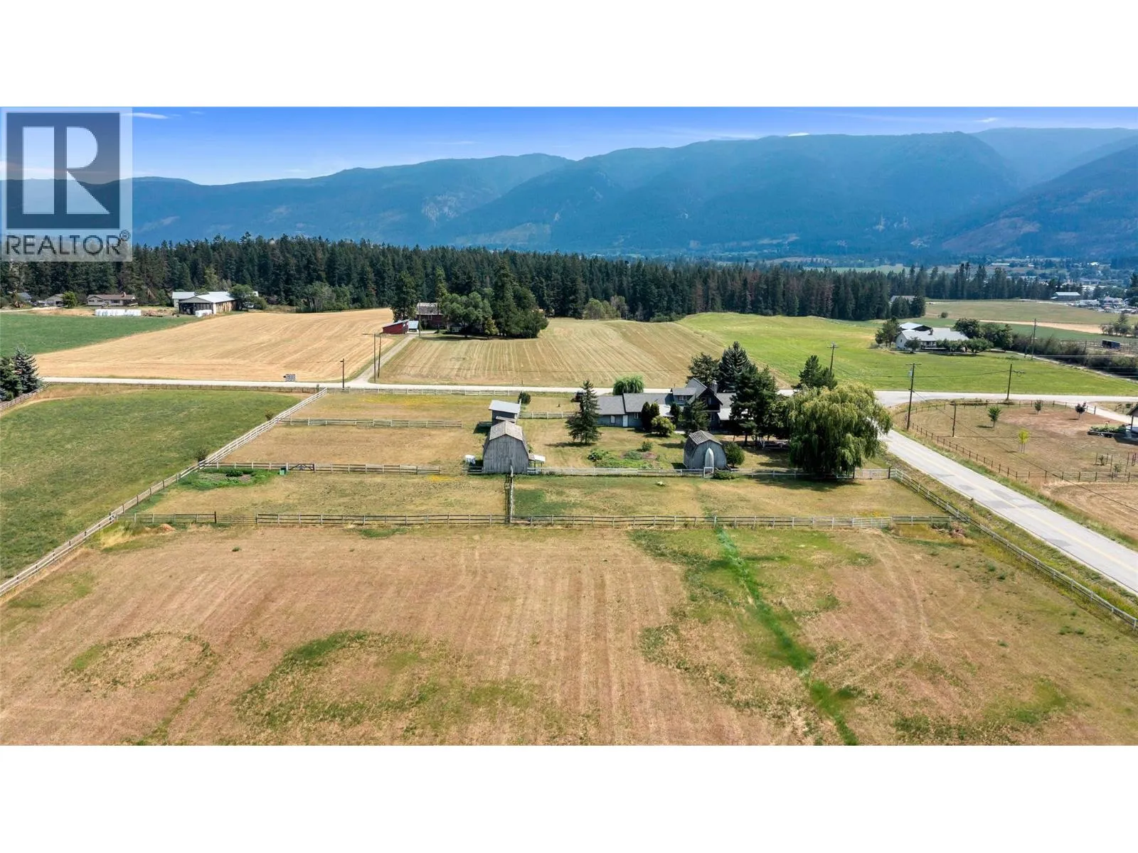 Prime Acreage Minutes from Armstrong Town Center â Ideal for Farming or Multi-Generational Living. Rare opportunity to own highly desirable, fully usable farmland just 5 minutes from the heart of Armstrong. This corner lot offers excellent exposure and flat, fertile landâperfect for a wide range of agricultural ventures or animal business. The well-maintained family home spans nearly 4,000 sq.ft and features a thoughtful, functional layout. The main floor includes a spacious primary suite, while additional bedrooms provide ample room for extended family or guests. A unique loft area upstairs offers a private deckâideal for enjoying serene country views. The large basement includes a huge rec room and an extra kitchen, offering excellent potential for an in-law suite or guest accommodations. The property also boasts fruit trees, home gardens, and a hay-producing field. Outbuildings include a 28' x 30' barn, a 14' x 16' workshop, and a 16' x 10' storage shedâeverything you need to support a productive rural lifestyle. Whether you're looking to establish a farming business, enjoy country living, or invest in a multi-generational home, this property delivers space, flexibility, and exceptional value. (id:27476)