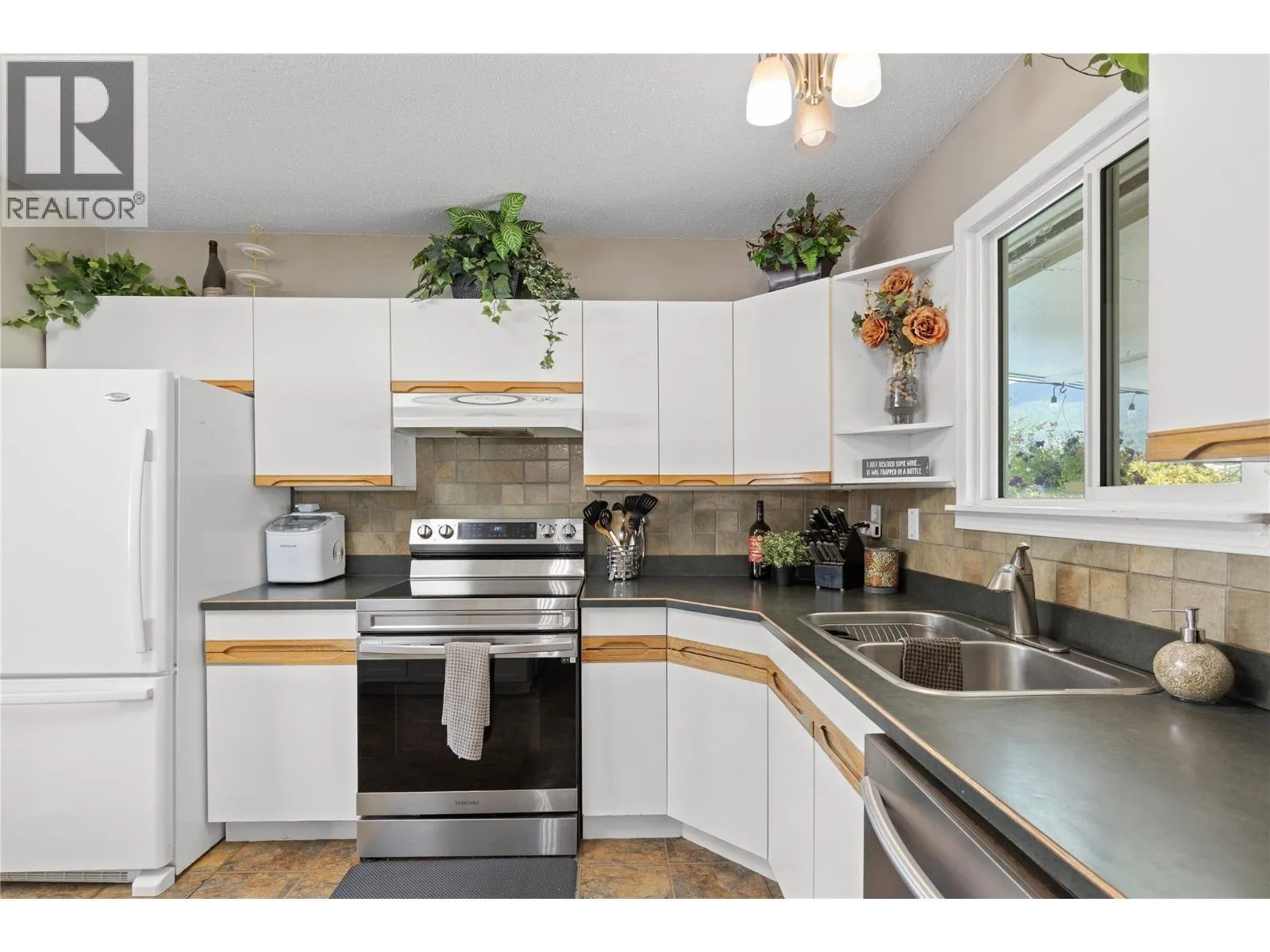 Welcome to this charming 4 bedroom, 3 full bathroom family home on a generous .22 acre lot in the heart of Armstrong. A perfect blend of comfort, space, and convenience. The home offers and cozy but generously sized living room with a gas fireplace and loads of natural light. Enjoy your morning coffee on the spacious 23x12 covered deck while overlooking a beautifully landscaped, south-facing backyard with garden, two garden sheds (one with power), an above-ground pool and sand box for the kiddos and plenty of more room for other outdoor activities. Two of the bathrooms have new shower stalls and main bath has new tub and surround. Located in a peaceful, family-friendly neighborhood, this home is just a short walk to schools, parks, and downtown Armstrong. The quiet setting ensures a serene environment while still being close to grocery stores, restaurants, coffee shops, and more. The roof was updated in 2014, new hot water tank installed September 2025 for added peace of mind. You will also appreciate the ample parking, including room for at least two RV's, as well as an enclosed workshop/storage area for all your DIY projects. Easy access to the highway, making Vernon just a quick 15-minute drive away. This home perfect for first time home owners or growing families. Come see it today and make this lovely house your home! (id:27476)