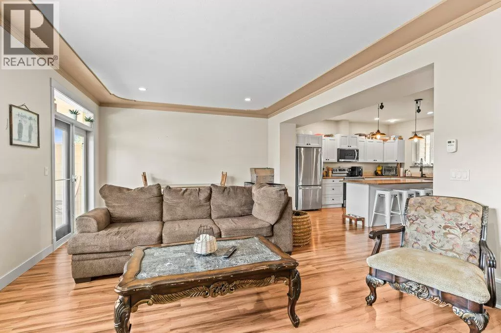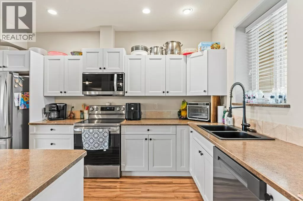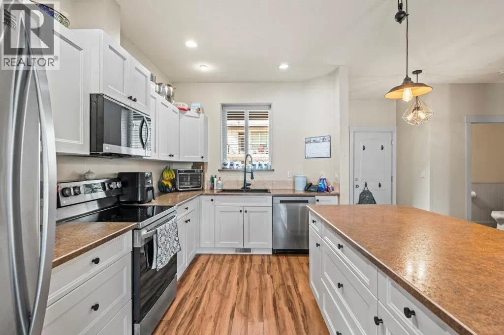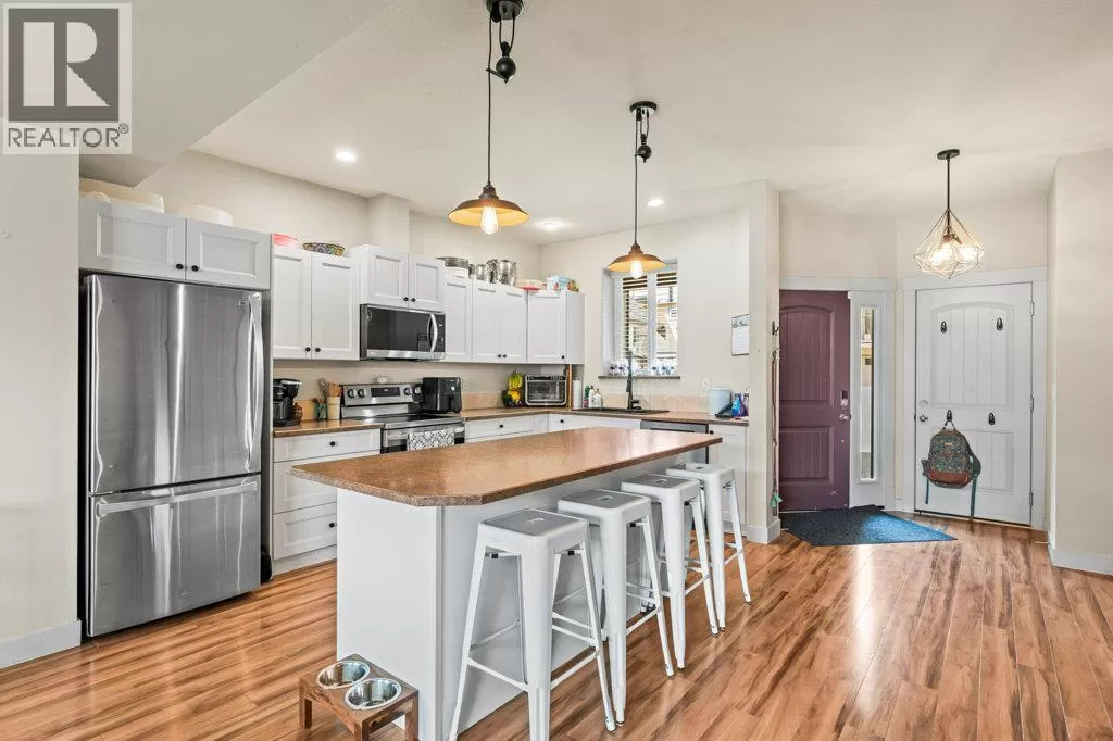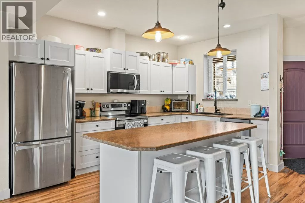 Townhome Living in the Heart of Armstrong. Discover all Armstrong has to offer at Willowbrook Terrace. This spacious 4-bedroom, 3.5-bathroom townhome delivers the comfort and function of a single-family homeâwithout the upkeep. With three finished levels and a smart, low-maintenance yard, you can enjoy more time for family, travel, or exploring the vibrant Armstrong community. The main floor sets the stage for easy living and entertaining. An open-concept layout connects the living, dining, and kitchen areas, anchored by a large island thatâs perfect for gathering or prepping dinner. A handy powder room on this level makes hosting a breeze, while sliding doors open to your covered deck and fenced backyard with direct street access. Upstairs, three bedrooms keep the family close. The primary suite features a walk-in closet and private ensuite, while the laundry roomâconveniently on this levelâmakes busy days simpler. The fully finished lower level expands your options with a spacious family room, a fourth bedroom, a full bathroom, and bonus storage. With two parking spaces, including a single garage, youâll have room for everything. The location seals the dealâyouâre across the street from Highland Park Elementary, and just a short walk to the IPE grounds, Memorial Park, and Armstrongâs charming downtown. Whether youâre upsizing for family, or simply craving a more convenient lifestyle, Willowbrook Terrace is the perfect fit. (id:27476)