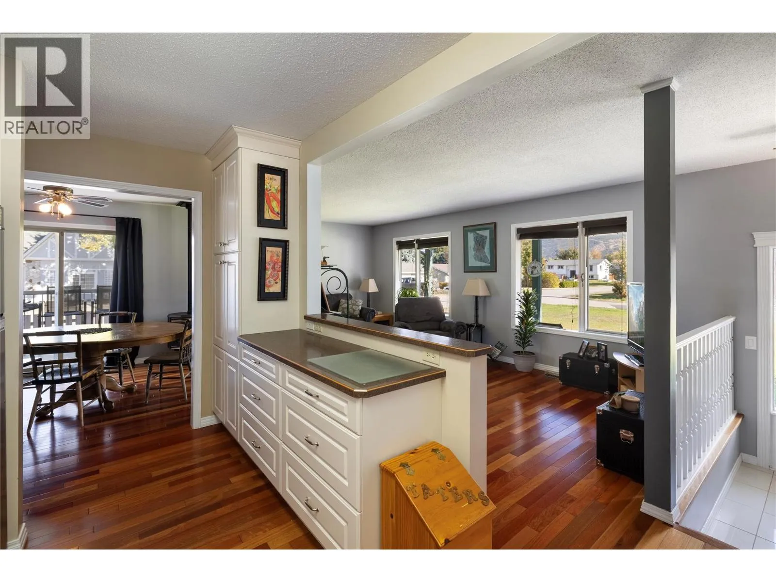 Welcome to Family Friendly neighbourhood in the heart of Armstrong BC with easy walk to grocery store, gas station and other amenities that Armstrong has to offer. House offers beautiful hardwood flooring, heated bathroom and laundry room floors. Natural light fills the living room space and natural gas fireplace here keeps you cozy during winter days. This 3 Bedroom and 1.5 Bathroom house is a great family house with a large crawl space to accommodate all your belongings. The property is also equipped with 30AMP RV hook up and large fenced in backyard is great for kids and fur babies. House has a large Rec. room, that can be used for gym, yoga room or a potential 4th bedroom and bathroom. The property has a lot of potential further expansion. Recent upgrades are A/C, Gutters, Sidings, HWT. Nice flat lot just under a quarter of an acre with Front porch and patio space completes this lovely property. Book your private showing soon. (id:27476)