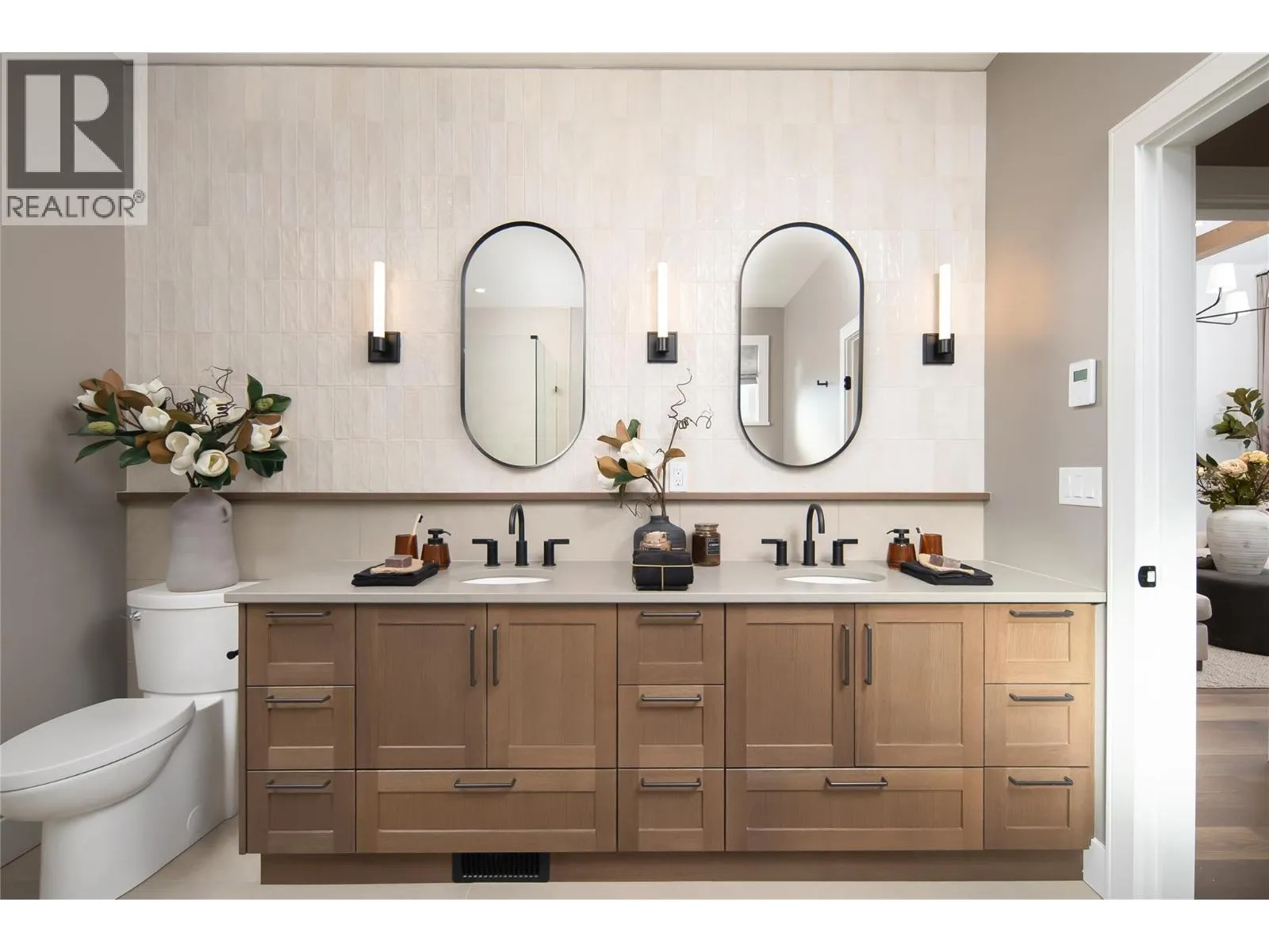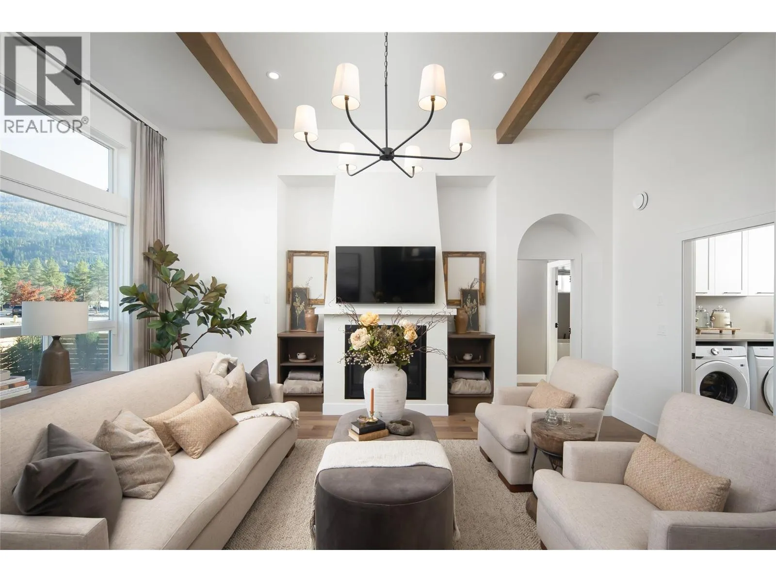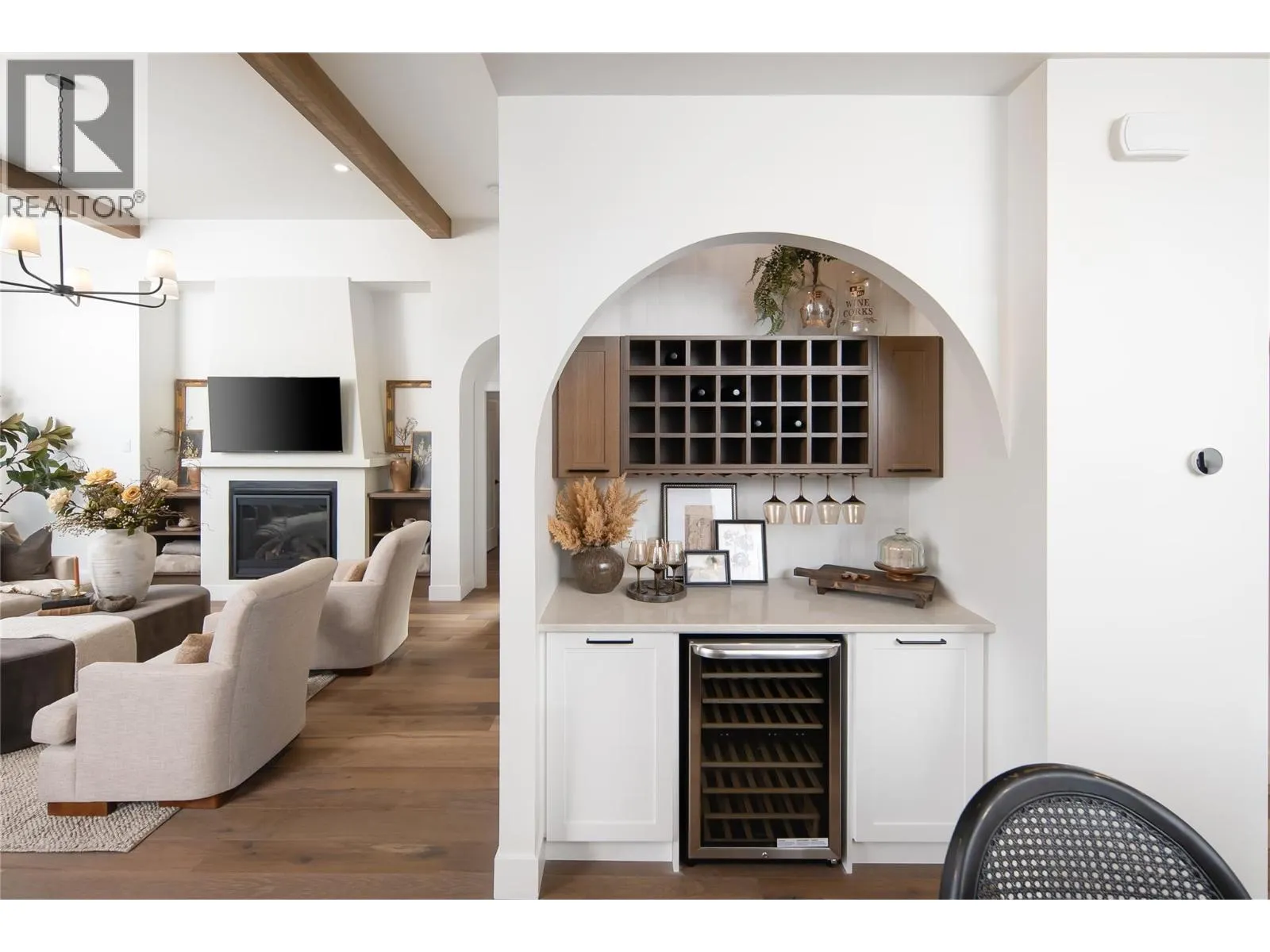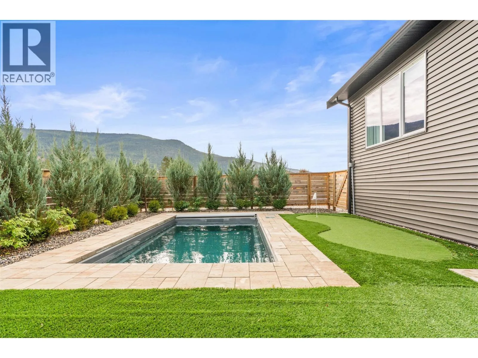 Former SHOWHOME with over $400,000 in upgrades, this Wesmont Homes masterpiece in Armstrongâs growing Rosemont subdivision embodies moody luxury and bold design with soaring ceilings, a striking front office with dark, dramatic walls, and a great room accented by elegant wood beams. The entertainerâs kitchen is both stunning and functional, showcasing custom built-ins, a wine fridge, cabinetry in the nook area, a coffee and wine bar, Fisher & Paykel fridge, and 36â gas range with pot fillerâperfect for hosting or everyday living. The primary suite offers a serene retreat with a custom headboard wall, heated tile flooring in the ensuite, and upgraded shelving in the walk-in closet. The finished basement continues the upscale design, with a spacious entertainment area anchored by a bar with tile flooring, bar fridge, and sink, plus two additional bedrooms and a full bath with heated tileâideal for family, guests, or weekend gatherings. Step outside to your backyard oasis featuring an in-ground 10x16â pool, roughed-in space for a future hot tub, built-in fire pit, patio, artificial turf, and putting greenâcompletely maintenance-free. Additional highlights include a custom laundry/mud room with cabinetry, solar panels (2.04kW, 6-panel system), and thoughtfully designed spaces that blend texture, contrast, and timeless sophistication. This is modern luxury at its finestâclaim your place among Armstrongâs most coveted homes and make this statement property your own. (id:27476)