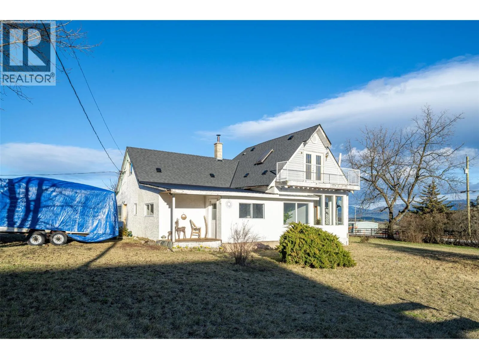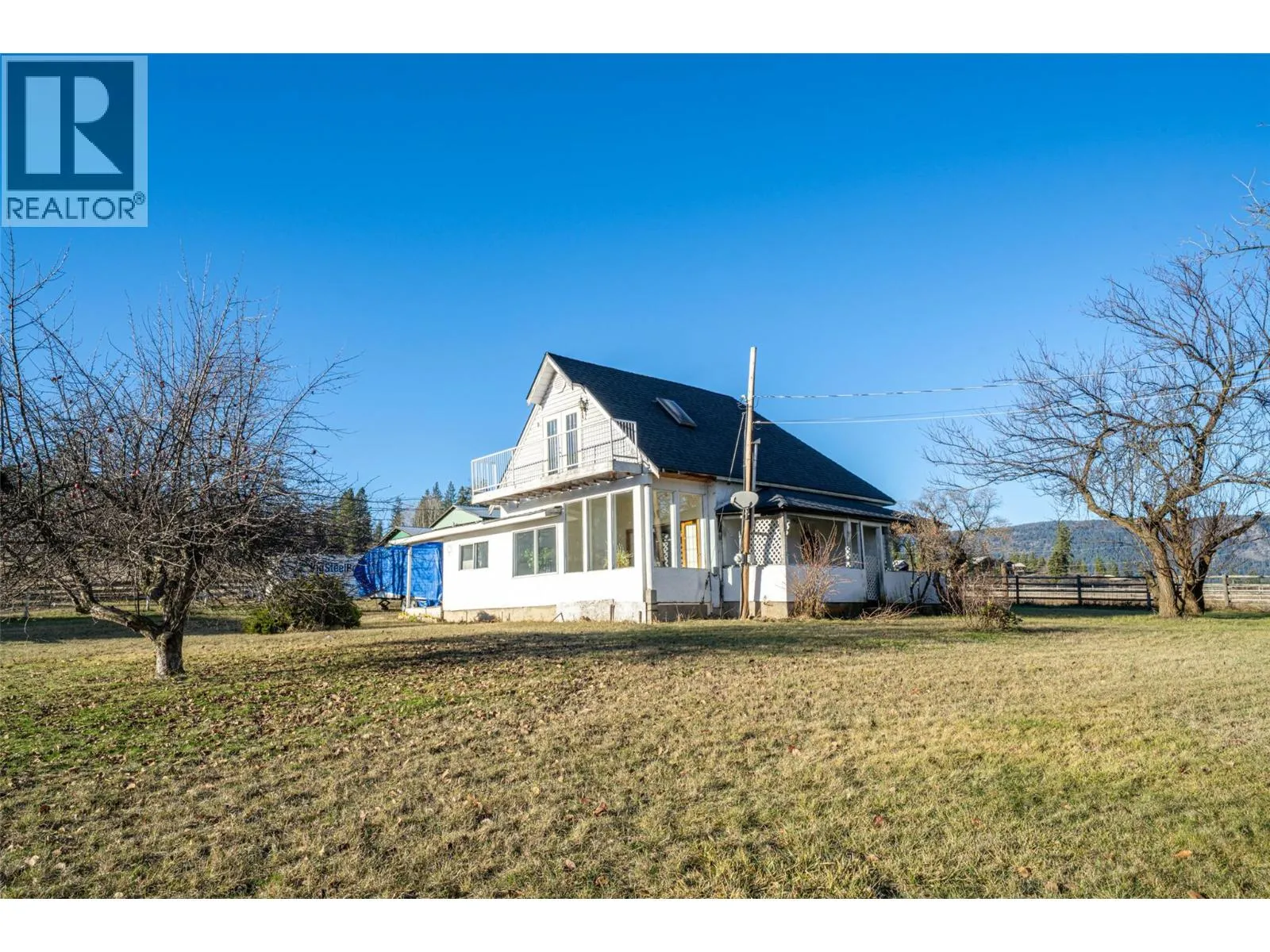 Picturesque 13.25-acre hobby farm just minutes from Armstrong! This fertile, fully perimeter-fenced property features an older 4-bedroom, 2-bathroom home with a level-entry main floor offering an open kitchen and dining area, spacious living room, and an inviting sunroom. Two bedrooms and a full bath with soaker tub complete the main level. Upstairs youâll find the primary bedroom with 3-piece ensuite, plus a fourth bedroom. Recent updates include a new asphalt roof in 2021. The land is well-suited for agriculture and livestock, with multiple hay and horse paddocks and your own boutique vineyard planted to Foch wine grapes. Excellent infrastructure includes a 35' x 50' shop with two 12' roll-up doors, a 19' x 48' stable with four box stalls and tack room, a 24' x 48' hay cover with 14' x 48' lean-to, and the original 40' x 48' dairy barn ideal for additional storage. Domestic water is supplied by a community system, with supplemental supply via Lampert Spring water license. A fantastic rural opportunity in a prime location, close to all Armstrong and Spallumcheen amenities. (id:27476)