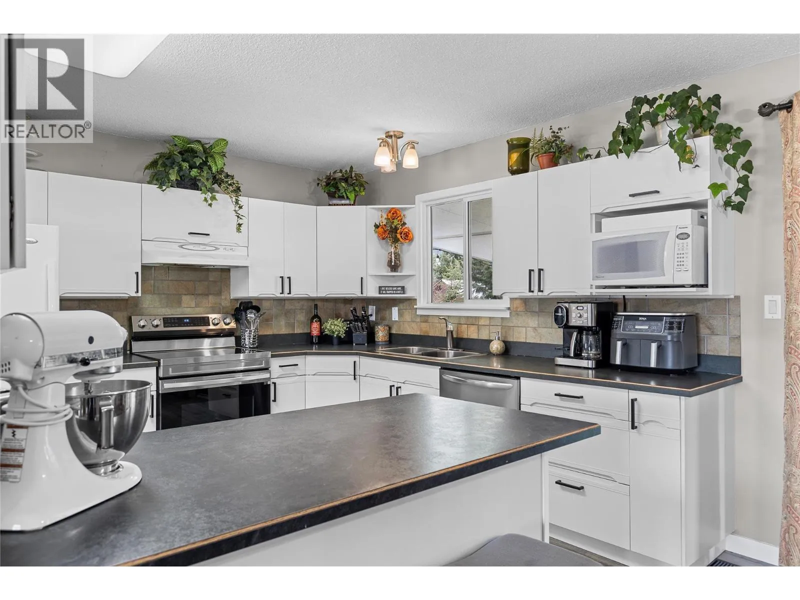 Welcome to a home where comfort, space, and small town charm come together beautifully. Situated on a generous 0.22 acre lot in the heart of Armstrong, this inviting 4 bedroom, 3 full bathroom family home offers the perfect place to settle in, grow, and make lasting memories. The living room is warm, welcoming and filled with natural light and centered around a cozy gas fireplace. New vinyl plank flooring flows through the living room, dining area, kitchen, and hallway, creating a fresh, updated feel. The kitchen has been refreshed, and the bathrooms have been updated with new shower stalls and a new tub and surround in the main bath. The backyard is where this home truly shines. Enjoy quiet mornings or summer evenings on the spacious 23' x 12' covered deck overlooking the south-facing yard. Thereâs plenty of room for gardening, relaxing by the above-ground pool, or watching the kids play in the sandbox. Two garden sheds, one with power offer extra space for storage, hobbies, or projects. Located in a peaceful, family friendly neighborhood, youâre just a short walk to schools, parks, and downtown Armstrong, with amenities nearby. Additional features include ample parking with room for RVs and an enclosed workshop/storage area. The roof was updated in 2014, and a new hot water tank was installed in September 2025 for added peace of mind. With easy highway access, Vernon is only a 15-minute drive away, making commuting simple while enjoying the relaxed pace of Armstrong living. (id:27476)