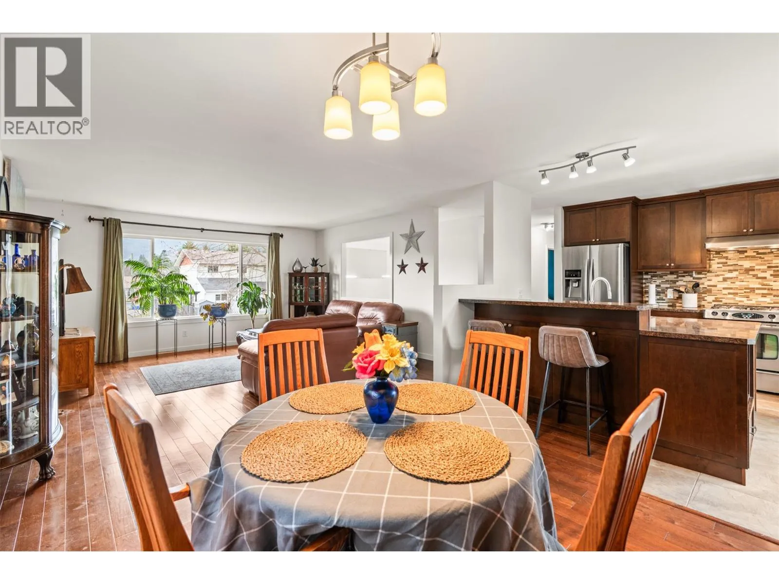 Where community still matters and neighbours know each other, this four-bedroom, two-bathroom home offers a thoughtful balance of space and function. The main floor is open and welcoming, centred around a kitchen with stainless steel appliances, a gas stove, and built-in dining cabinetry, designed for both everyday living and gathering. Upstairs features two comfortable bedrooms and a full bathroom. Downstairs adds flexibility with two additional bedrooms, an updated bathroom, and both a family room and rec space, ideal for kids, guests, or a home office. The backyard is private, secure, and easy to enjoy. Fully fenced storage shed, space for gardening or entertaining. A covered carport with workshop access adds everyday practicality. Armstrong offers a lifestyle thatâs hard to replicate, with local markets, small shops, and events like the IPE bringing the community together. Simple, functional, and set in a place people genuinely love to live. New Roof 2025, New HWT 2025 (id:27476)