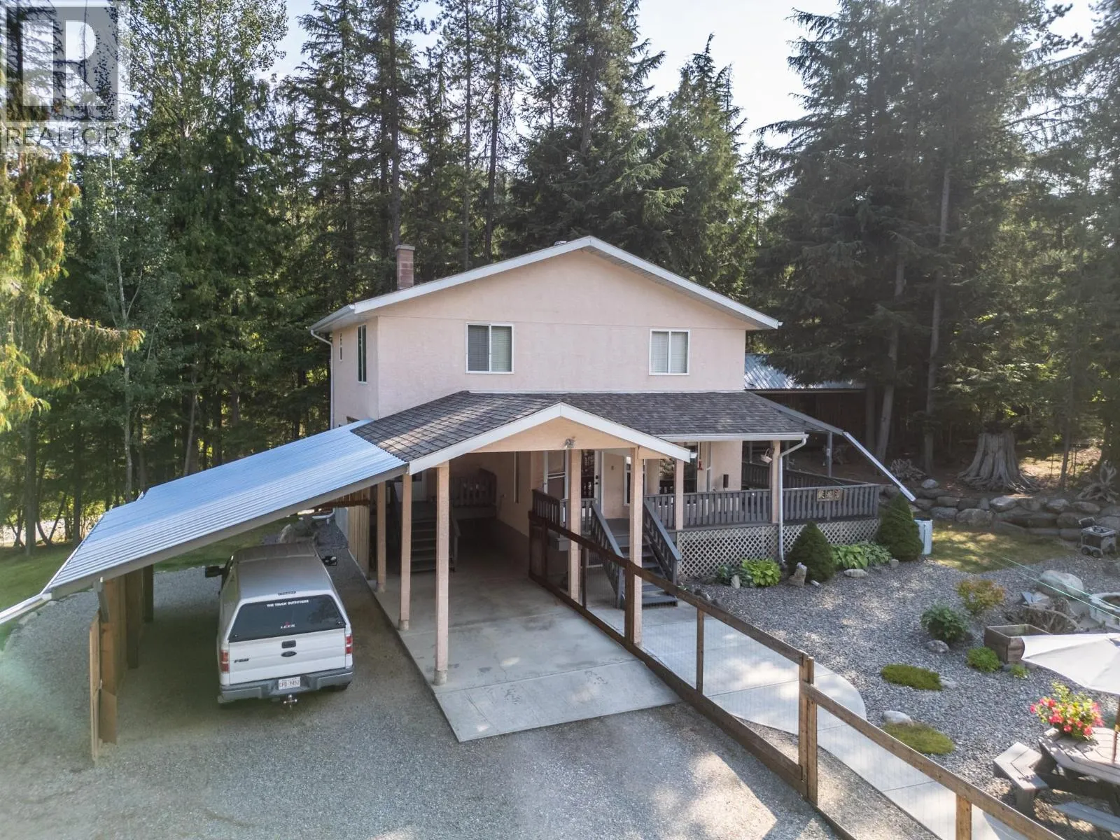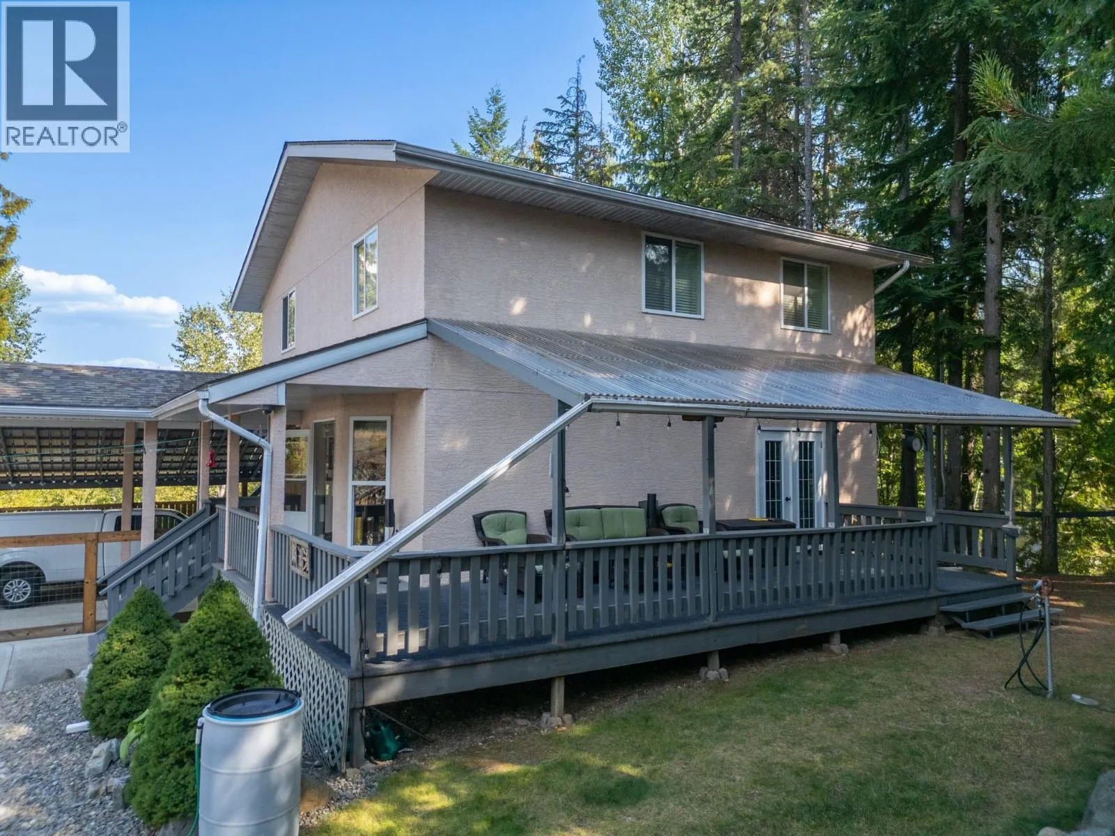At a great price with so much to offer, this four-bedroom home sits on 4.8 acres bordering crown land and just ten minutes from Creston. The main floor includes a bright living room, dining area, kitchen, pantry, bathroom, and laundry, while upstairs youâll find four bedrooms and two full baths offering plenty of room for family or guests. The basement provides extra storage with the potential to develop further. The property is a real highlight for outdoor enthusiasts. Trails wind through the wooded areas, and thereâs also a clearing with a firepit where you can take in the mountain views, while neighbouring crown land adds even more to explore. The fully fenced backyard is perfect for kids or your furry friends, and the acreage also features a pond, exposed rock formations, lawns, and a charming little guest cabin tucked out back. A double detached garage (24' x 28') provides workshop space, while the attached double carport and 20â shipping container add secure parking and storage options. With privacy, outdoor adventure, and comfortable living all in one, this acreage is ready to welcome its next owners. (id:27476)