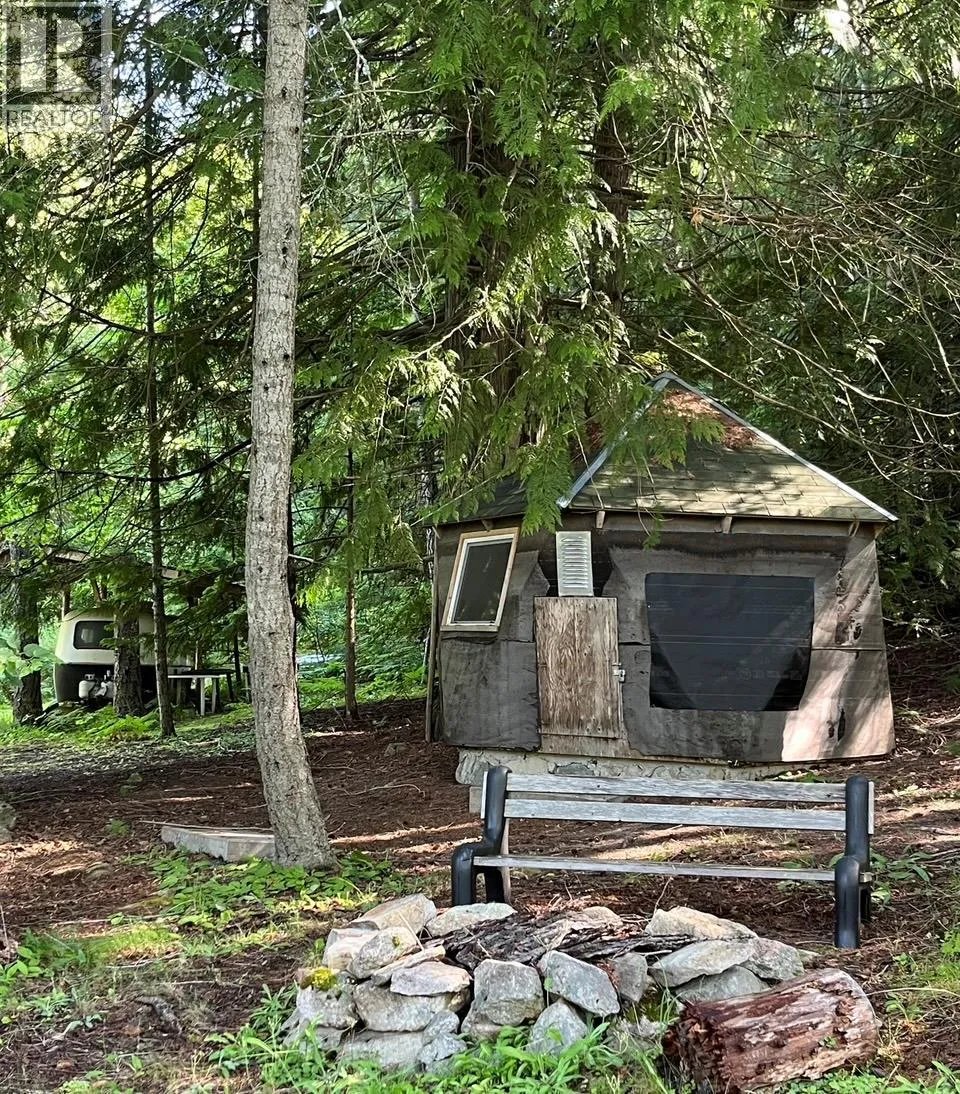 What a truly beautiful setting! This 5.3 acre property has been enjoyed for many years as a family vacation spot - it may be perfect for your family fun spot as well! 'Off-grid' 5.32 acres, perfect set up the way it is, or bring in the power, and other services and build your 'forever' home! The main cabin is 24' x 26' and has 2 decks plus there's a closed in sun porch with plenty of windows. The stove and fridge are propane, there's a TV, VCR, and air conditioner - use the generator to power up what you need! 2 small yurts in their own private 'camp spots' with firepits, and also a covered place for a small travel trailer as well. Check out the cool tree fort, horeshoe pit, and the neat/clean double seated outhouse. The property is treed to the highway, and only partially cleared at the bottom, with trails to the camping spots, and other areas on the property. Nice building site on the upper portion as well. Approximately 500' of waterfront on the Arrow Lake. Easy access to the lake - the awesome dock has deck areas and stairs which gives you access to the lake at various water levels - a great place to sit and take in the sunshine, the views, and enjoy the peacefulness that makes this property so special. You really need to see this place in person to appreciate everything it has to offer! Call today and make an appointment to view! (id:27476)