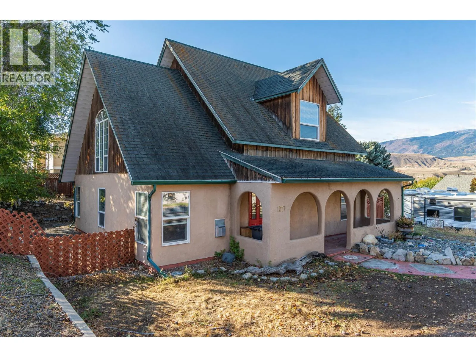 Distinctive straw-bale home in Ashcroftâs Mesa Vistaâwarm, quiet and energy-smart by design. Built in 1996, this approx. 1,750 sq.ft. 3-bed/2-bath offers soaring post-and-beam ceilings, hand-troweled plaster walls, an airy loft, and an open main floor with dining nook. Updated in 2021 with new kitchen cabinetry, counters and flooring. Cozy gas fireplace is the primary heat source; the thick straw-bale envelope helps keep utilities low. Main-floor bedroom plus two bedrooms up. Sunny yard with raised garden beds and a handy shed; gravel driveway for easy parking. Priced accordingly and ideal for buyers seeking character and potential. Reach out to the listing agent to book a showing! (id:27476)