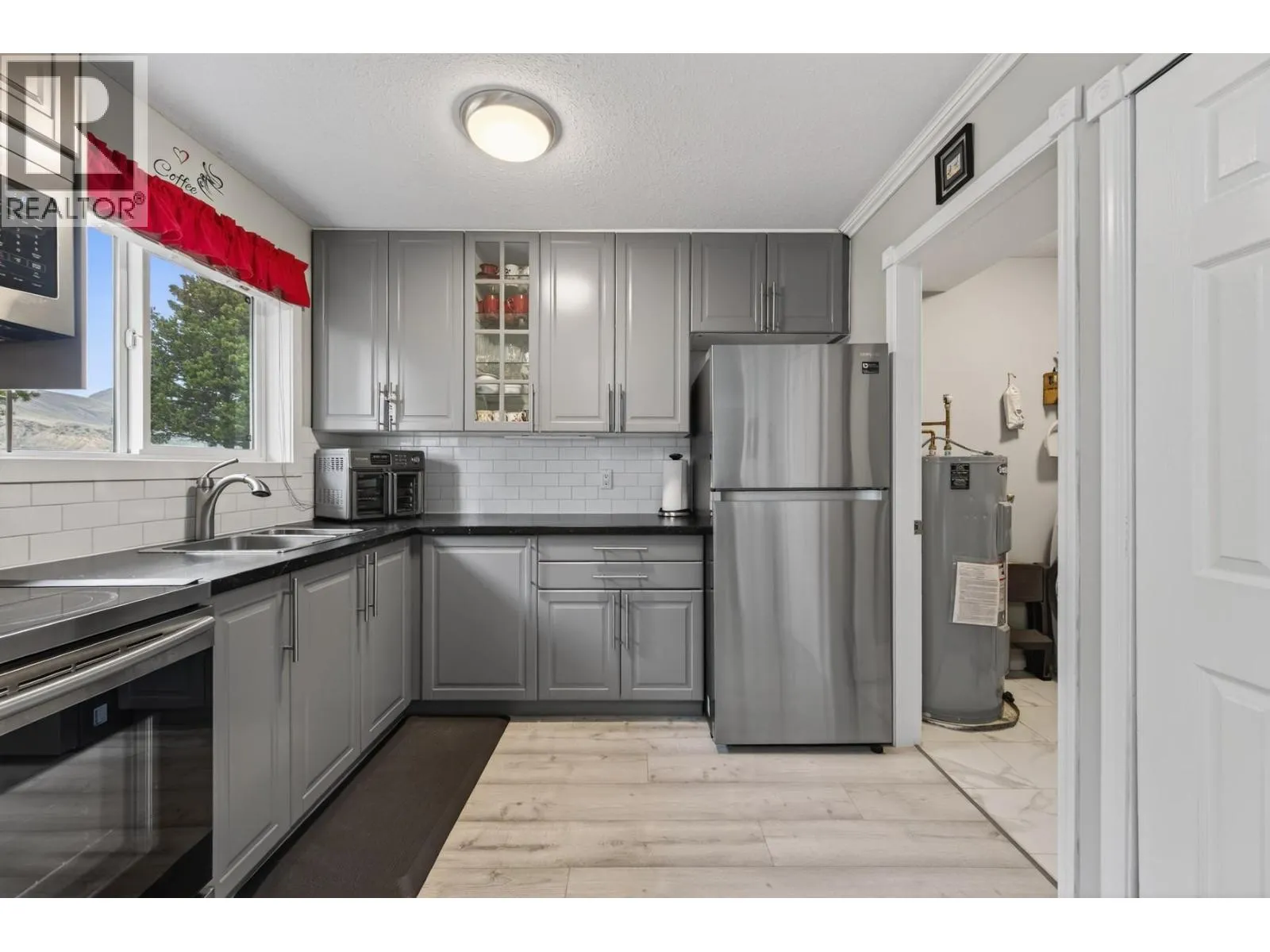 Welcome to easy, level living in this updated 2-bedroom, 1-bathroom ground-level apartment in the quiet Mesa Vista community of Ashcroft. With stunning mountain views and a peaceful setting, this move-in-ready home is ideal for downsizing or a first-time purchase. A large entryway with coat closet welcomes you, just a short walk from the assigned parking. The cozy living room features a sliding glass door that frames the mountain scenery and provides access to the backyardâperfect for enjoying fresh air and quiet mornings. Thoughtful updates include new flooring, light fixtures, baseboard heaters, kitchen cabinets, and an updated bathroom. The bedrooms feature immaculate carpet, offering warmth and comfort on cooler mornings. The kitchen is equipped with stainless steel appliances, including a fridge, stove, and built-in microwave. Windows were replaced in 2019 for improved efficiency. New Washer and Dryer, Updated Hot Water Tank. New Laminate Floors. Set in a well-maintained, quiet community, this level-entry home offers comfort, simplicity, and views to admire. Pets allowed with restrictions. Long Term Rentals Allowed. No Age Restrictions. Strata Fee is $337.27 pm (id:27476)