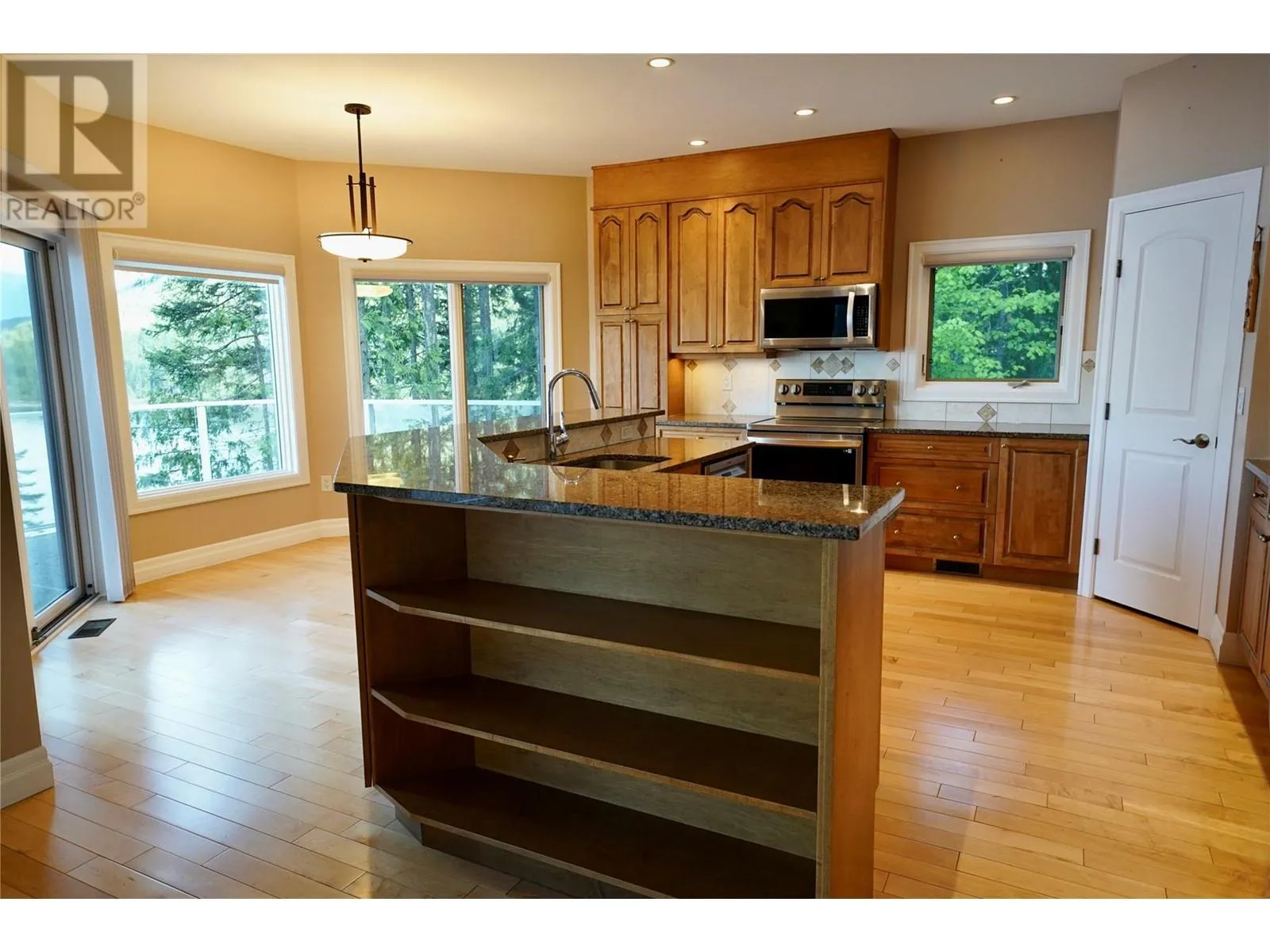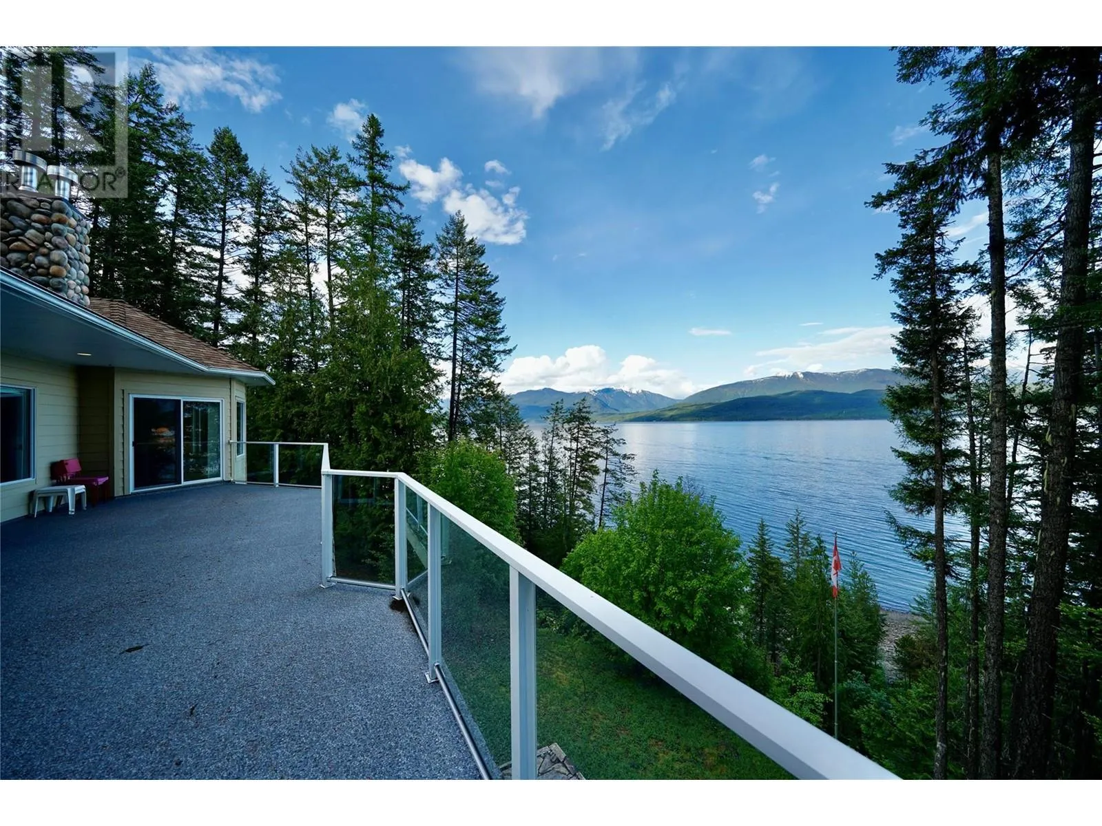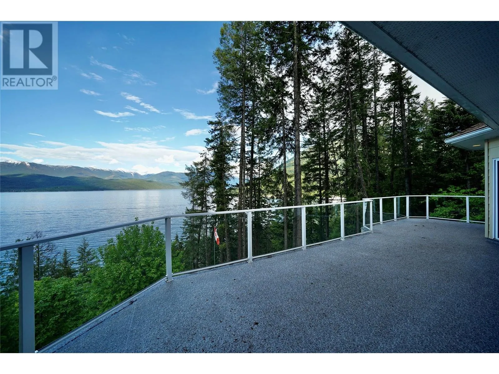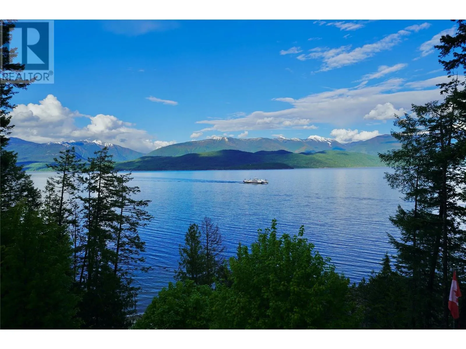 Welcome to one of Balfourâs most breathtaking water view homesâwhere every day begins with panoramic views of the lake, passing B.C. Ferries, soaring eagles, elegant blue herons, and a host of natureâs finest performances, all from the comfort of your private deck. Step inside this custom-built, fully air-conditioned 5-bedroom, 3-bathroom home, and youâll be instantly captivated by the sweeping water views that greet you. Designed with sophistication and comfort in mind, this open-concept home features a calming palette, 10-foot ceilings, and high-end finishes throughout. The chef-inspired kitchen is equipped with four brand-new stainless steel appliances, gleaming granite countertops, and custom maple cabinetry. The spacious living area is anchored by a striking floor-to-ceiling rock gas fireplace, rich hardwood flooring, and large windows that flood the space with natural light and spectacular views. Seamless indoor-outdoor living is yours with a massive 50-foot deck accessible from the living room, kitchen, and luxurious primary suite. The primary bedroom features lake views, a large walk-in closet, and an elegant ensuite with a jacuzzi tub for ultimate relaxation. Located on a quiet, no-through road, just minutes from Balfour Golf Course, Ainsworth Hot Springs and local dining. Move in ready! (id:27476)