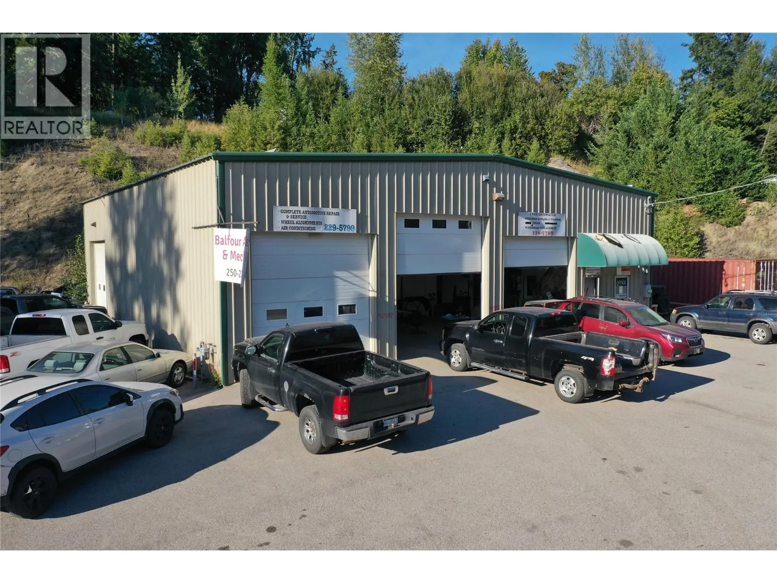 7699 Highway 3A is located in Balfour, BC â just ~20 minutes from Nelson, BC and featuring +250 feet of direct frontage along Highway 3A. Featuring a ~3,950 SF steel frame industrial building built in 2002, and complemented by a ~2,800 SF secondary commercial building with an existing short-term tenant in place, and a +0.5-acre development lot with lake views, the property offers business owners and investors broad flexibility for a wide range of potential uses. Representing one of the Kootenaysâ newest industrial buildings, the primary industrial buildingâs highly functional specifications with modern standards include open-concept warehouse area with no interior columns, clear heights up to ~18 feet, 400 amp three phase power, four grade-level doors (two 14 ft. x 12 ft. and two 12 ft. x 12 ft.), a 5-inch concrete floor, and +500 SF of mezzanine storage. With ~1.55 acres of total land area, including the development lot with lake views and separate access, the property further offers substantial available land for outside storage or development of a residence or additional commercial buildings. (id:27476)