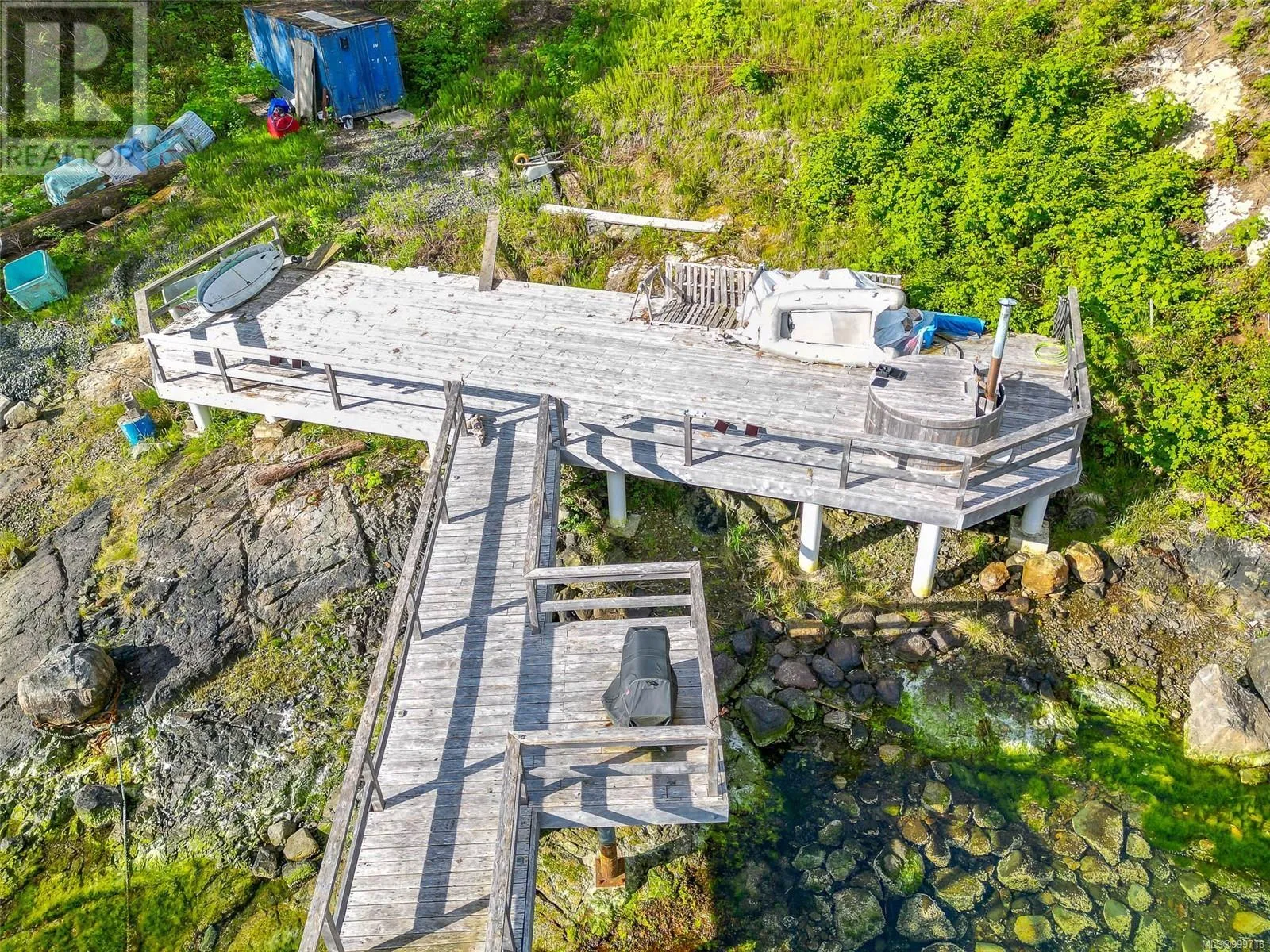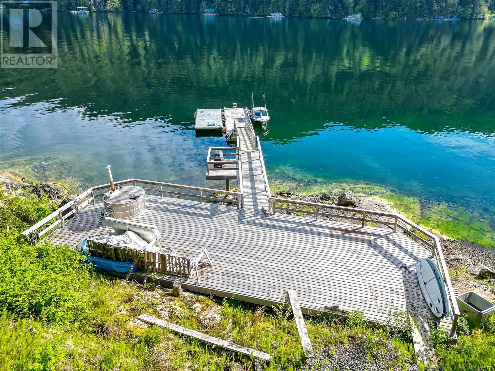 INCLUDED WITH SALE IS A 1995 29.5FT BAYLINER BOAT. A unique boat/plane-access property, already set up with an amazing year-round, all-tides dock. The current owners have cleared some of the trees to the water's edge for a future build site and hired a crew to construct a 62â x 20â engineered yellow cedar deck, complete with a 40â x 10â dock and a 40â x 4â pier. A cleared skidder trail winds through the property, leading to a 25â x 14â platform deeper in the forest, built for a large canvas tent included with the sale. The Sea Can, equipped with benches, lighting, and proper ventilationâhas been converted into a functional workshop. Catch crabs right off the dock, relax in the 7ft wood-fired Alumatub, watch the Lady Rose, whales and visit with Sidney the Seal. This is the complete package with fresh water lines run through the property with taps at the cabin site, deck and dock. If you've been envisioning a remote, boat-access lifestyle, this is the perfect place to bring that vision to life. (id:27476)