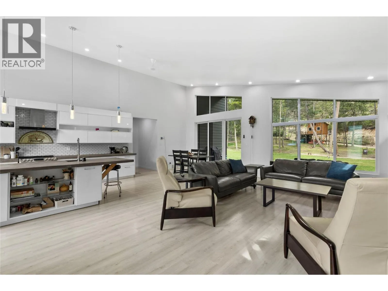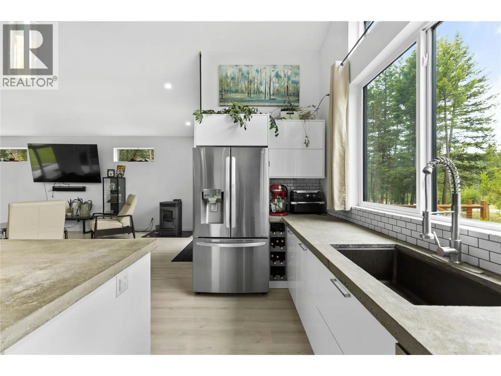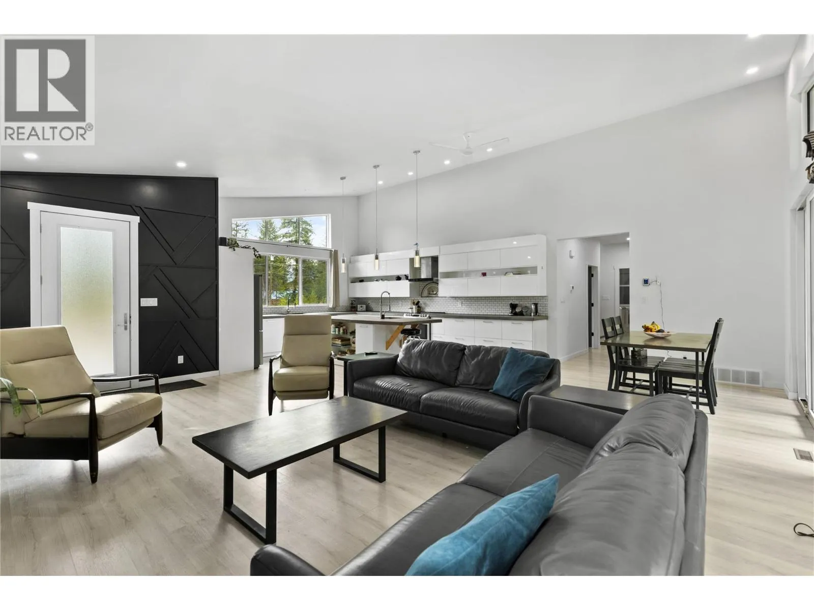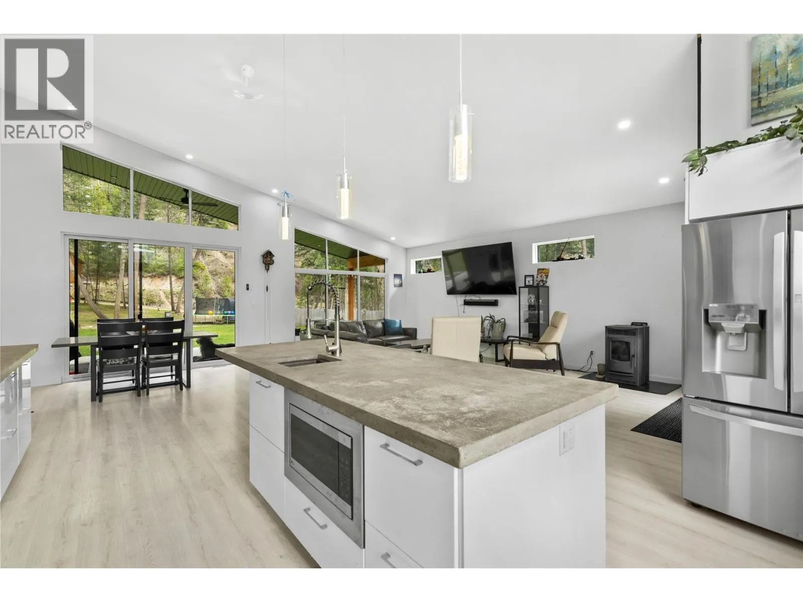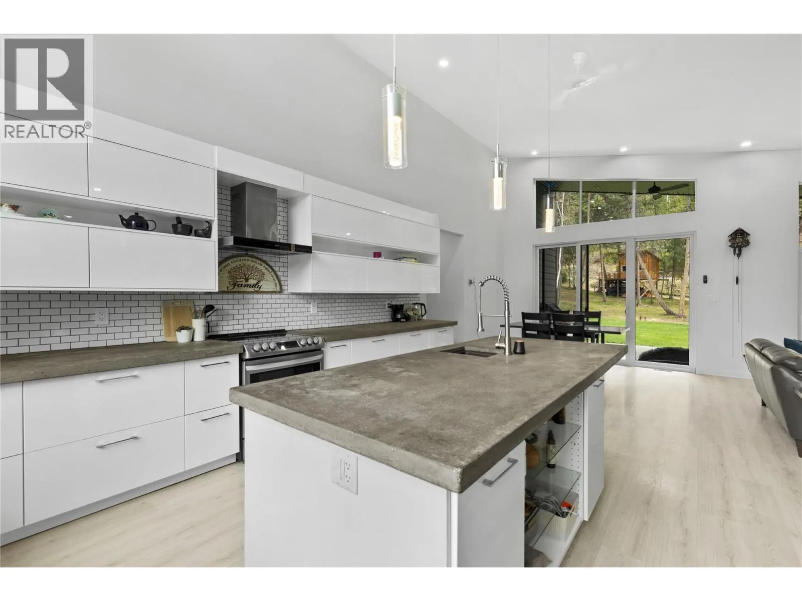 Modern Design Meets Elegance: Step into this stunning open-concept 3 bedroom + Den home, boasting sleek modern finishes and soaring vaulted ceilings (approx. 14-15 feet) in the main living area. Enjoy the luxury of 9-foot ceilings throughout the home and generously sized bedrooms that cater to comfort and relaxation. The large custom kitchen, featuring exquisite concrete countertops, is perfect for culinary enthusiasts and entertaining guests. The fully fenced and landscaped private yard is complete with underground sprinklers, making outdoor maintenance a breeze. Outfitted with Low E windows, argon insulation, and Sun Stop tint, this home keeps cool in the summer while reducing energy costs. Just 5 years old, this property is turnkey and offers modern comforts in a well-established setting just minutes from all town amenities. (id:27476)