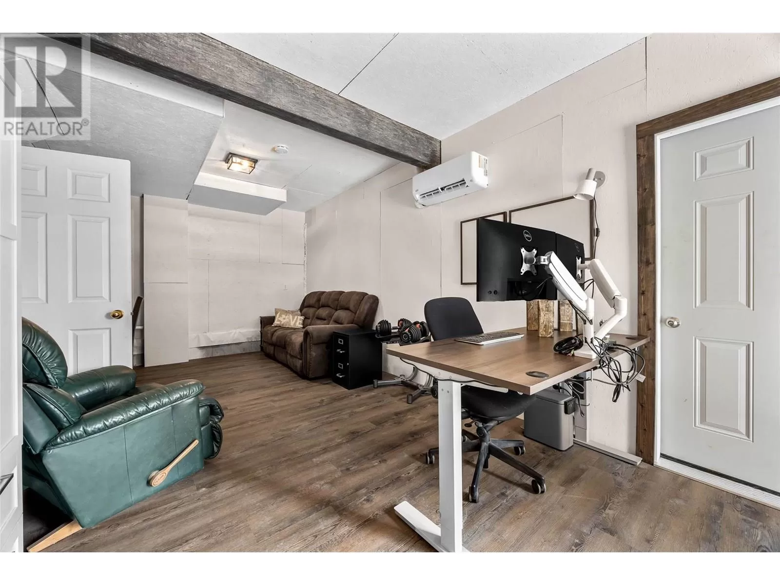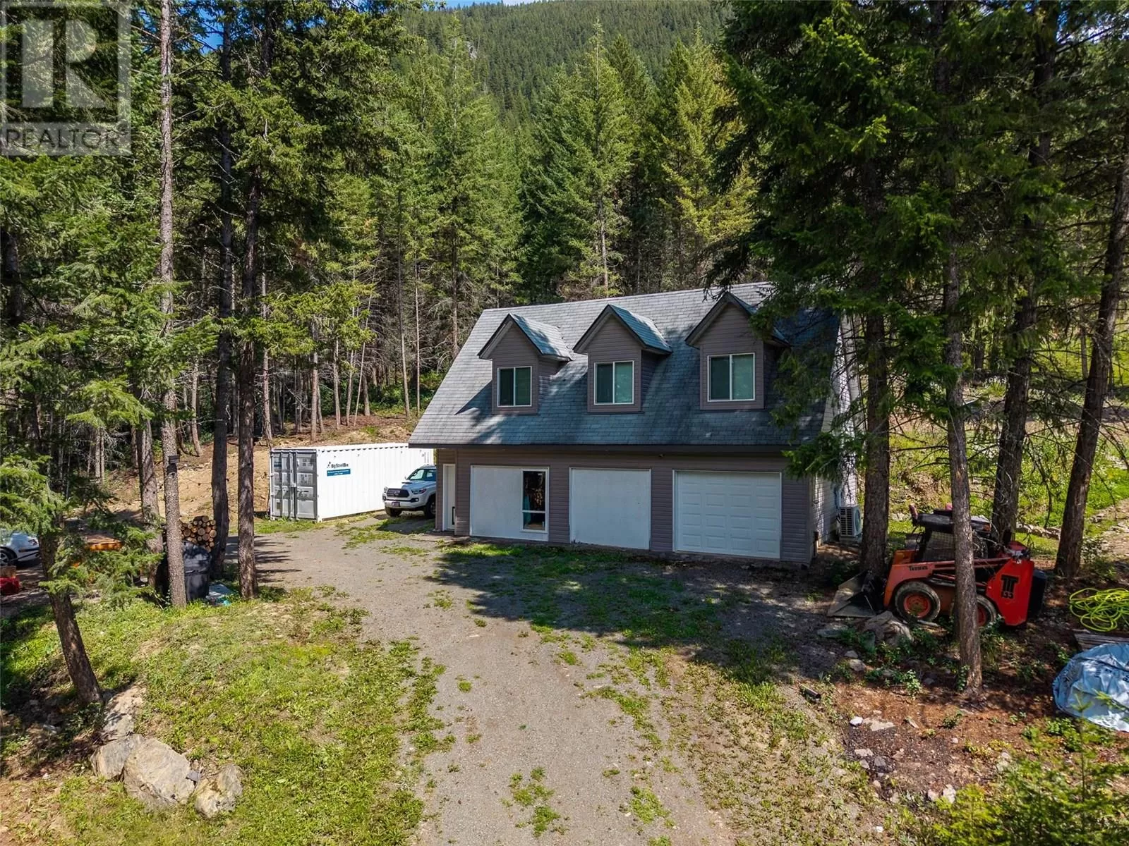 Nestled on a secluded 9-acre lot, this unique 1-bedroom, 1-bathroom home presents an incredible opportunity for those looking to build their dream residence. Thoughtfully designed above a spacious triple garage, it offers a cozy yet functional living space with modern amenities and comfortable interiors. One of the garage bays has been converted into a versatile office but can easily be restored to its original use. The shop is well-equipped with a pellet stove, a 125-amp panel, and a 240V plug, making it ideal for a variety of projects. Plus, with a second hydro meter already installed, the groundwork is set for future development when you're ready to bring your dream home to life. Measurements approx. (id:27476)