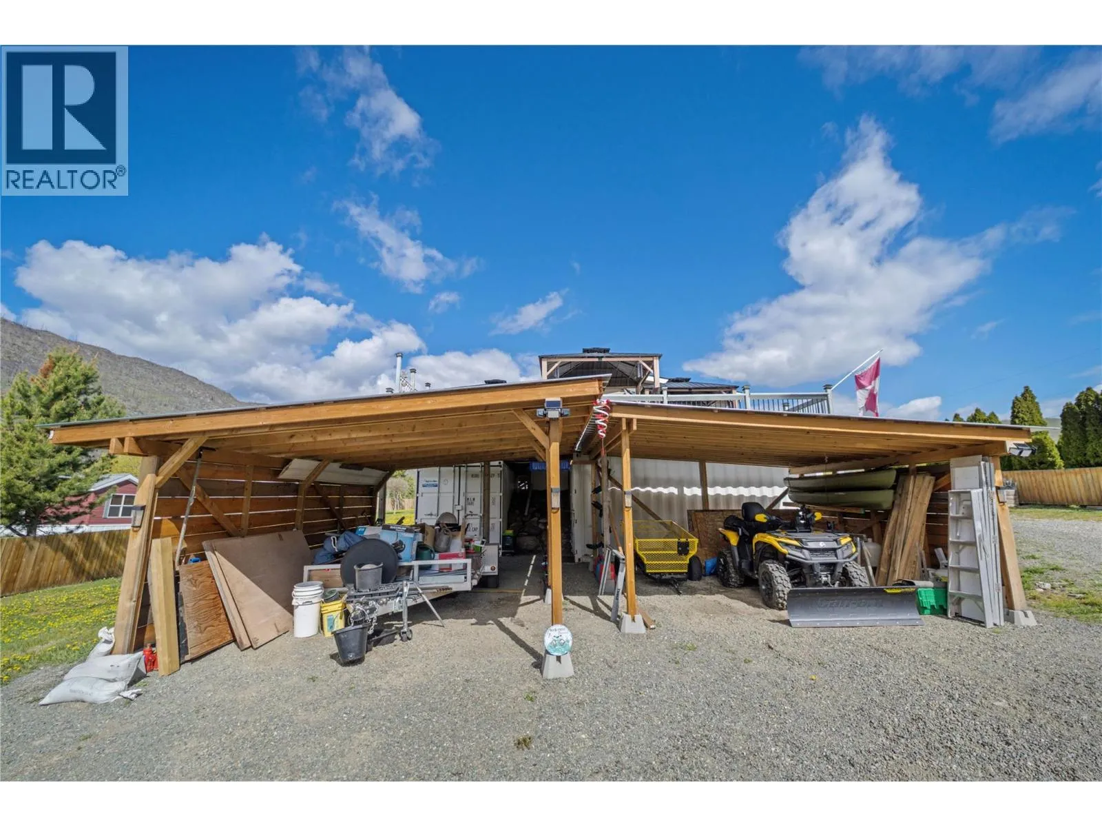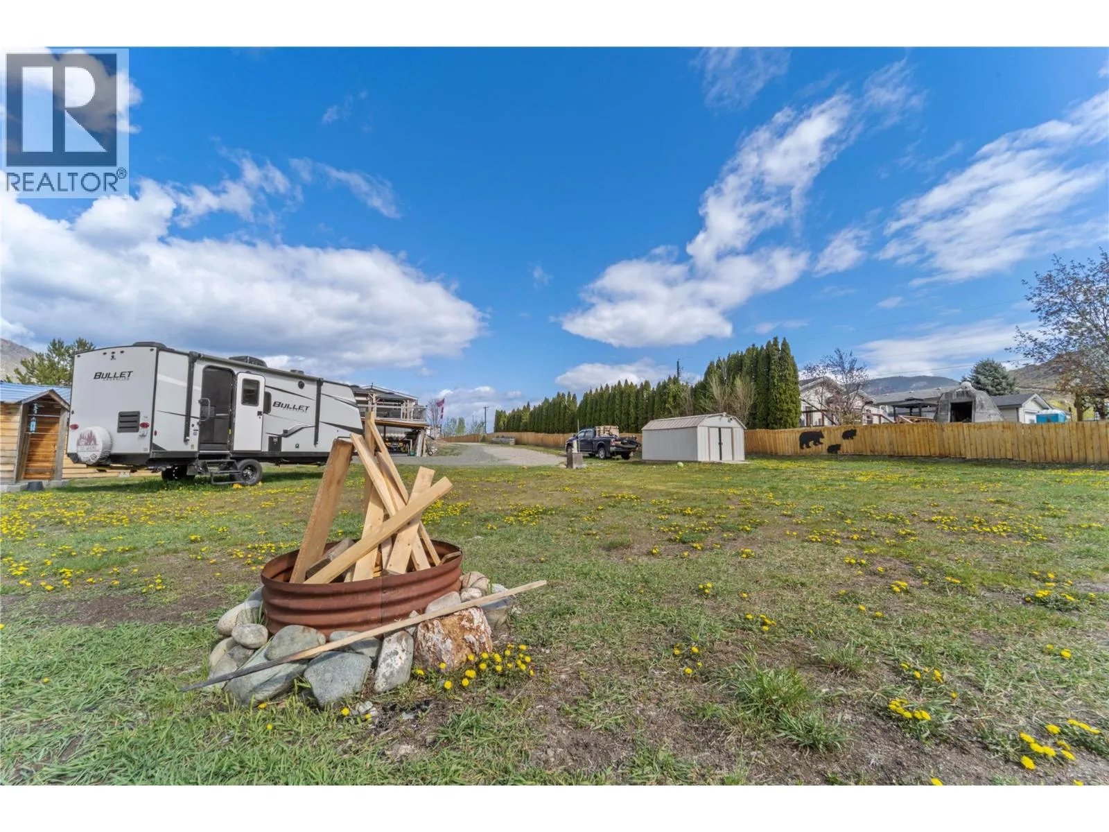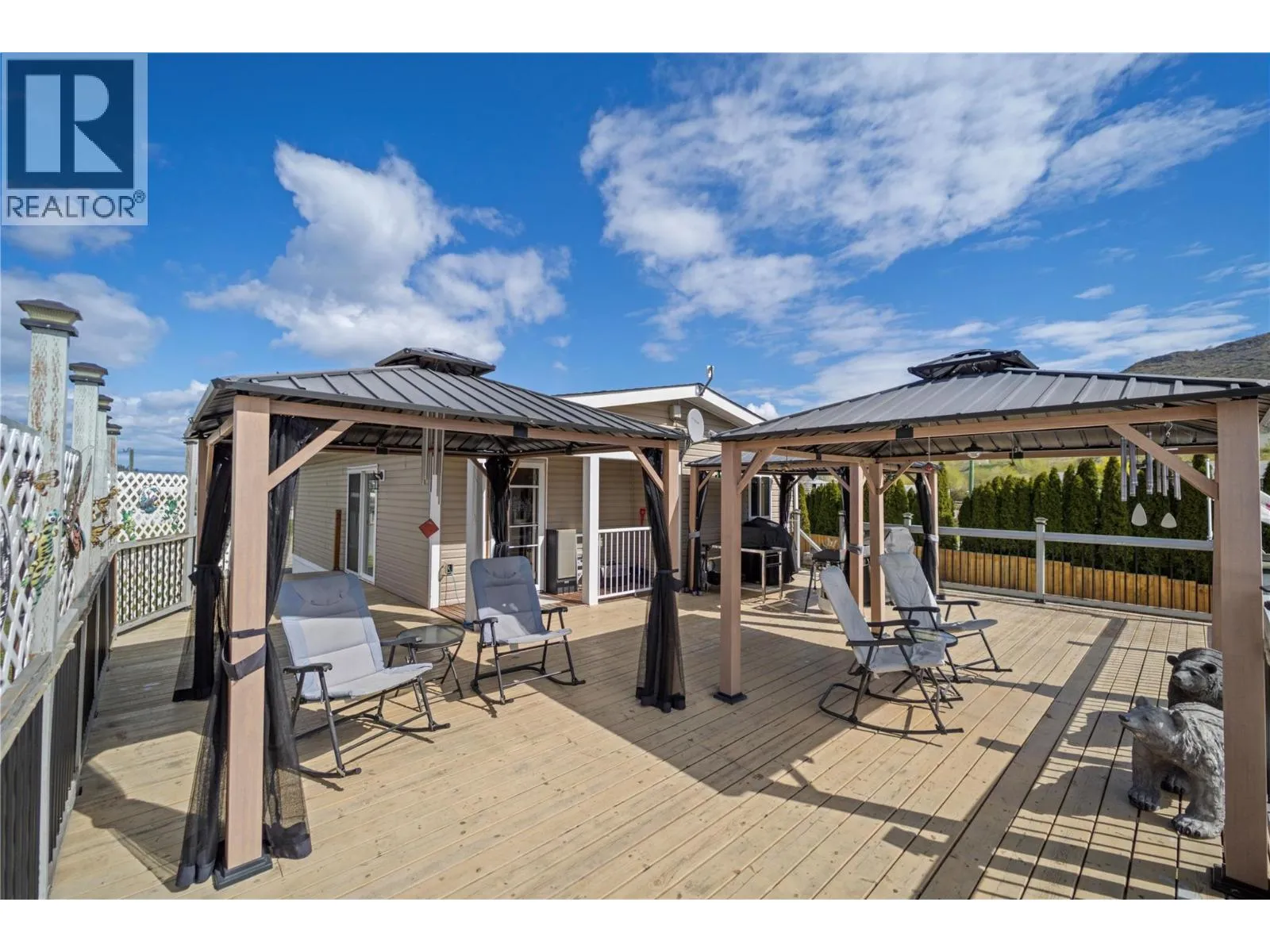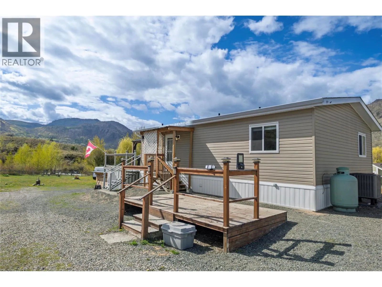 Peaceful creekside retreat backing onto Louis Creek, just 5 mins from Barriere and 40 mins to Kamloops. This 2-bed, 1-bath 24x36 manufactured home (2017) offers quiet living with a propane stove, central AC (2024), and water softener. Zoned R1 with potential for a home-based business, accessory buildings, or B&B. Massive deck with 3 gazebos, fenced yard, apple tree, powered sheds, and multiple storage options including lean-tos and C-cans. A few RV hookup locations with water, sewer, 30 amp plug & sani dump. 60 GPM well, 200 amp to house, 100 amp cable ready for future shop. Telus internet/security. Enjoy the beauty of Louis Creek with its salmon-filled waters, access to nature, and endless outdoor recreationâall within reach of essential amenities. All Measurements approx. (id:27476)