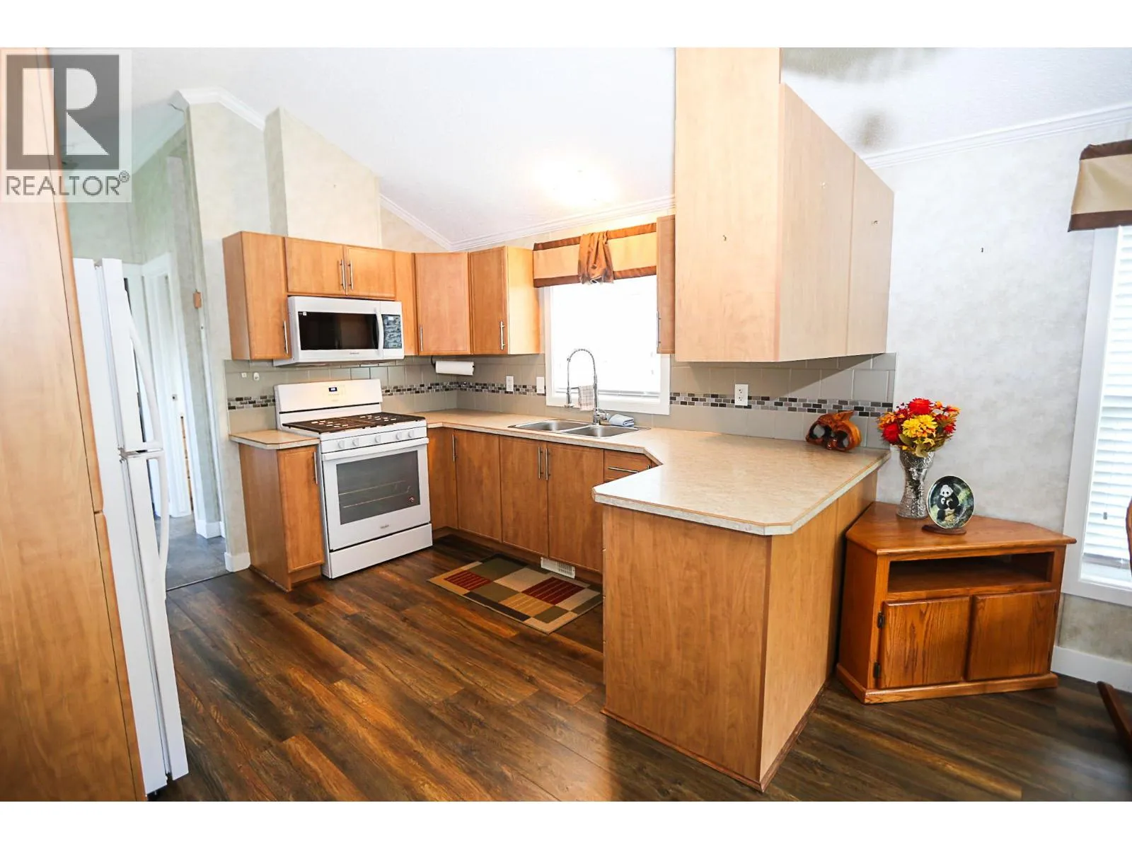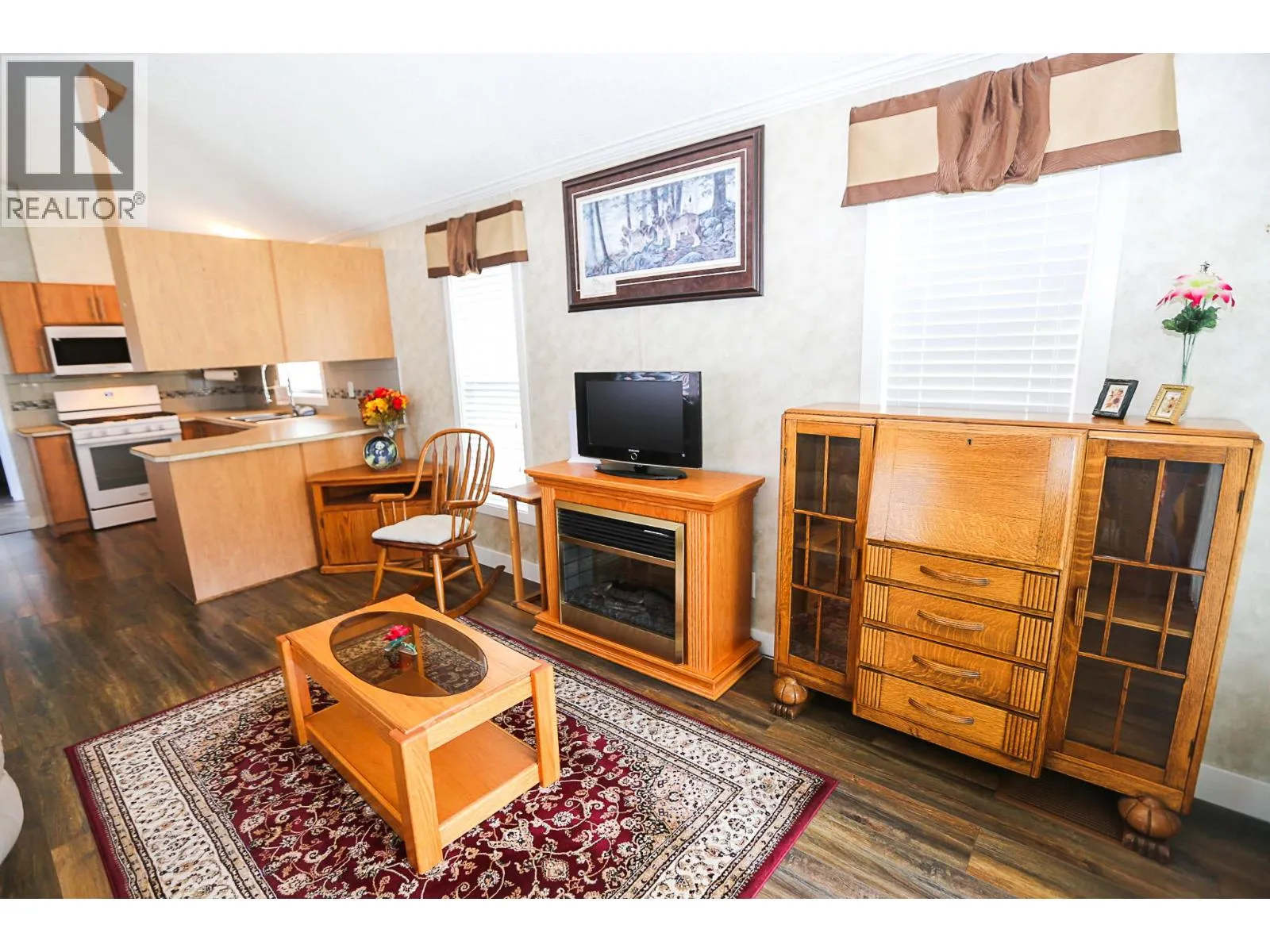 This charming 2017 Park Model home is ideal for seniors, snowbirds, or anyone 55 and older seeking a quiet, low-maintenance lifestyle. Located in the peaceful Creekside MHP beside tranquil Louis Creek, youâll enjoy the sounds of nature while still being just minutes from all the conveniences of downtown Barriere. The bright, open-concept design features vaulted ceilings and large windows that fill the space with natural light. This fully self-contained home comes complete with a queen-size bed, headboard, and nightstands, along with all appliances â including a propane range, microwave, washer and dryer, and electric fireplace. Additional features include hot water on demand and insulated skirting, providing enhanced comfort and improved energy efficiency. Step outside to the covered deck and enjoy year-round outdoor living with beautiful creekside views. This home is move-in ready, making it a quick, easy, and appealing option for immediate possession and your next chapter. See for yourself how comfortable and inviting this home truly is! (id:27476)