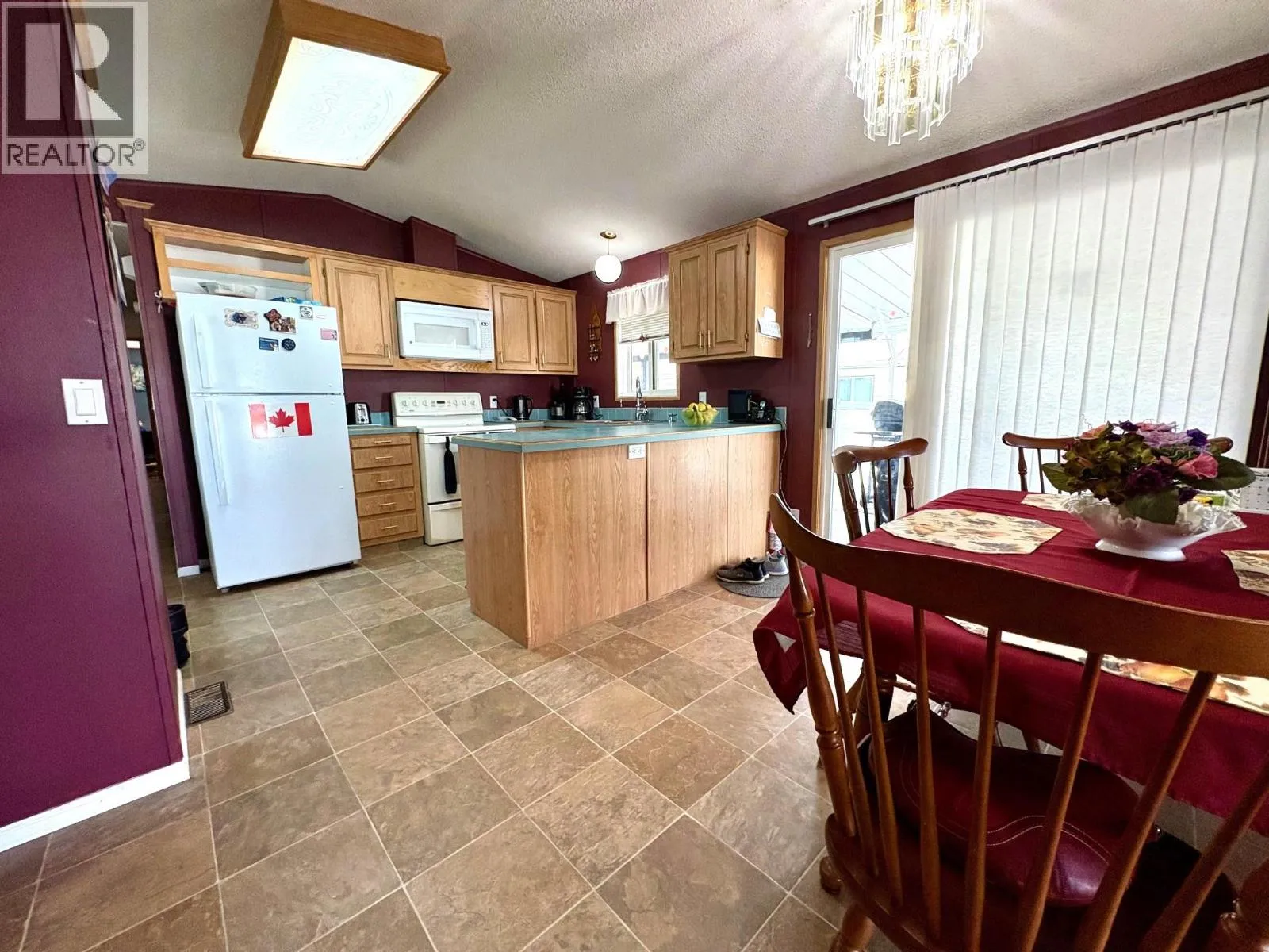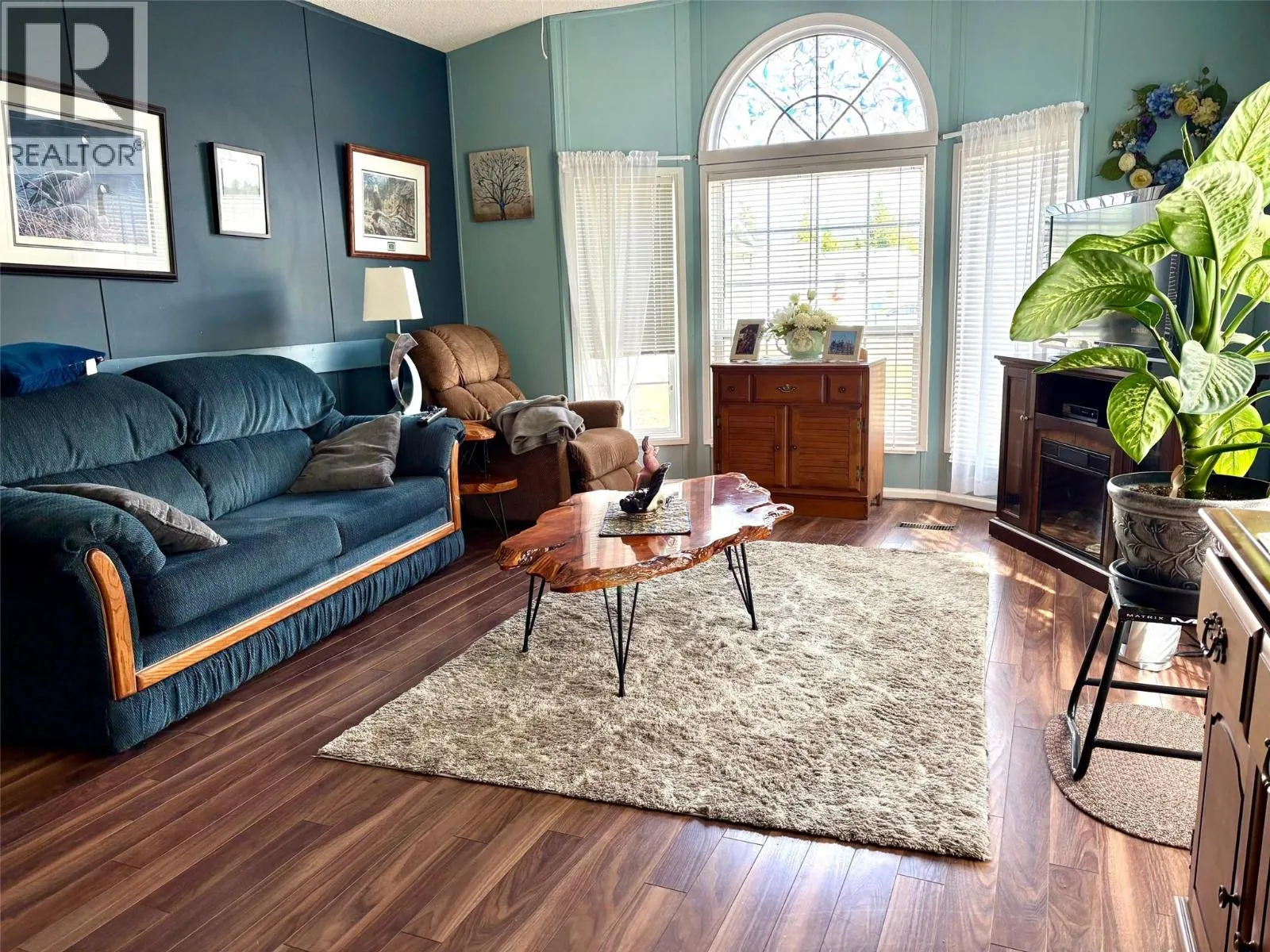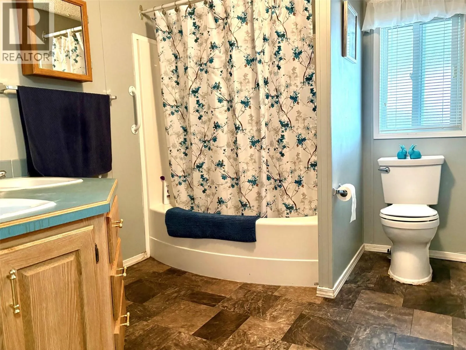 Perfect Retirement Home. Welcome to this inviting well maintained 2-bedroom home, ideally situated in a beautifully kept manufactured home community. Designed for comfort and ease, this residence features a spacious 5-piece bathroom & a bright sunken living room with large bay windows that fill the space with natural light. Enjoy the charm and functionality of a Built-In China cabinet and step out from the dining area through patio doors to a covered deckâideal for morning coffee or evening relaxation. The energy-efficient heat pump ensures year-round comfort with cooling in the summer and warmth in the winter. Add features include: Insulated and wired storage room for added utility, Double blacktop driveway, just enough lawn, chain link fenced & storage shed. Located just minutes from town amenities and outdoor recreation, this home offers the perfect blend of tranquility and convenience. A must-see for those seeking a peaceful retirement lifestyle. (id:27476)