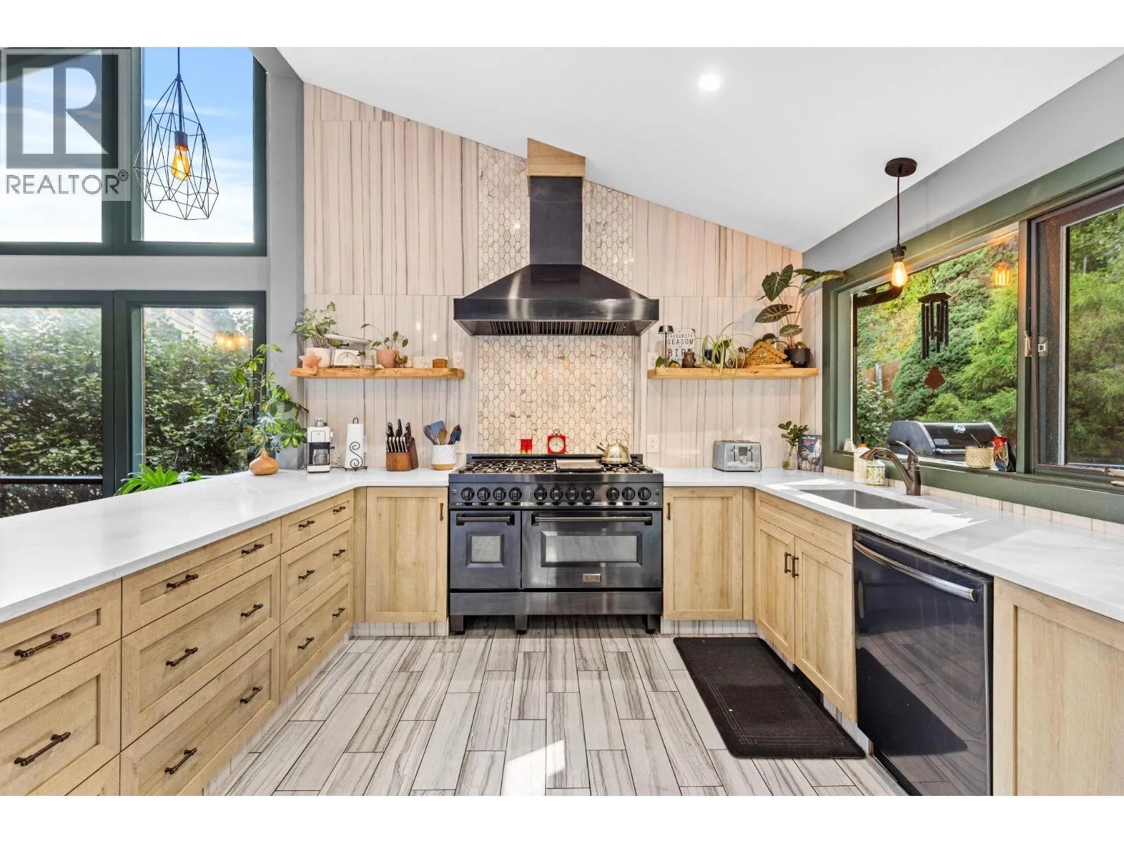 This is a home that offers more than beautiful design - it offers a lifestyle thatâs increasingly hard to find. Set on 0.862 acres across two separately titled lots, the property provides space, privacy, and flexibility for the future. Inside, vaulted ceilings, expansive windows, and newer skylights fill the home with natural light throughout the day. The interiors strike a balance between character and modern comfort, with high-quality tile, subtle marble accents, and natural live-wood elements that both elevate and ground the space. The kitchen is a true culinary dream, anchored by a ZLINE dual-fuel convection oven. Thoughtful design continues throughout, from the maple live-edge wood details in the main living area to the effortless flow between spaces. The upper landing offers flexibility for a home office, creative space, or quiet reading nook. Surrounded by mature trees, the backyard deck offers privacy and a strong connection to the landscape, complete with a custom stone-accented built-in BBQ. The primary suite opens onto its own private deck - a peaceful extension of the bedroom and an ideal place to start or end the day. A large detached shop and greenhouse add even more versatility. Here, thereâs room to live the way you want - private yet connected, active yet calm, part of a community that supports and inspires. Endless recreation, space to breathe, and a neighbourhood that feels like home. (id:27476)