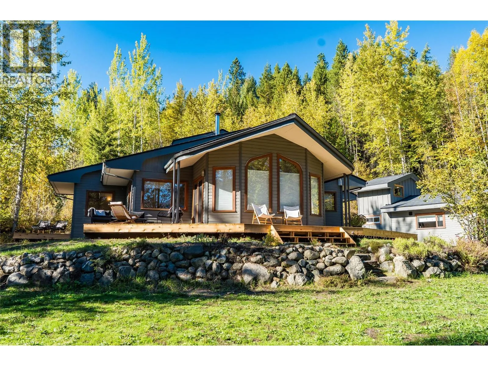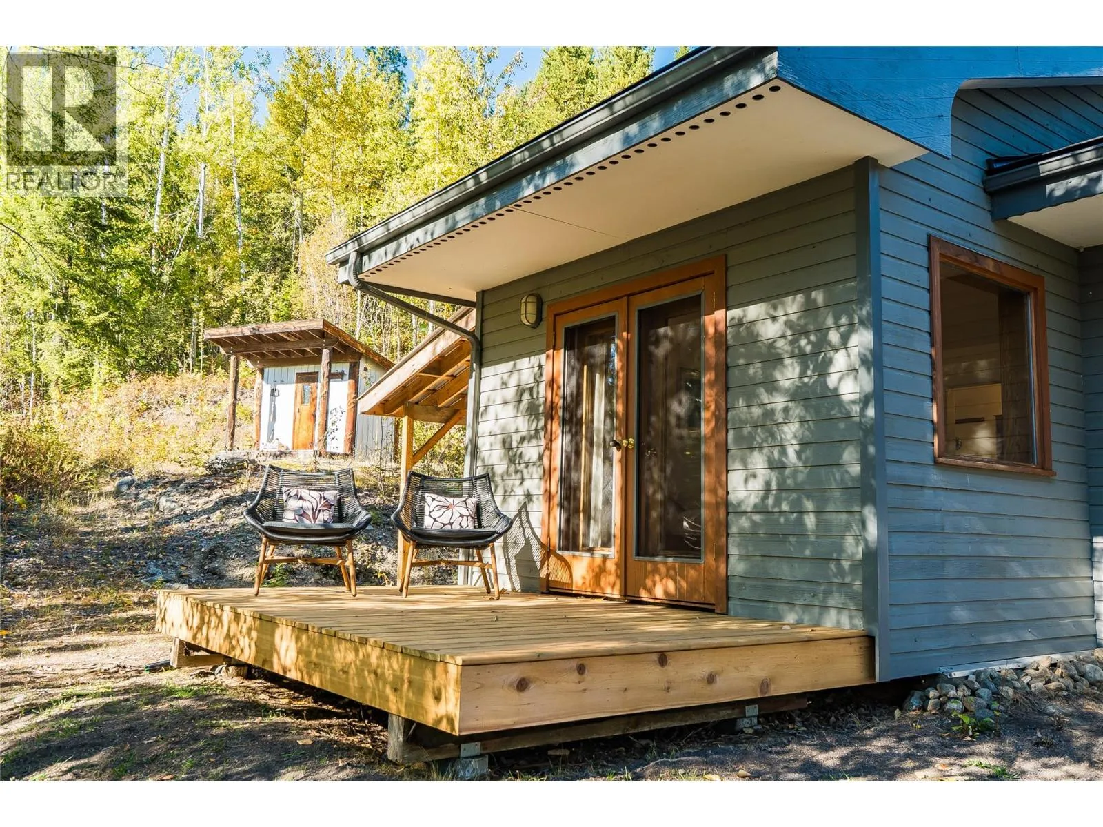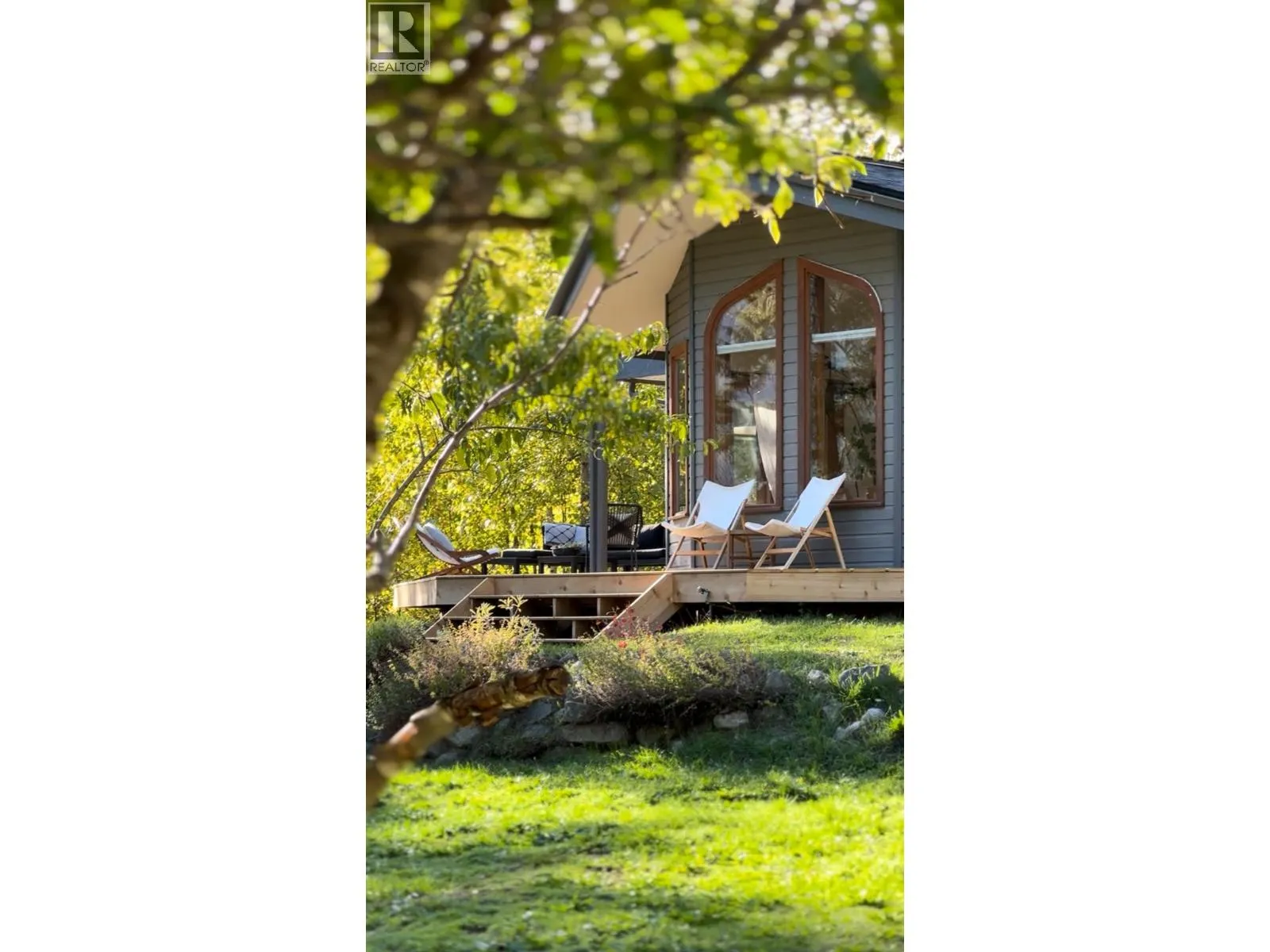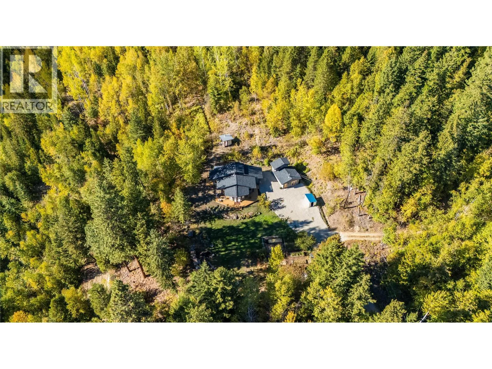 This captivating 3-bedroom, 2-bathroom contemporary home invites you into a warm, modern retreat on 9.75 private acres. Just 15 minutes from Nelson, BC, this sanctuary offers unparalleled privacy, year-round sunshine, breathtaking views, and the soothing murmur of Falls Creek in the distanceâperfect for those craving tranquility, space for gardening, or peaceful walks. Step inside to a cozy, energy-efficient haven with an open-concept design that radiates warmth. Soaring high ceilings and abundant windows bathe the space in natural light, seamlessly blending the stunning surroundings with your everyday life. The thoughtfully designed kitchen is a chefâs delight open to the bright dining and living areas while two luxurious bathrooms feature deep cast-iron tubs for ultimate relaxation. Recent updates elevate the homeâs charm, including a wraparound deck for easy outdoor living and a brand-new roof. Beyond the main house, discover a newly renovated 18x25 guesthouse with modern finishes, ideal for visitors or a private retreat. Additional treasures include a cedar wood-fired sauna, a 12x18 treehouse/studio complete with a kitchenette, sink, shower, and sleeping loft. A thriving garden in the front yard with a state-of-the-art chicken coop. This property blends modern updates with soulful warmth, making it a must-see for those seeking a unique, nature-embraced lifestyle. With subdivision potential, this property must be seen to appreciate all the possibilities. (id:27476)