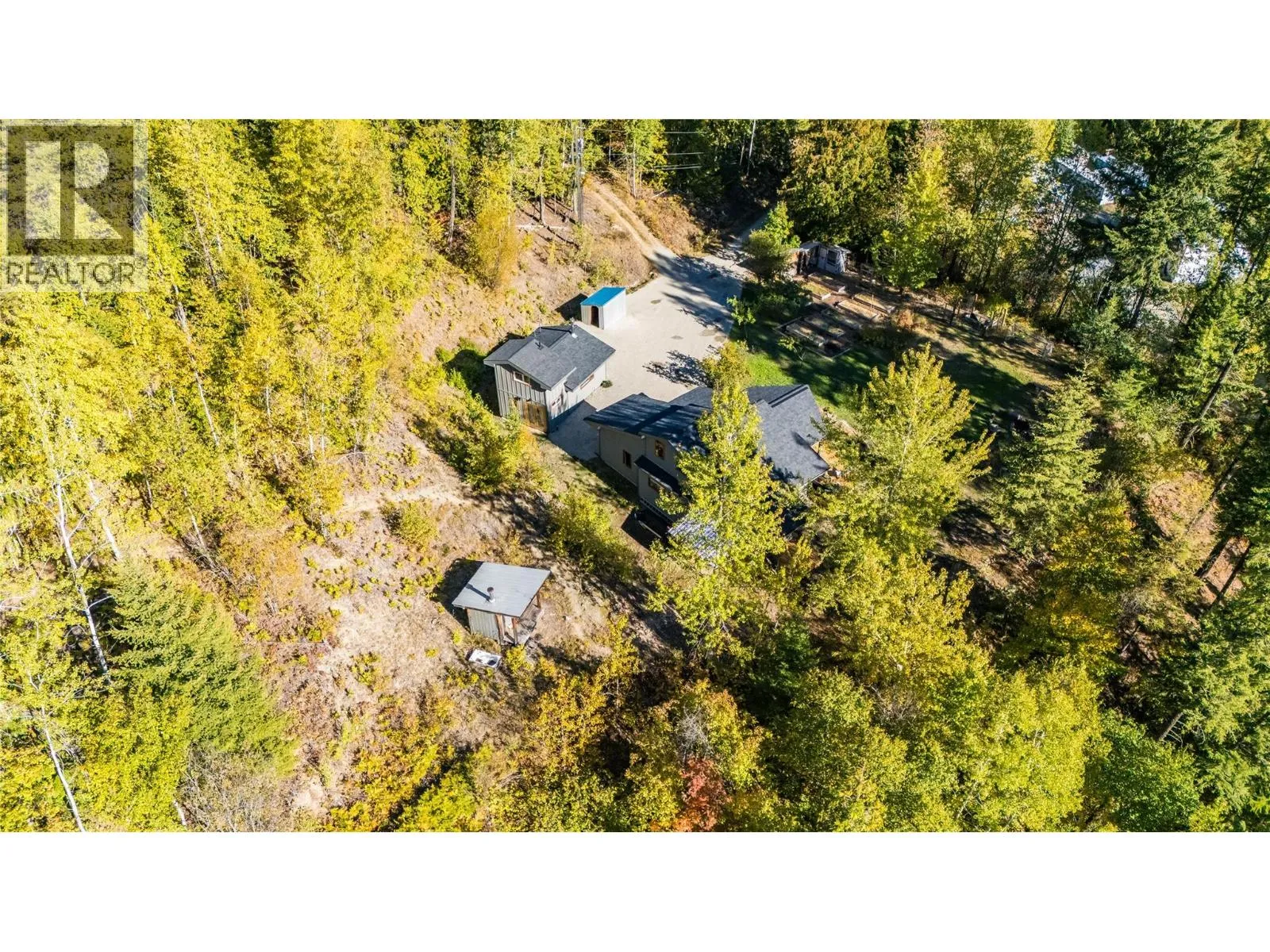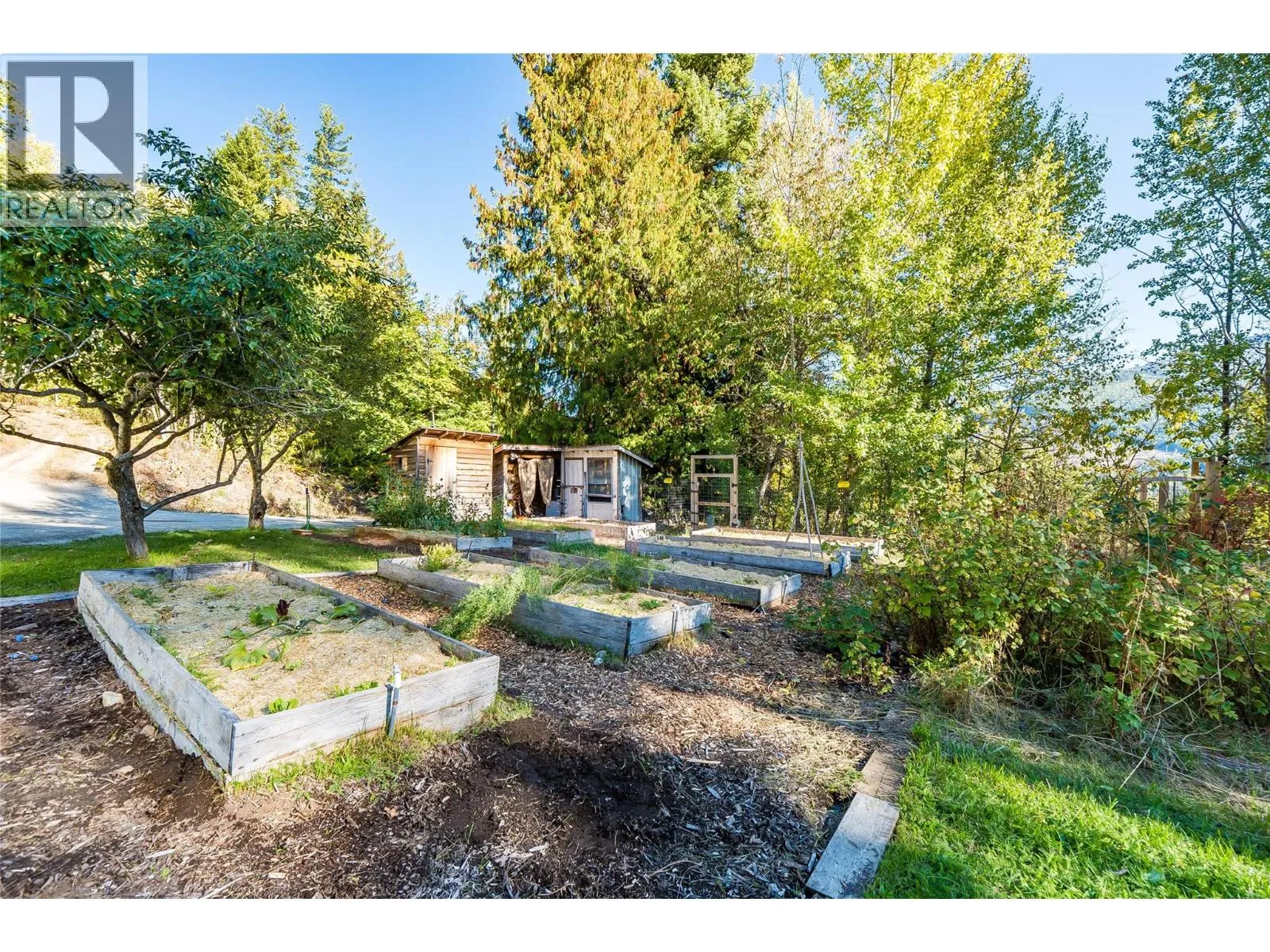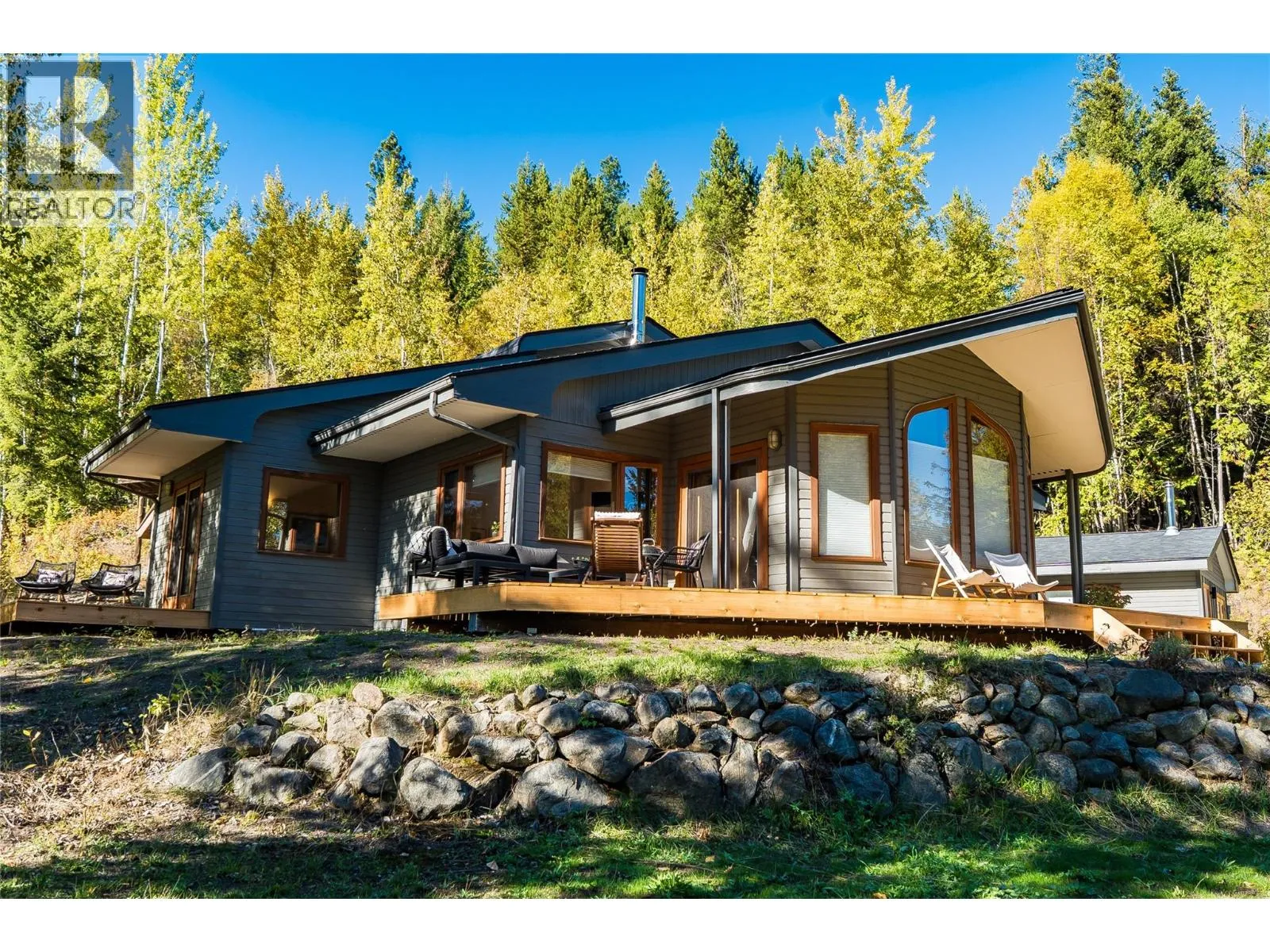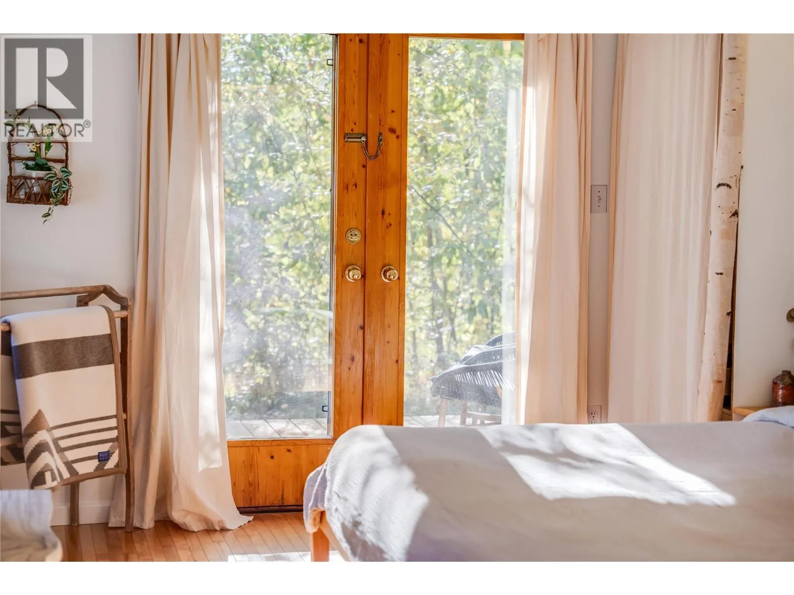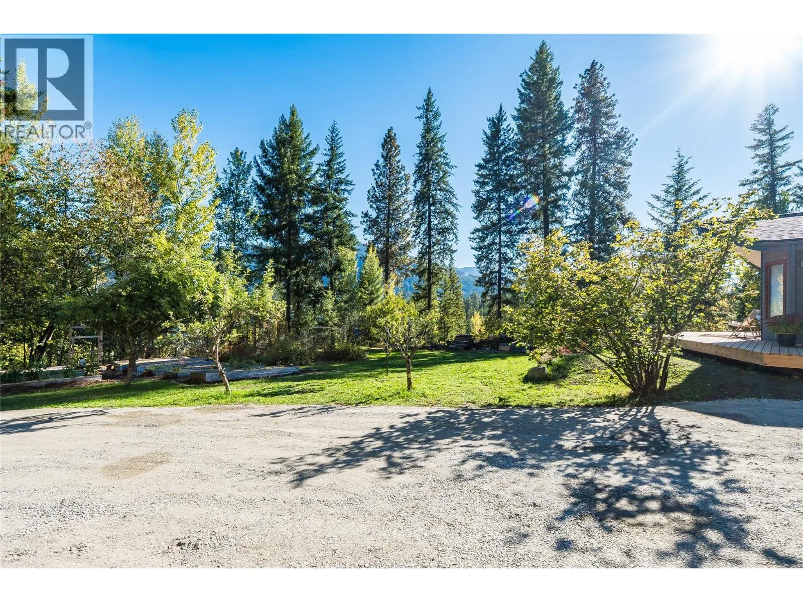 This captivating 3-bedroom, 2-bathroom contemporary home invites you into a warm, modern retreat on 9.75 private acres. Just 15 minutes from Nelson, BC, this sanctuary offers unparalleled privacy, year-round sunshine, breathtaking views, and the soothing murmur of Falls Creek in the distanceâperfect for those craving tranquility, space for gardening, or peaceful walks. Step inside to a cozy, energy-efficient haven with an open-concept design that radiates warmth. Soaring high ceilings and abundant windows bathe the space in natural light, seamlessly blending the stunning surroundings with your everyday life. The thoughtfully designed kitchen is a chefâs delight open to the bright dining and living areas while two luxurious bathrooms feature deep cast-iron tubs for ultimate relaxation. Recent updates elevate the homeâs charm, including a wraparound deck for easy outdoor living and a brand-new roof. Beyond the main house, discover a newly renovated 18x25 guesthouse with modern finishes, ideal for visitors or a private retreat. Additional treasures include a cedar wood-fired sauna, a 12x18 treehouse/studio complete with a kitchenette, sink, shower, and sleeping loft. A thriving garden in the front yard with a state-of-the-art chicken coop. This property blends modern updates with soulful warmth, making it a must-see for those seeking a unique, nature-embraced lifestyle. With subdivision potential, this property must be seen to appreciate all the possibilities. (id:27476)
