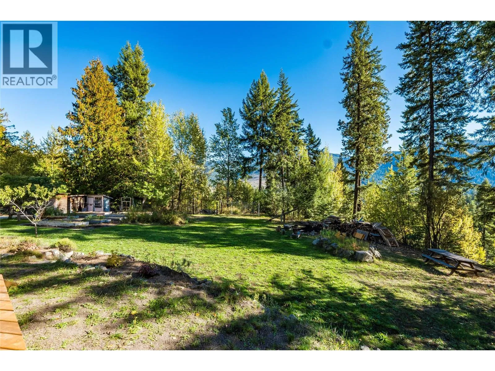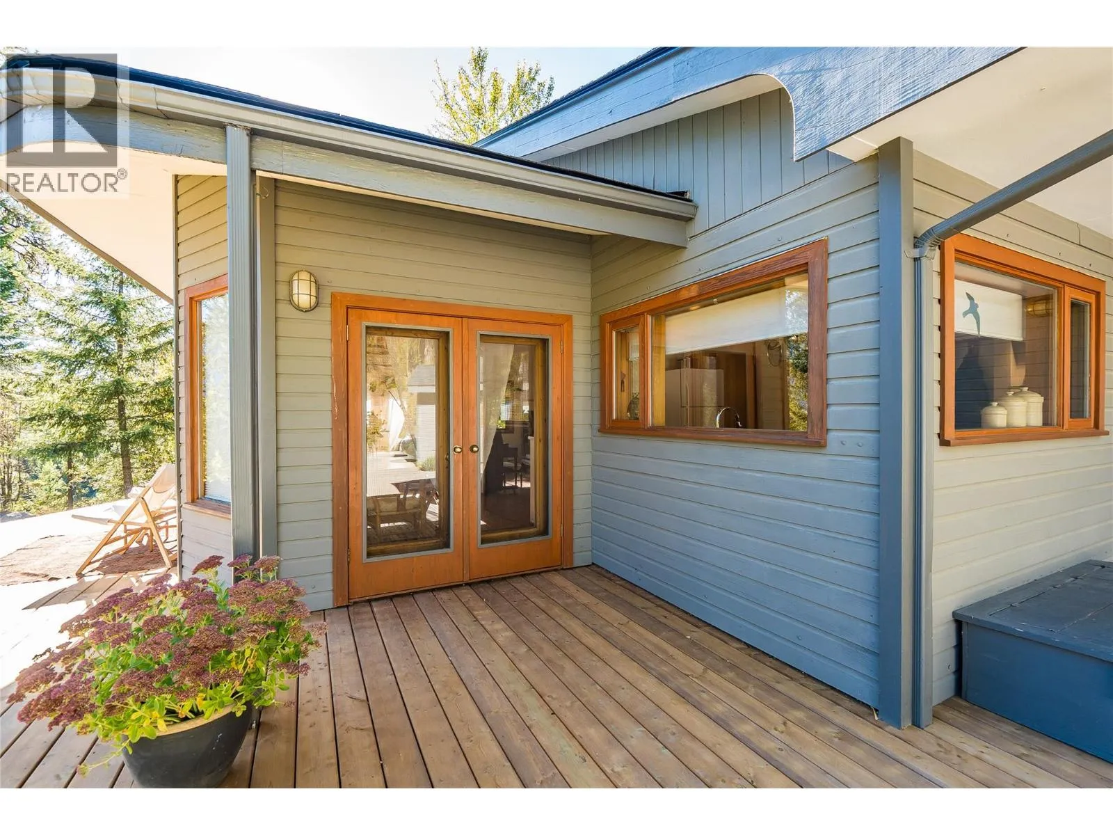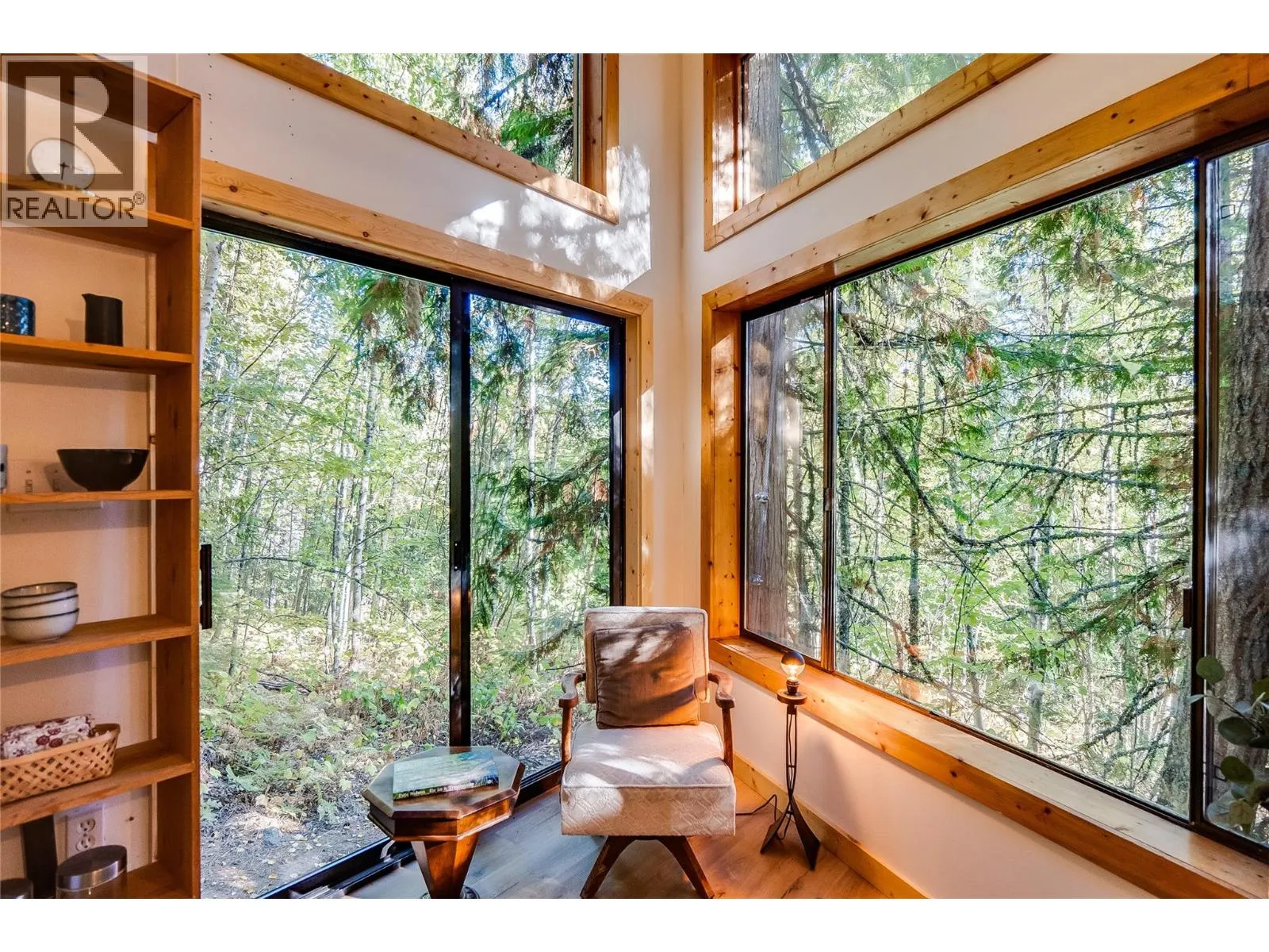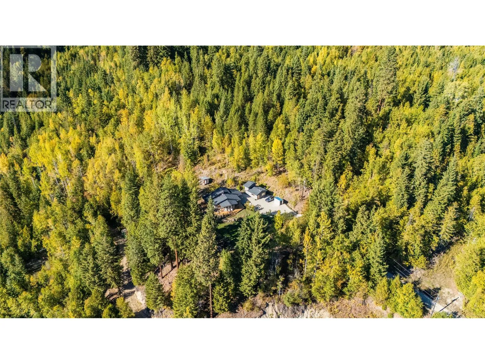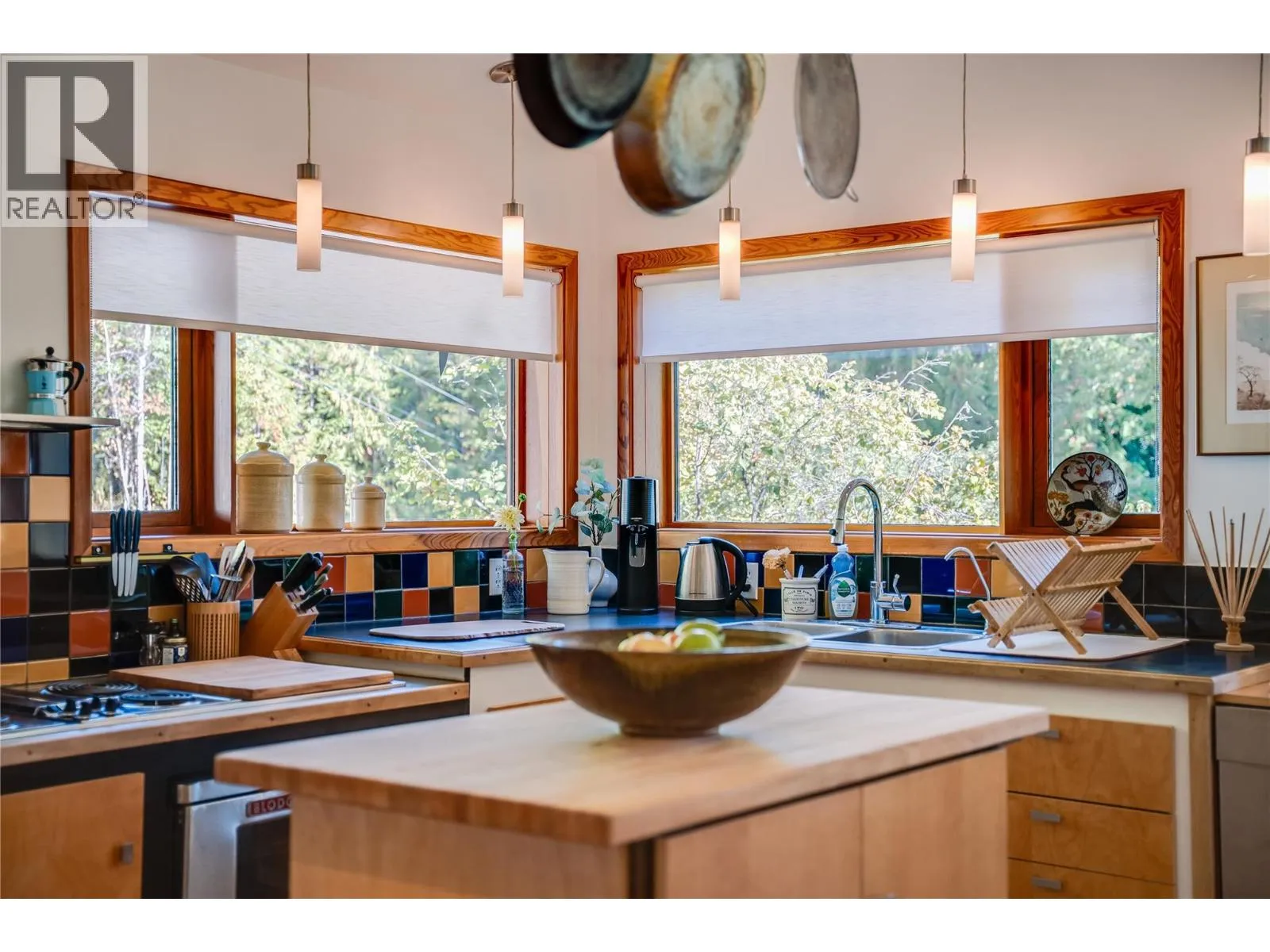 This captivating 3-bedroom, 2-bathroom contemporary home invites you into a warm, modern retreat on 9.75 private acres. Just 15 minutes from Nelson, BC, this sanctuary offers unparalleled privacy, year-round sunshine, breathtaking views, and the soothing murmur of Falls Creek in the distanceâperfect for those craving tranquility, space for gardening, or peaceful walks. Step inside to a cozy, energy-efficient haven with an open-concept design that radiates warmth. Soaring high ceilings and abundant windows bathe the space in natural light, seamlessly blending the stunning surroundings with your everyday life. The thoughtfully designed kitchen is a chefâs delight open to the bright dining and living areas while two luxurious bathrooms feature deep cast-iron tubs for ultimate relaxation. Recent updates elevate the homeâs charm, including a wraparound deck for easy outdoor living and a brand-new roof. Beyond the main house, discover a newly renovated 18x25 guesthouse with modern finishes, ideal for visitors or a private retreat. Additional treasures include a cedar wood-fired sauna, a 12x18 treehouse/studio complete with a kitchenette, sink, shower, and sleeping loft. A thriving garden in the front yard with a state-of-the-art chicken coop. This property blends modern updates with soulful warmth, making it a must-see for those seeking a unique, nature-embraced lifestyle. With subdivision potential, this property must be seen to appreciate all the possibilities. (id:27476)