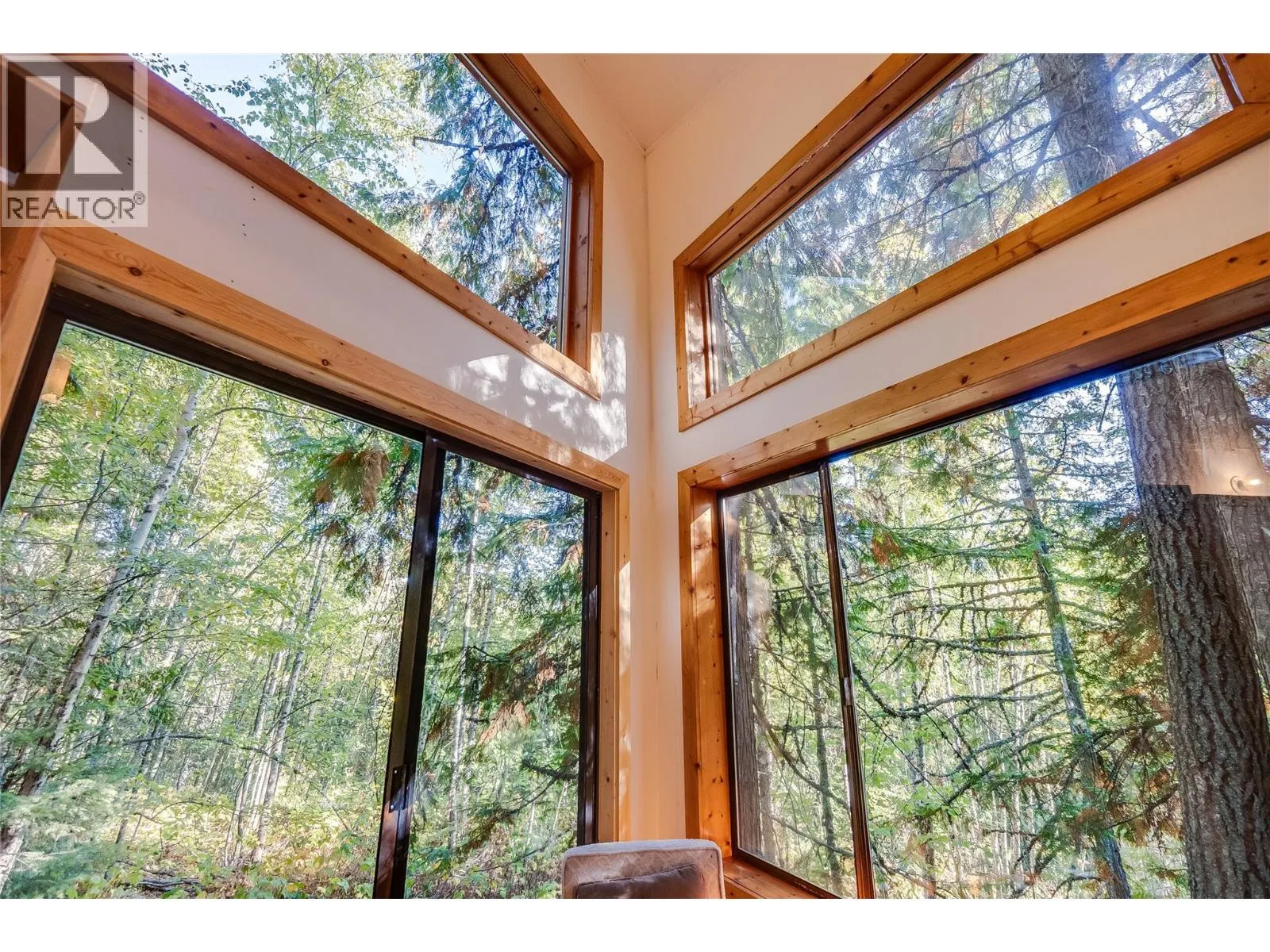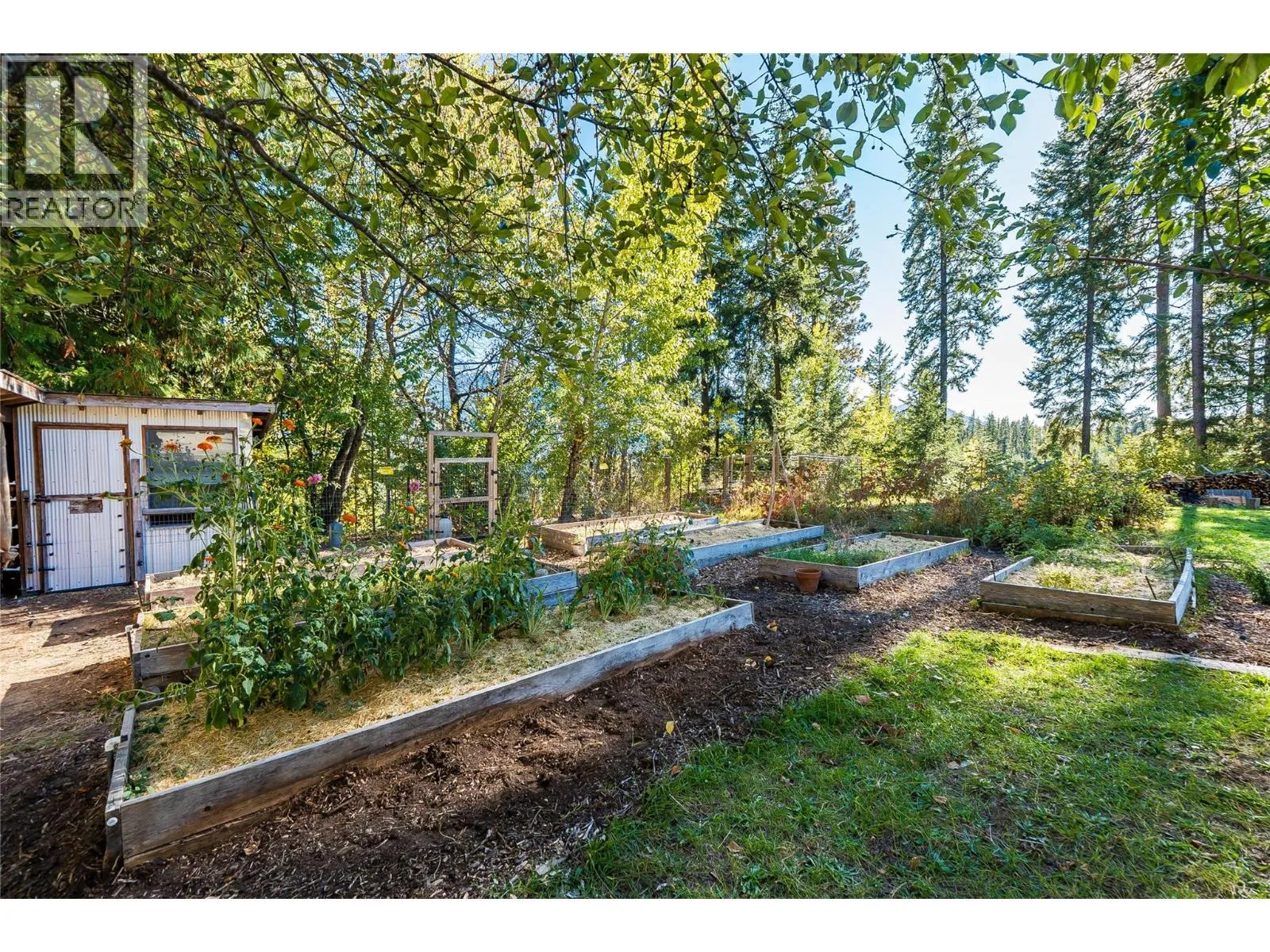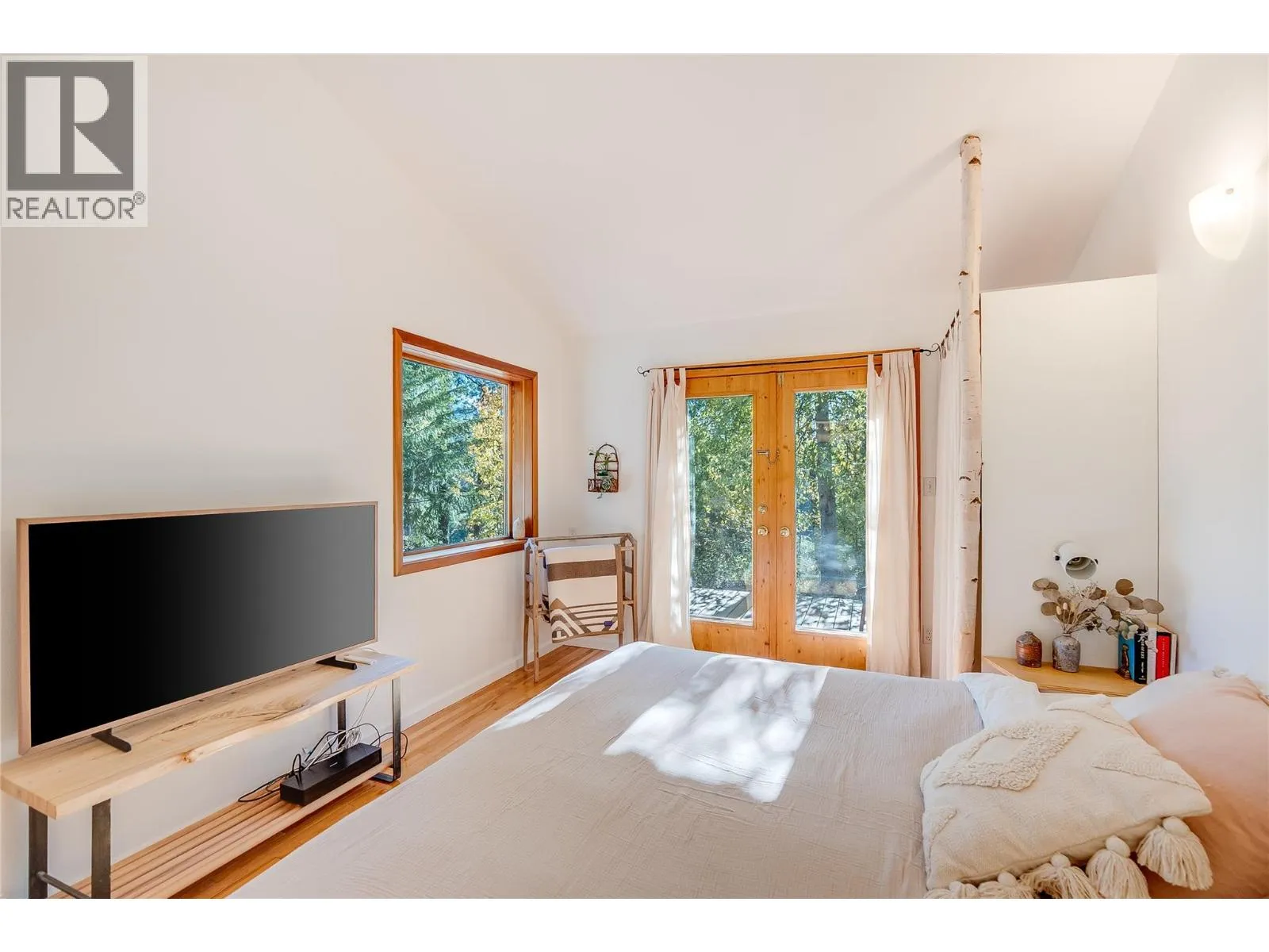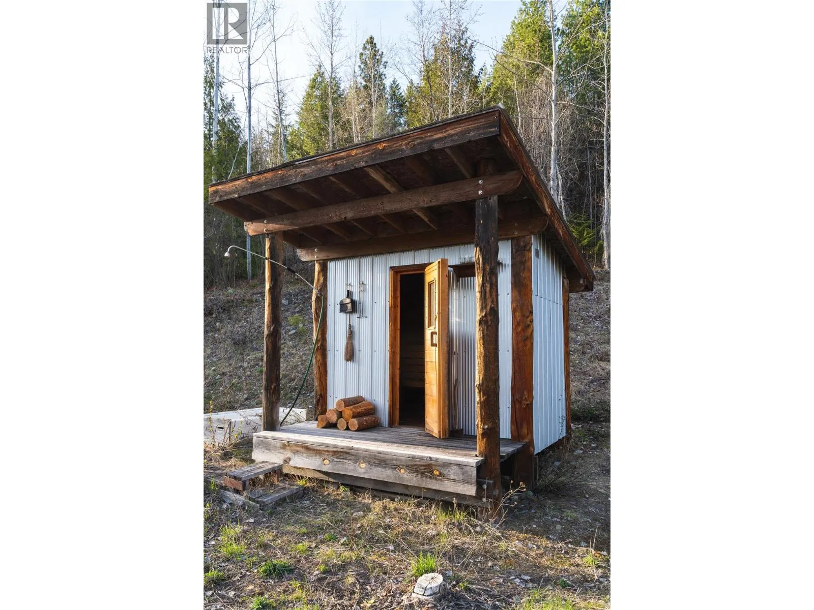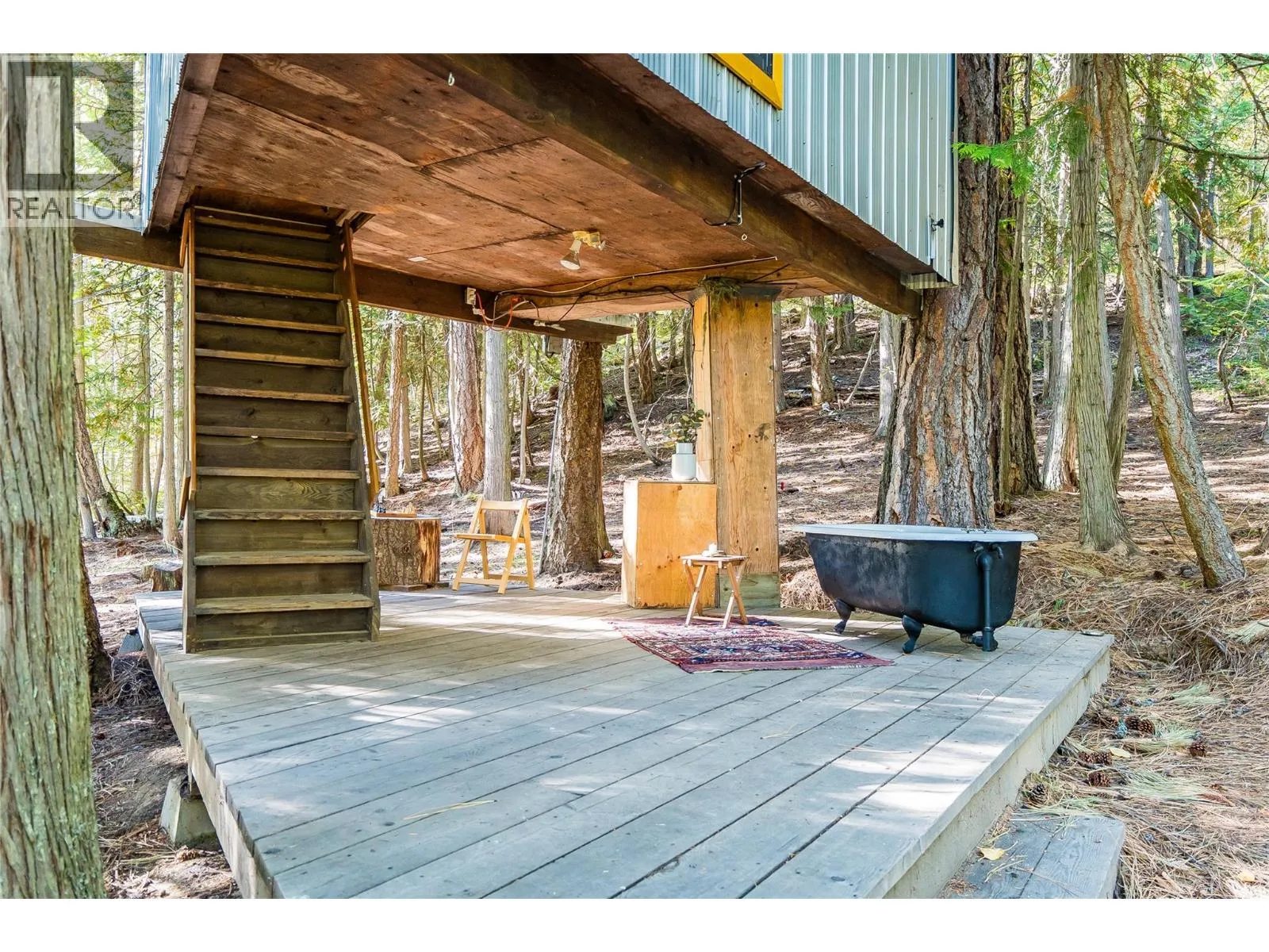 This captivating 3-bedroom, 2-bathroom contemporary home invites you into a warm, modern retreat on 9.75 private acres. Just 15 minutes from Nelson, BC, this sanctuary offers unparalleled privacy, year-round sunshine, breathtaking views, and the soothing murmur of Falls Creek in the distanceâperfect for those craving tranquility, space for gardening, or peaceful walks. Step inside to a cozy, energy-efficient haven with an open-concept design that radiates warmth. Soaring high ceilings and abundant windows bathe the space in natural light, seamlessly blending the stunning surroundings with your everyday life. The thoughtfully designed kitchen is a chefâs delight open to the bright dining and living areas while two luxurious bathrooms feature deep cast-iron tubs for ultimate relaxation. Recent updates elevate the homeâs charm, including a wraparound deck for easy outdoor living and a brand-new roof. Beyond the main house, discover a newly renovated 18x25 guesthouse with modern finishes, ideal for visitors or a private retreat. Additional treasures include a cedar wood-fired sauna, a 12x18 treehouse/studio complete with a kitchenette, sink, shower, and sleeping loft. A thriving garden in the front yard with a state-of-the-art chicken coop. This property blends modern updates with soulful warmth, making it a must-see for those seeking a unique, nature-embraced lifestyle. With subdivision potential, this property must be seen to appreciate all the possibilities. (id:27476)