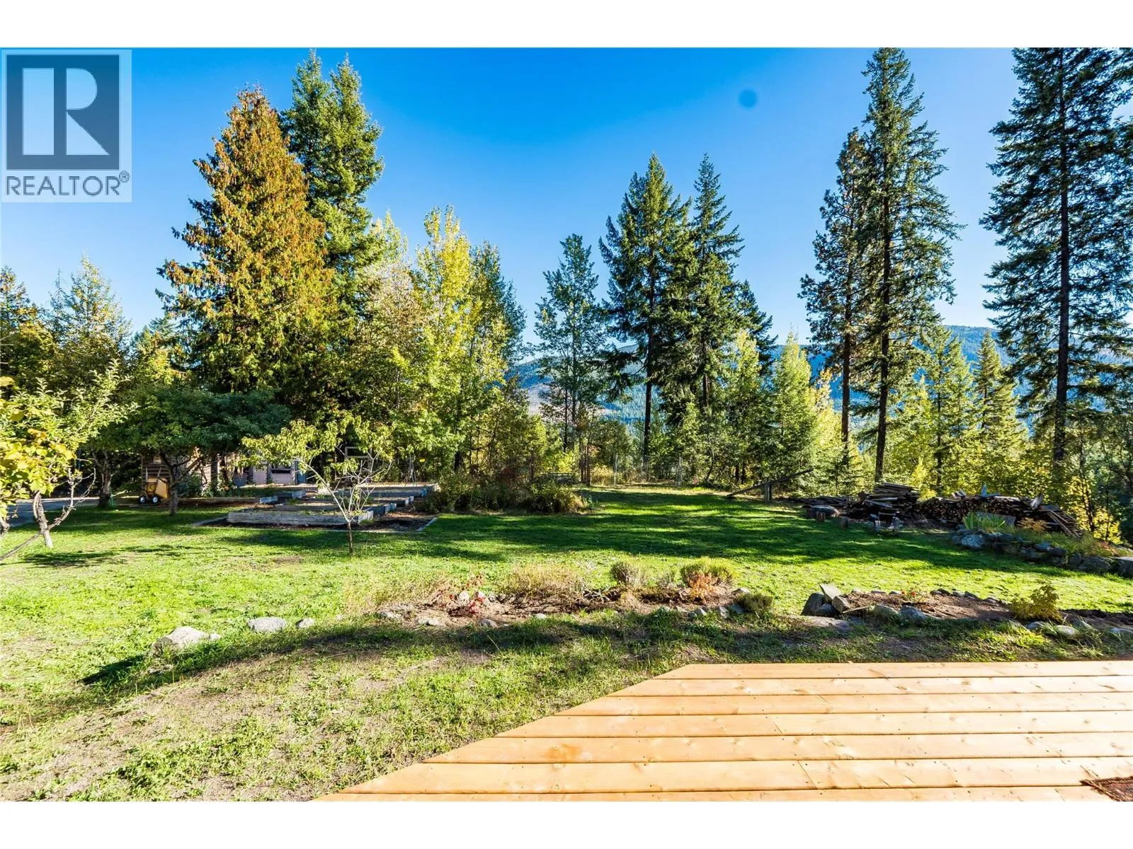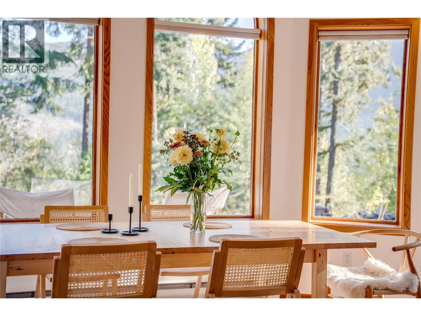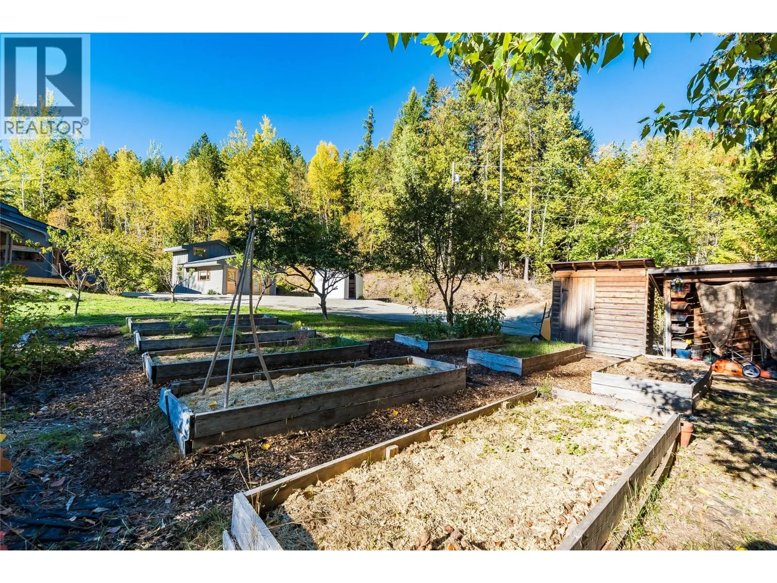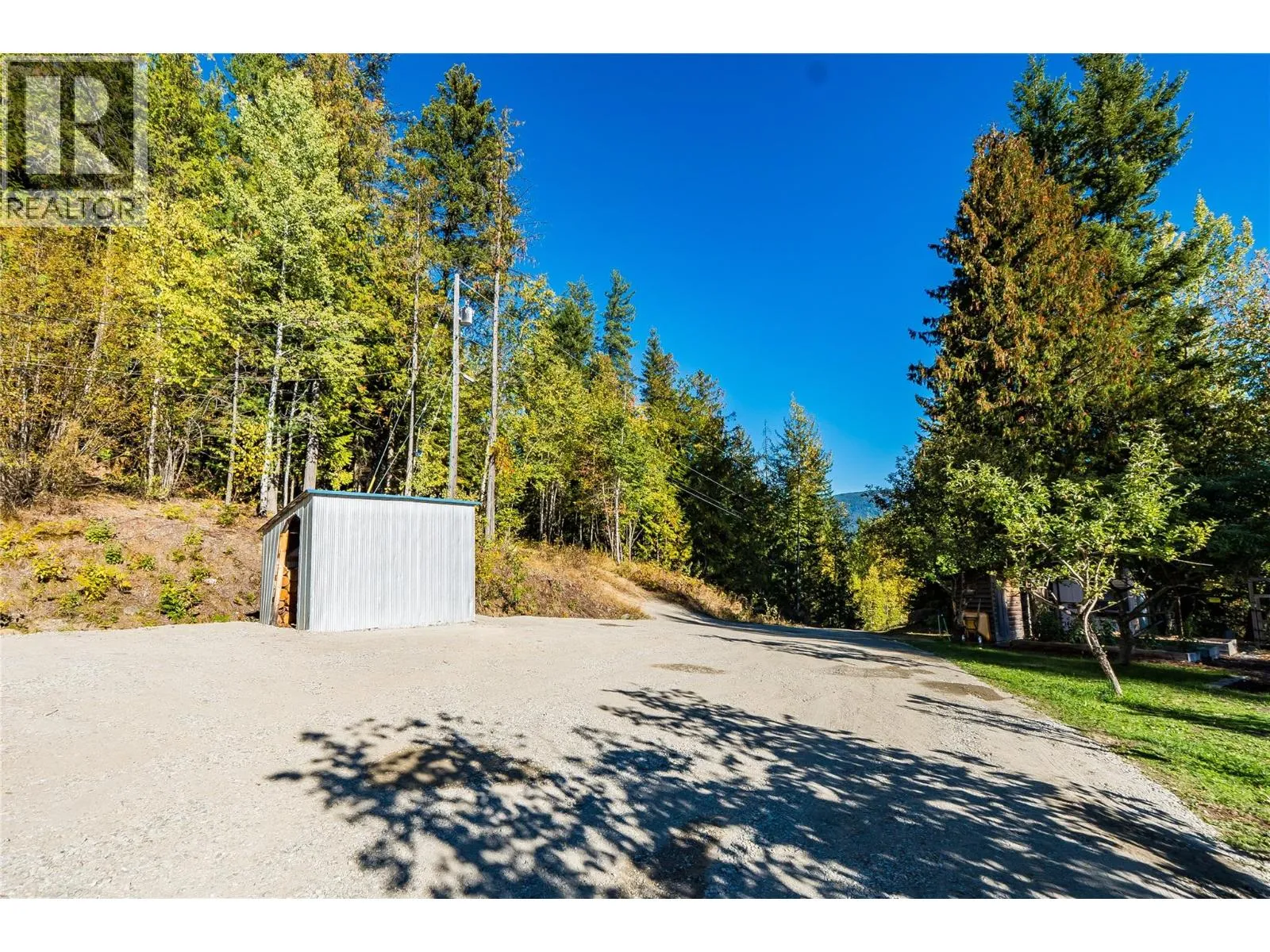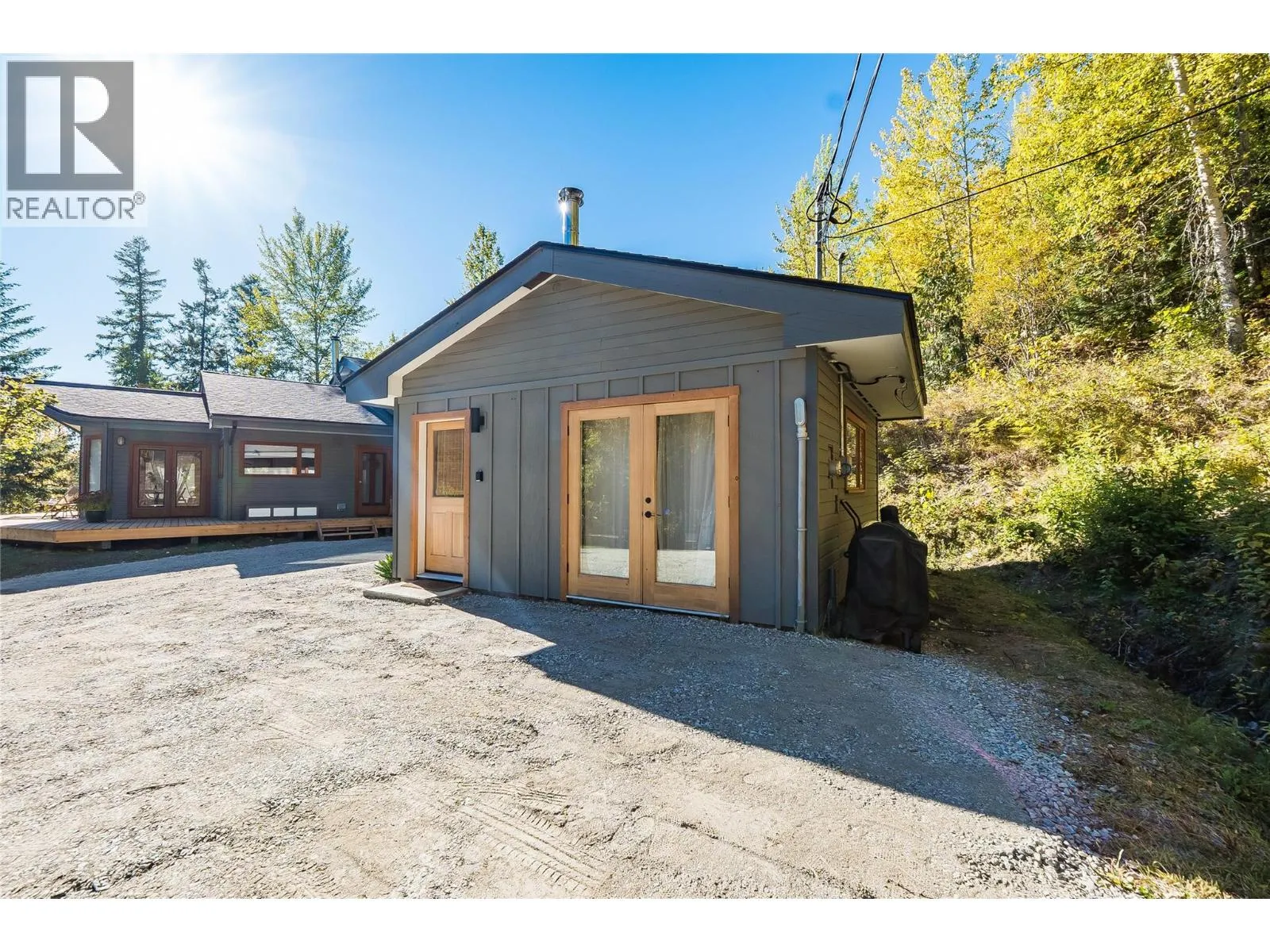 This captivating 3-bedroom, 2-bathroom contemporary home invites you into a warm, modern retreat on 9.75 private acres. Just 15 minutes from Nelson, BC, this sanctuary offers unparalleled privacy, year-round sunshine, breathtaking views, and the soothing murmur of Falls Creek in the distanceâperfect for those craving tranquility, space for gardening, or peaceful walks. Step inside to a cozy, energy-efficient haven with an open-concept design that radiates warmth. Soaring high ceilings and abundant windows bathe the space in natural light, seamlessly blending the stunning surroundings with your everyday life. The thoughtfully designed kitchen is a chefâs delight open to the bright dining and living areas while two luxurious bathrooms feature deep cast-iron tubs for ultimate relaxation. Recent updates elevate the homeâs charm, including a wraparound deck for easy outdoor living and a brand-new roof. Beyond the main house, discover a newly renovated 18x25 guesthouse with modern finishes, ideal for visitors or a private retreat. Additional treasures include a cedar wood-fired sauna, a 12x18 treehouse/studio complete with a kitchenette, sink, shower, and sleeping loft. A thriving garden in the front yard with a state-of-the-art chicken coop. This property blends modern updates with soulful warmth, making it a must-see for those seeking a unique, nature-embraced lifestyle. With subdivision potential, this property must be seen to appreciate all the possibilities. (id:27476)