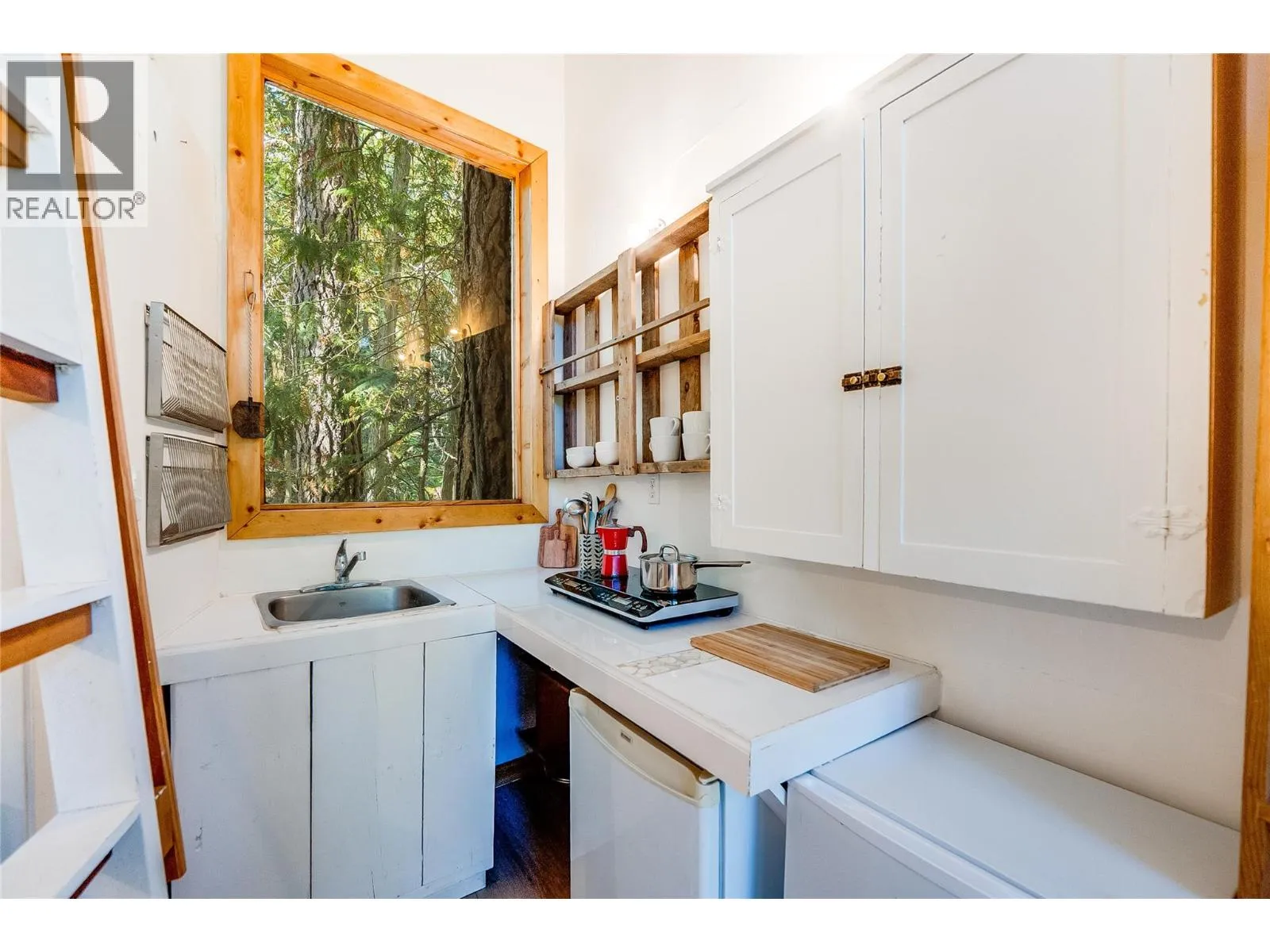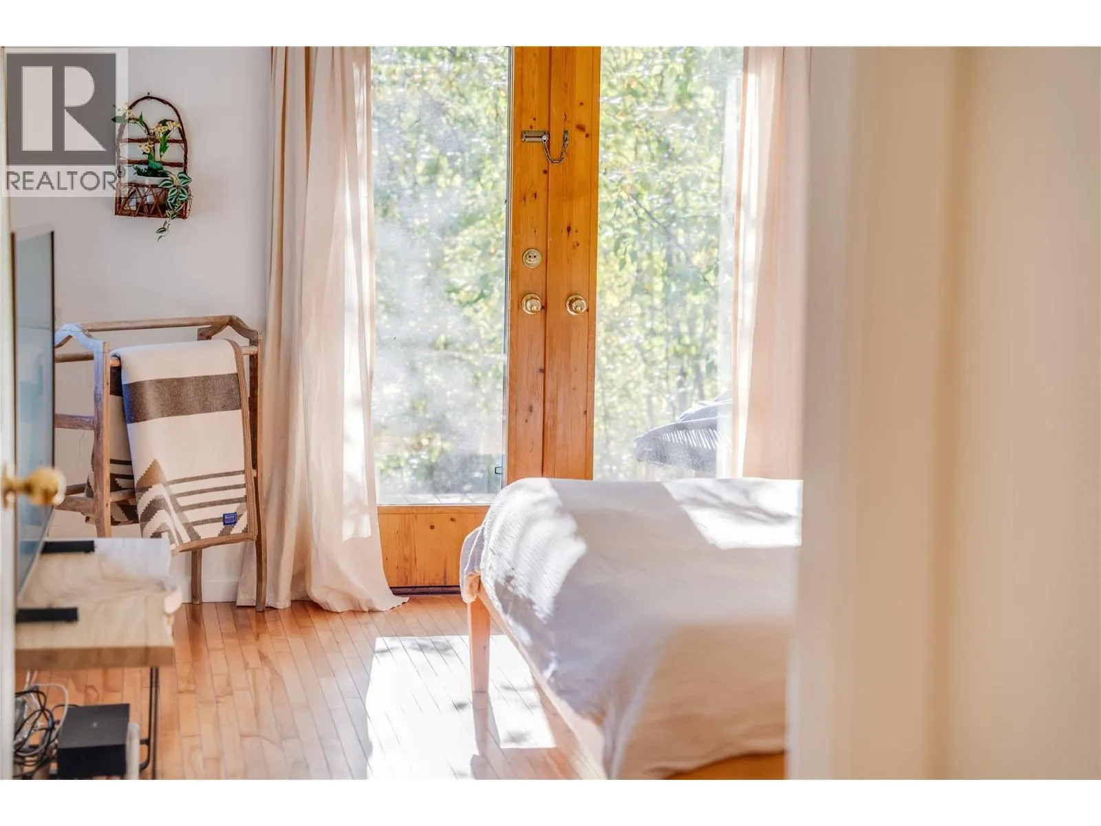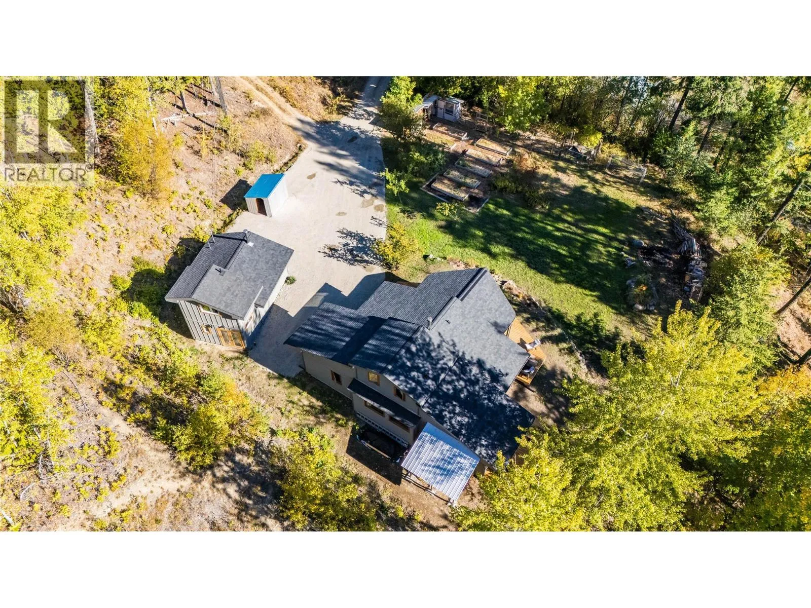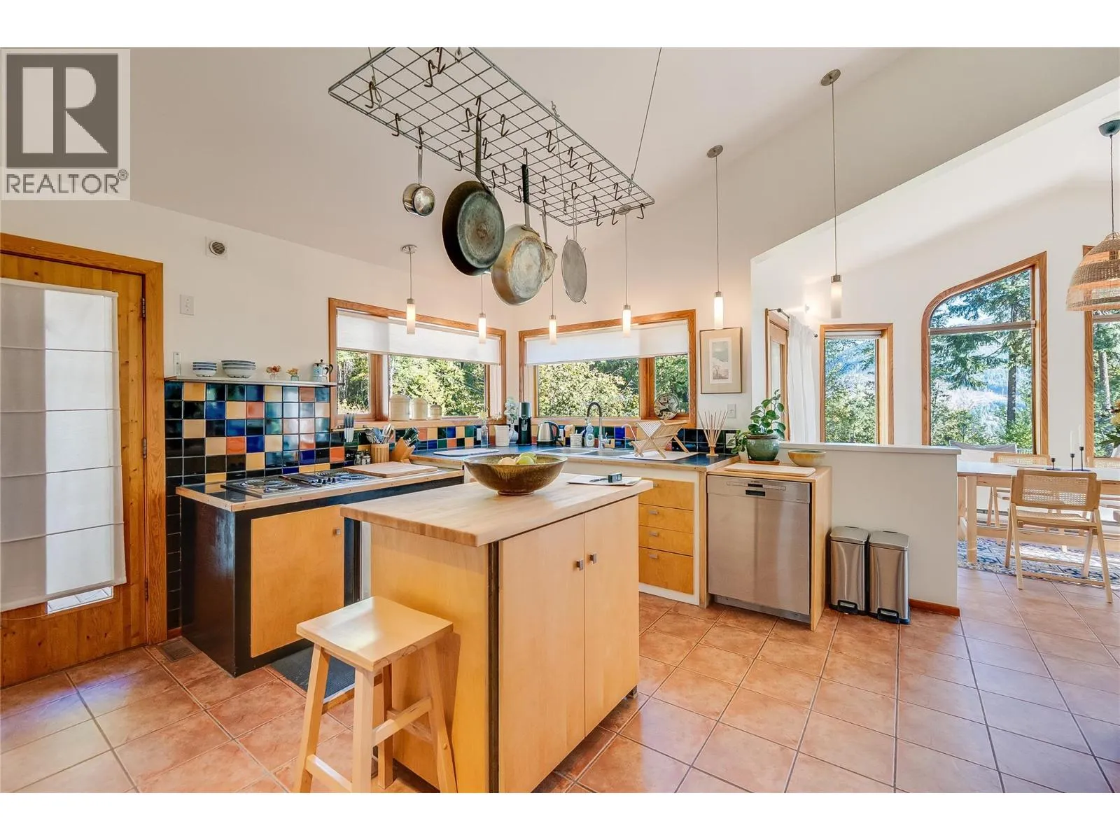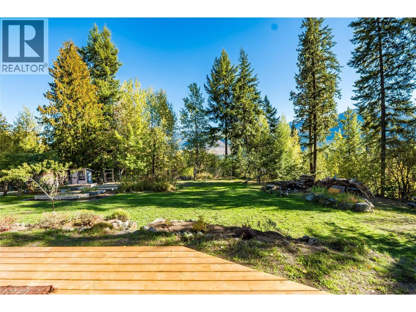 This captivating 3-bedroom, 2-bathroom contemporary home invites you into a warm, modern retreat on 9.75 private acres. Just 15 minutes from Nelson, BC, this sanctuary offers unparalleled privacy, year-round sunshine, breathtaking views, and the soothing murmur of Falls Creek in the distanceâperfect for those craving tranquility, space for gardening, or peaceful walks. Step inside to a cozy, energy-efficient haven with an open-concept design that radiates warmth. Soaring high ceilings and abundant windows bathe the space in natural light, seamlessly blending the stunning surroundings with your everyday life. The thoughtfully designed kitchen is a chefâs delight open to the bright dining and living areas while two luxurious bathrooms feature deep cast-iron tubs for ultimate relaxation. Recent updates elevate the homeâs charm, including a wraparound deck for easy outdoor living and a brand-new roof. Beyond the main house, discover a newly renovated 18x25 guesthouse with modern finishes, ideal for visitors or a private retreat. Additional treasures include a cedar wood-fired sauna, a 12x18 treehouse/studio complete with a kitchenette, sink, shower, and sleeping loft. A thriving garden in the front yard with a state-of-the-art chicken coop. This property blends modern updates with soulful warmth, making it a must-see for those seeking a unique, nature-embraced lifestyle. With subdivision potential, this property must be seen to appreciate all the possibilities. (id:27476)