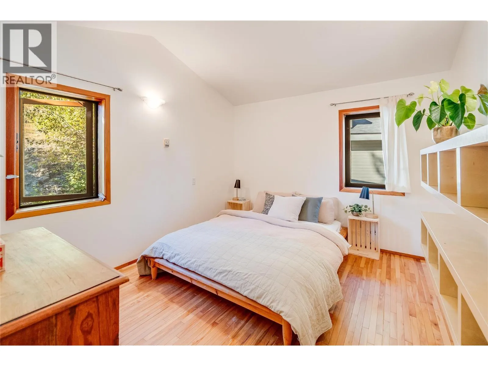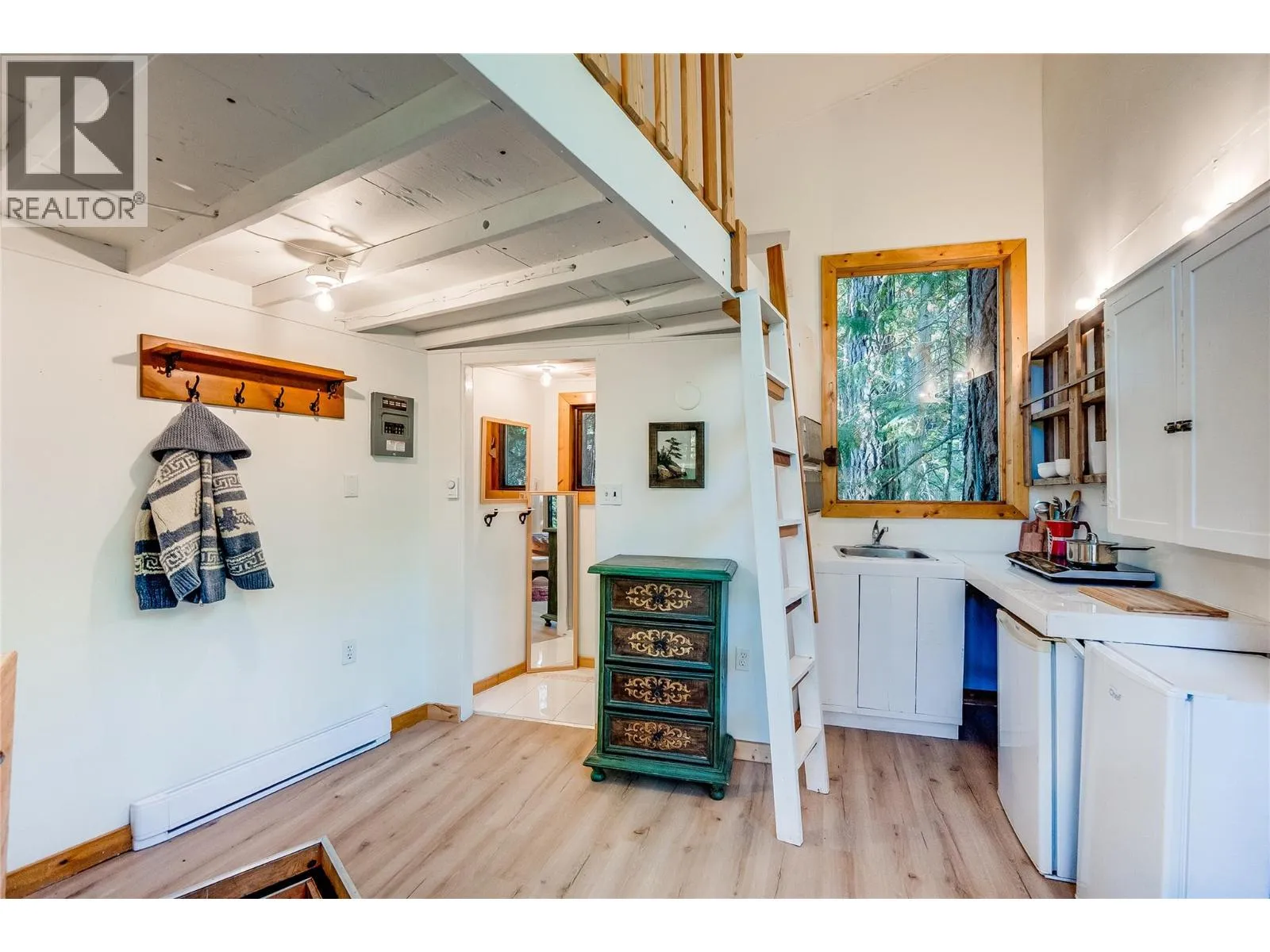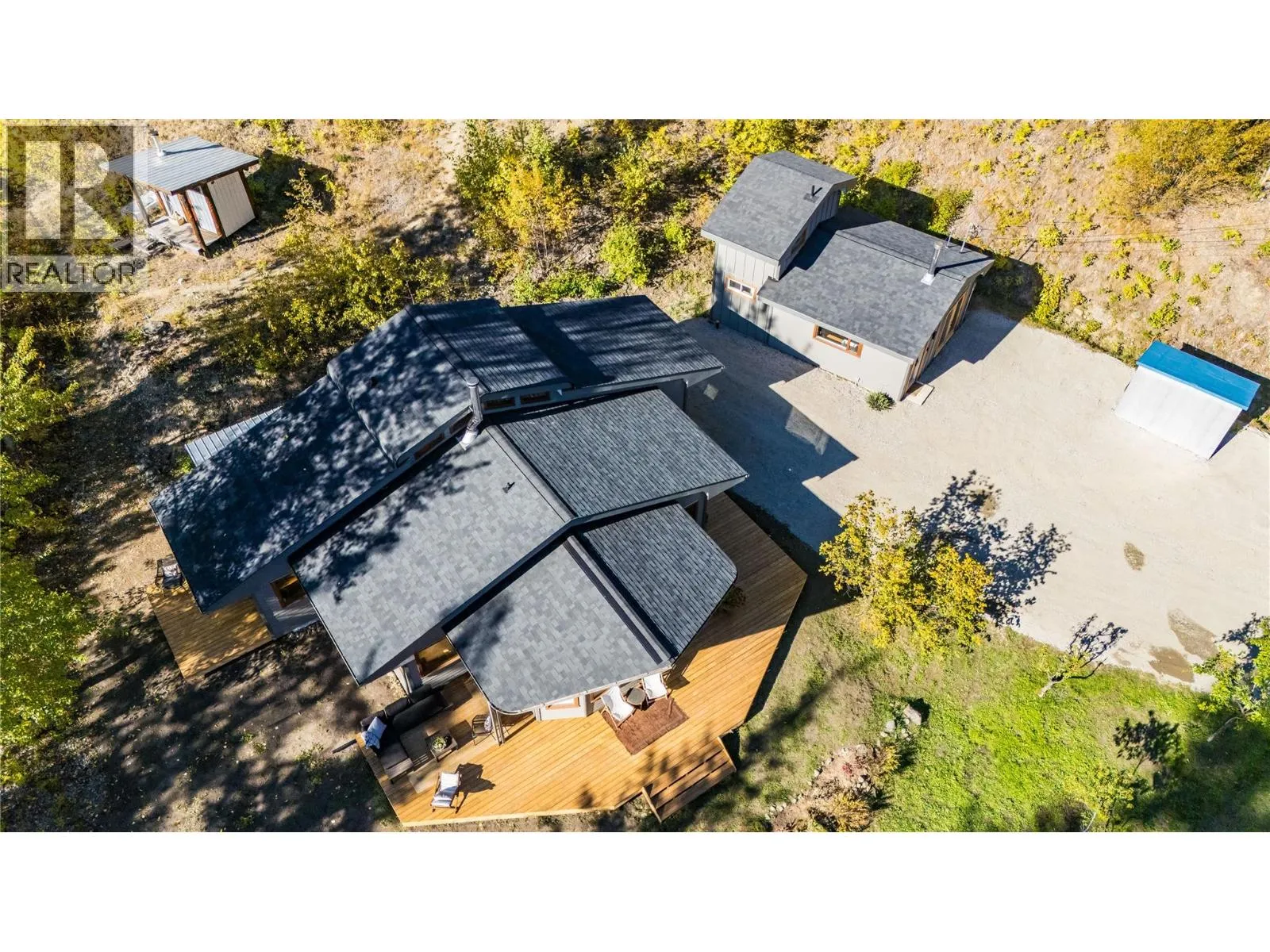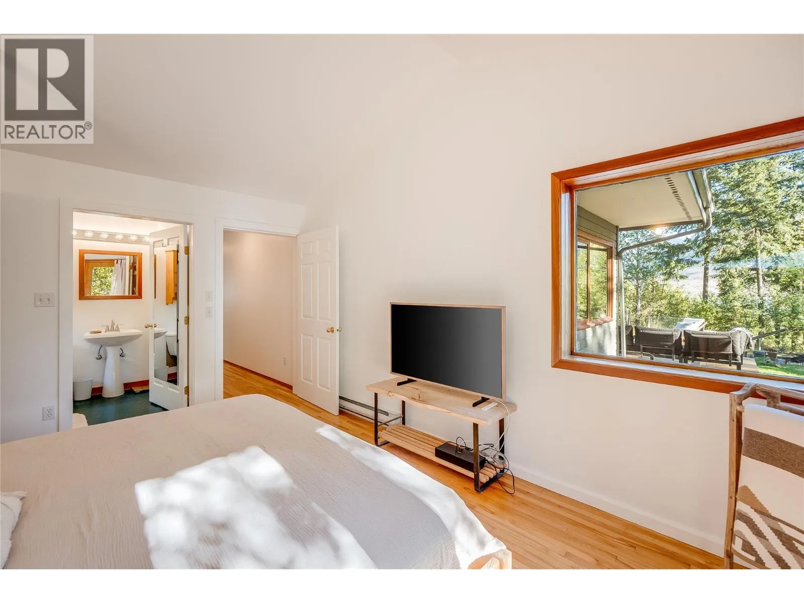 This captivating 3-bedroom, 2-bathroom contemporary home invites you into a warm, modern retreat on 9.75 private acres. Just 15 minutes from Nelson, BC, this sanctuary offers unparalleled privacy, year-round sunshine, breathtaking views, and the soothing murmur of Falls Creek in the distanceâperfect for those craving tranquility, space for gardening, or peaceful walks. Step inside to a cozy, energy-efficient haven with an open-concept design that radiates warmth. Soaring high ceilings and abundant windows bathe the space in natural light, seamlessly blending the stunning surroundings with your everyday life. The thoughtfully designed kitchen is a chefâs delight open to the bright dining and living areas while two luxurious bathrooms feature deep cast-iron tubs for ultimate relaxation. Recent updates elevate the homeâs charm, including a wraparound deck for easy outdoor living and a brand-new roof. Beyond the main house, discover a newly renovated 18x25 guesthouse with modern finishes, ideal for visitors or a private retreat. Additional treasures include a cedar wood-fired sauna, a 12x18 treehouse/studio complete with a kitchenette, sink, shower, and sleeping loft. A thriving garden in the front yard with a state-of-the-art chicken coop. This property blends modern updates with soulful warmth, making it a must-see for those seeking a unique, nature-embraced lifestyle. With subdivision potential, this property must be seen to appreciate all the possibilities. (id:27476)