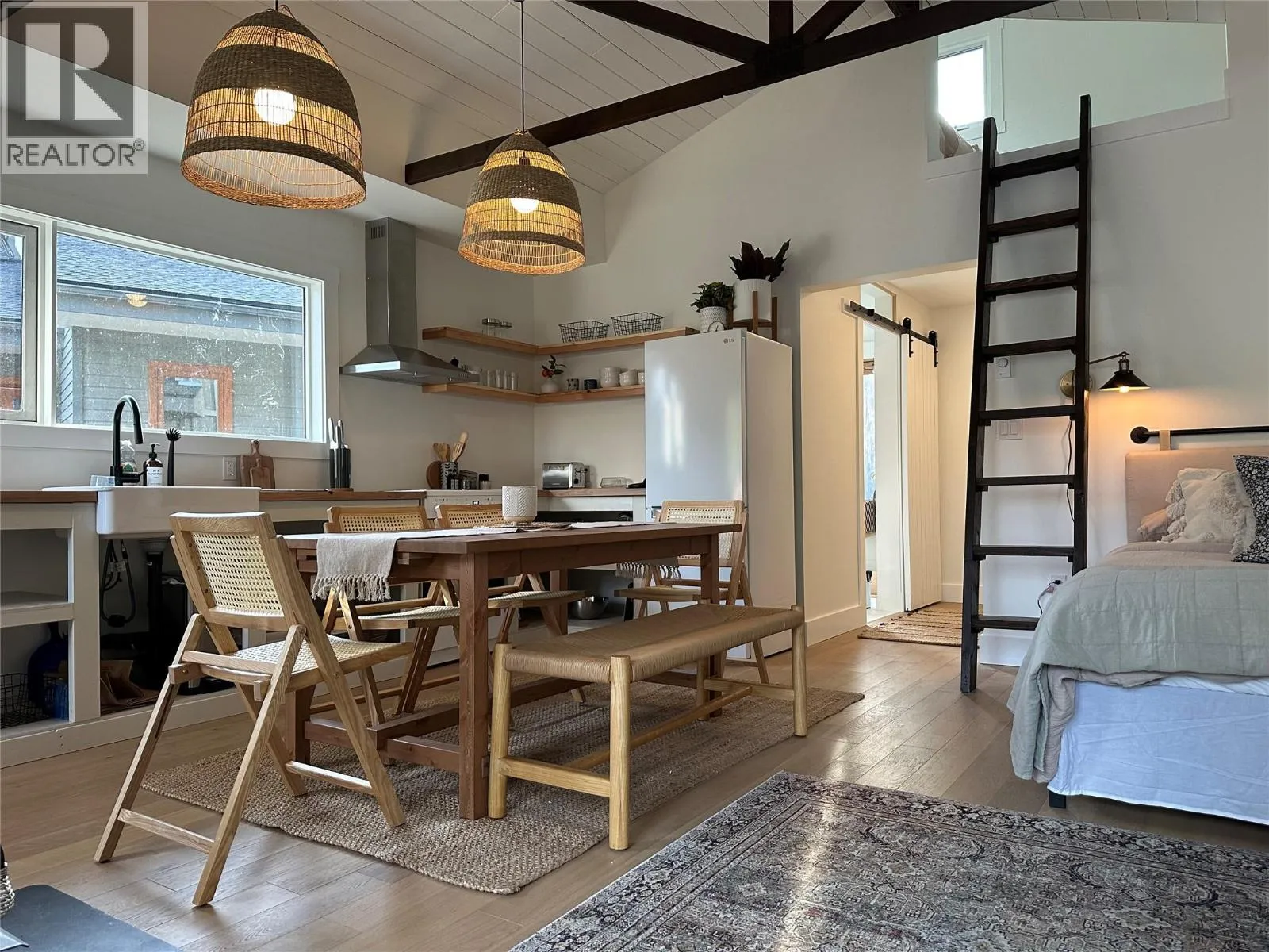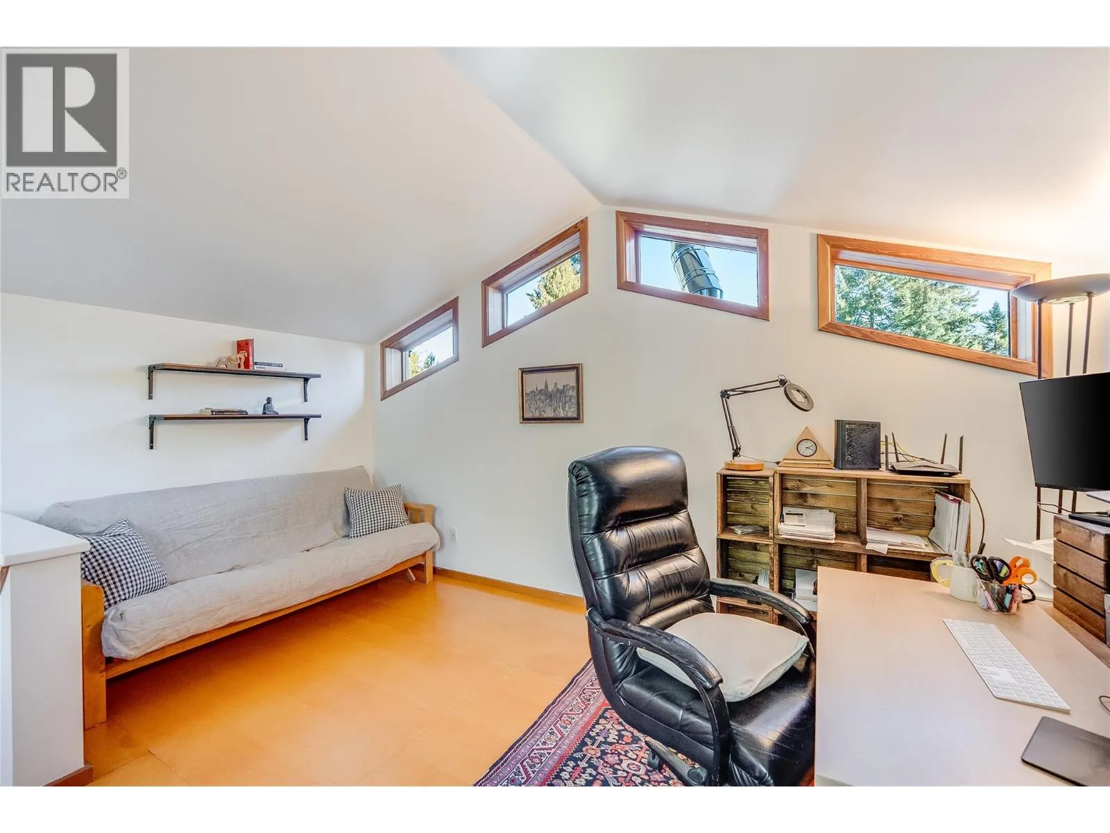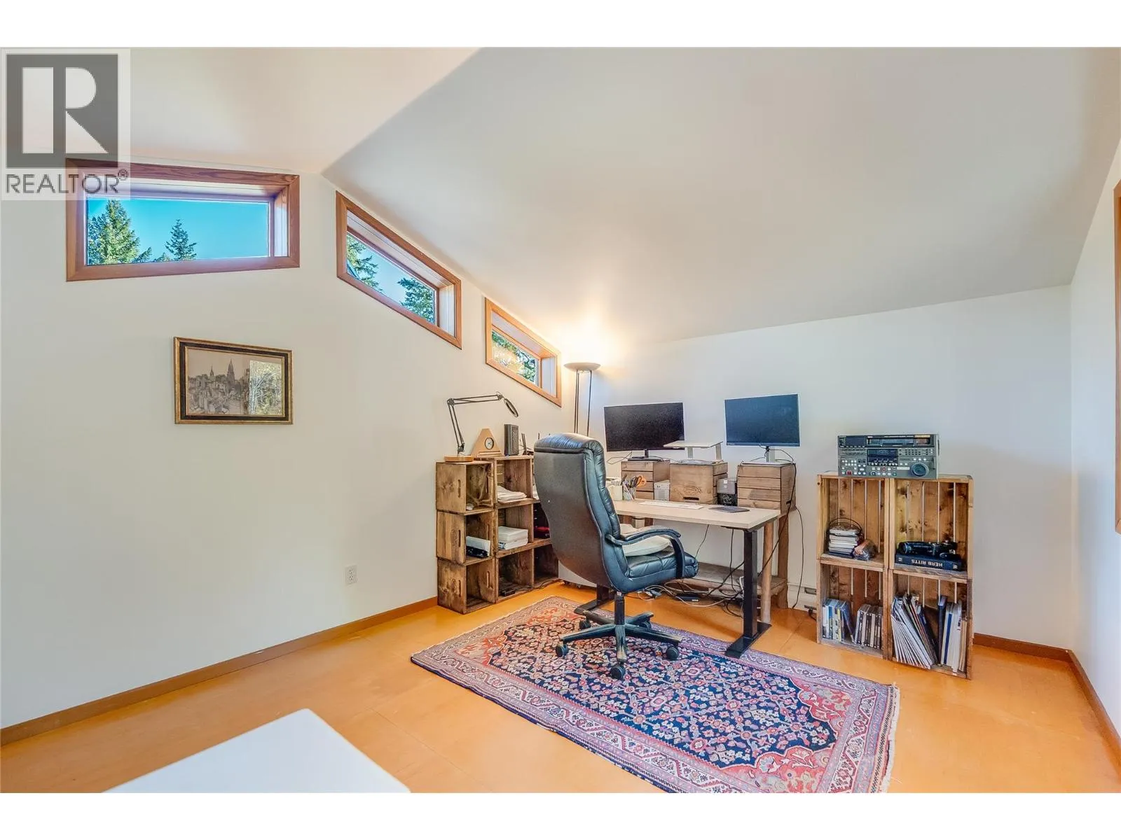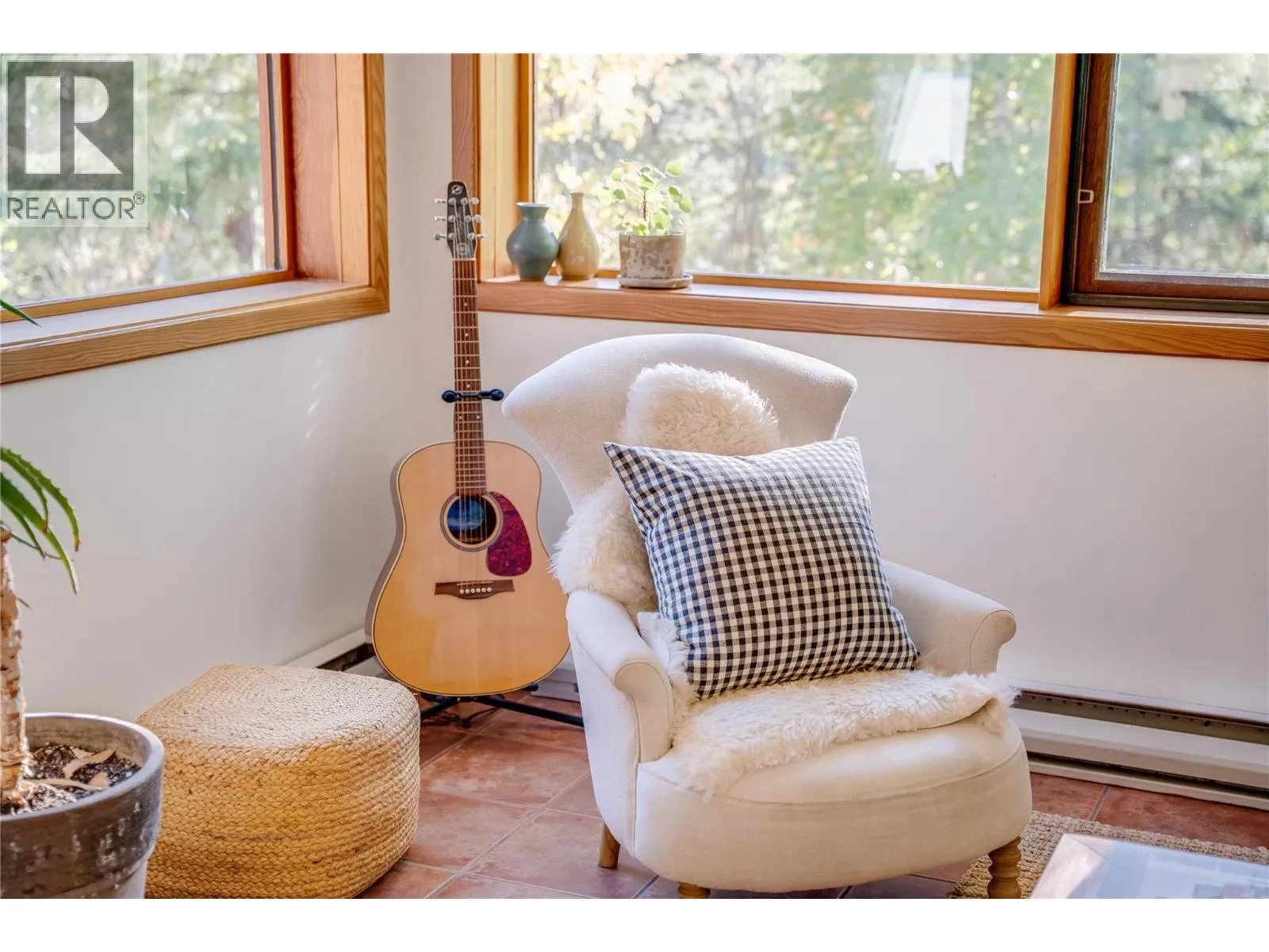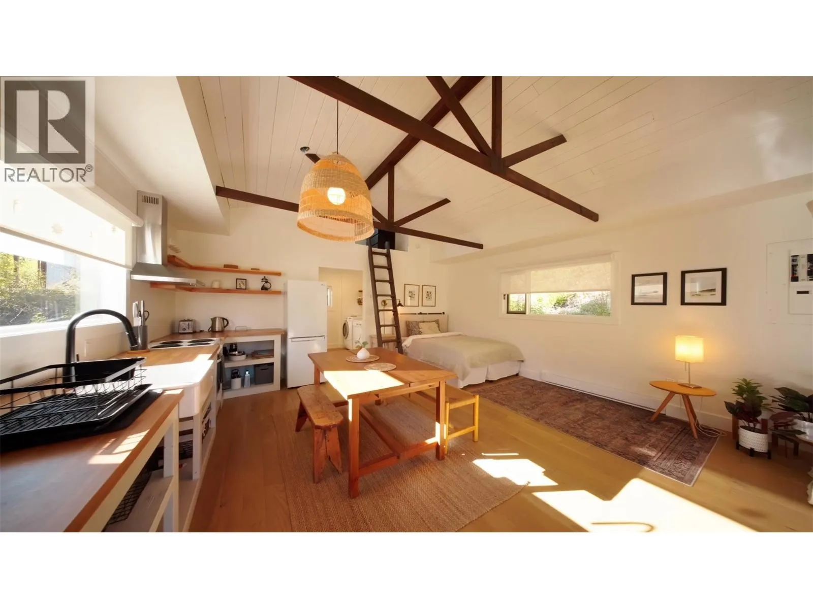 This captivating 3-bedroom, 2-bathroom contemporary home invites you into a warm, modern retreat on 9.75 private acres. Just 15 minutes from Nelson, BC, this sanctuary offers unparalleled privacy, year-round sunshine, breathtaking views, and the soothing murmur of Falls Creek in the distanceâperfect for those craving tranquility, space for gardening, or peaceful walks. Step inside to a cozy, energy-efficient haven with an open-concept design that radiates warmth. Soaring high ceilings and abundant windows bathe the space in natural light, seamlessly blending the stunning surroundings with your everyday life. The thoughtfully designed kitchen is a chefâs delight open to the bright dining and living areas while two luxurious bathrooms feature deep cast-iron tubs for ultimate relaxation. Recent updates elevate the homeâs charm, including a wraparound deck for easy outdoor living and a brand-new roof. Beyond the main house, discover a newly renovated 18x25 guesthouse with modern finishes, ideal for visitors or a private retreat. Additional treasures include a cedar wood-fired sauna, a 12x18 treehouse/studio complete with a kitchenette, sink, shower, and sleeping loft. A thriving garden in the front yard with a state-of-the-art chicken coop. This property blends modern updates with soulful warmth, making it a must-see for those seeking a unique, nature-embraced lifestyle. With subdivision potential, this property must be seen to appreciate all the possibilities. (id:27476)