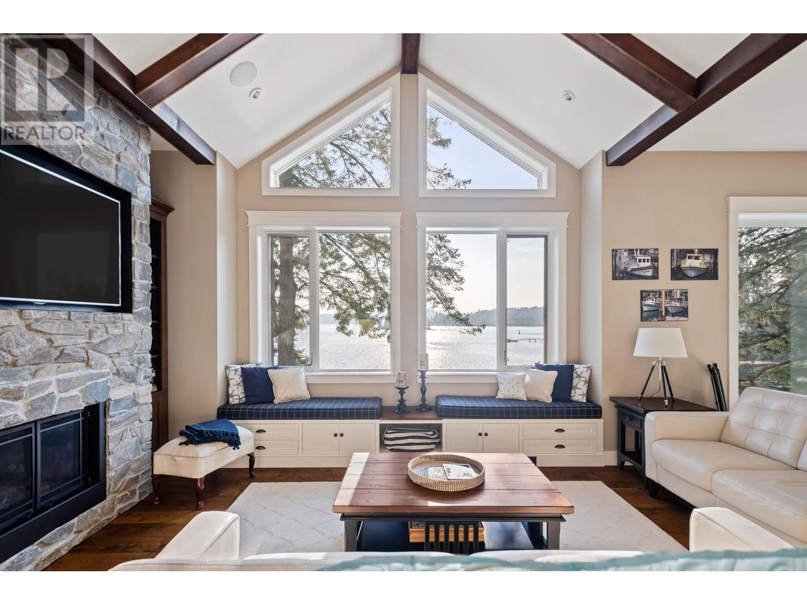EXCLUSIVE WATERFRONT RESIDENCE w/sunset views & private dock. Beautiful 5286 SF craftsman home w/the charm & details that will endure the test of time. Custom layout provides privacy while offering sunny southerly panoramic water views from every room. Lovely front garden entry opens to an immediate ocean view that will mesmerize your guests on every visit. High vaulted ceilings, bay windows, stone fireplace & entertainers dream kitchen that flows to your outdoor spaces, 40´ infinity pool, hot tub & private slip for your water craft pursuits. A luxurious primary bedrm will delight the sophisticated couple w/spacious ensuite & balcony. Quality finishes, premium appl, AC, elevator, oak HW, travertine marble, sound system, rec room & wheelchair accessible. 15 min to P Moody Centre/45 to D/T Van. (id:27476)