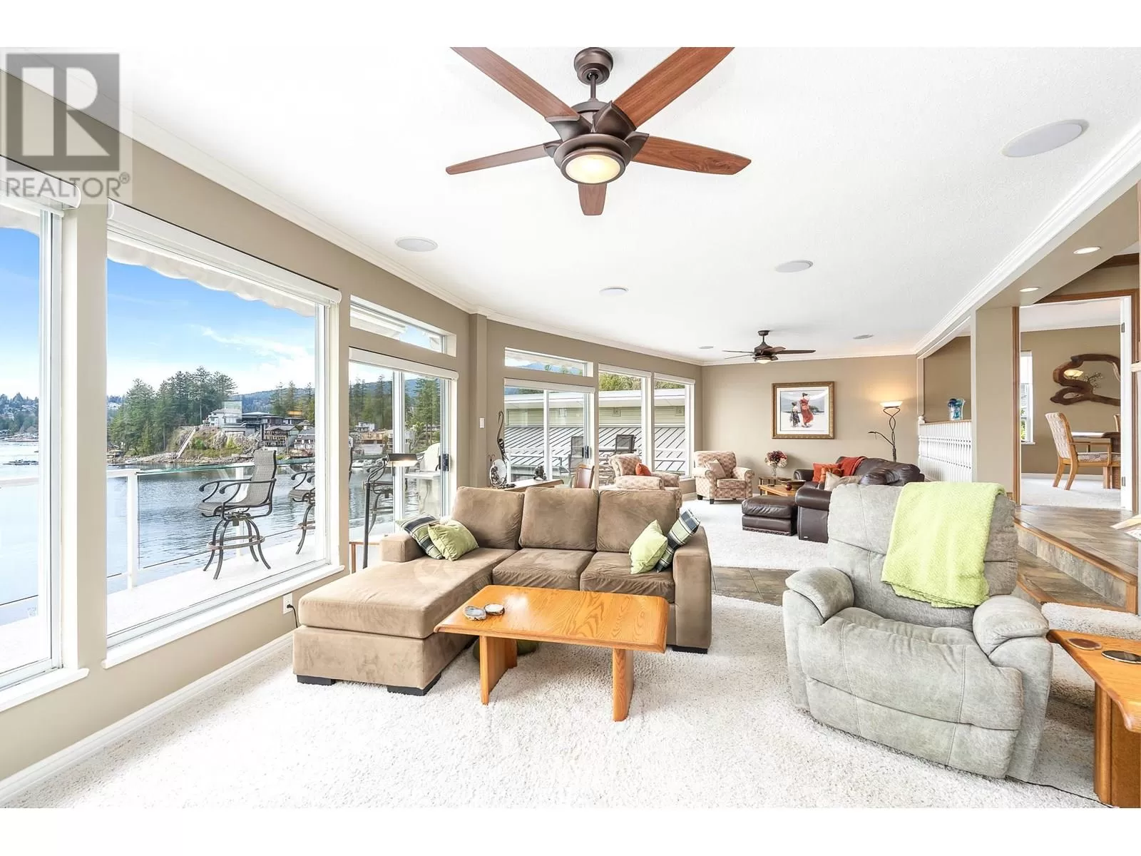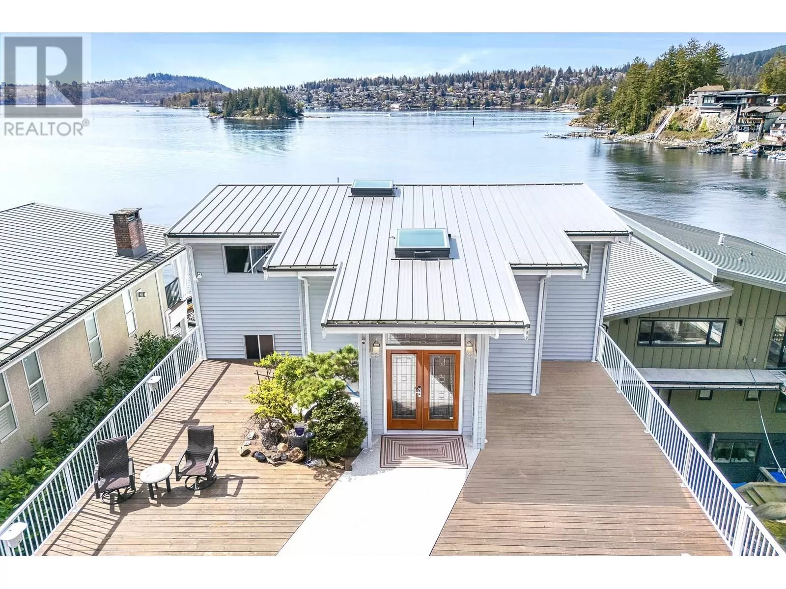 Waterfront Estate in seaside enclave of Belcarra. 3495 SF residence on 9489 SF lot offers luxury, privacy & coastal serenity. Southwest views, afternoon light & sunset brilliance from all levels. Oversized, private dock w/power, water & lighting. Covered boat lift for vessels up to 30ft, deep-water moorage for docking up to 40ft. Multiple outdoor tiers frame every sunset from cabana lounge & fire-pit deck to hot tub w/outdoor TV & huge main deck enhancing oceanfront living. Inside, luxury & comfort await. Solid cherry cabinetry, Silestone counters & Grohe fixtures elevate kitchen & bathrms. Radiant heated flrs, high efficiency forced air natural gas furnace & central AC for year-round comfort, indoor fireplaces add warmth & ambiance. A lifestyle defined by nature, elegance & tranquility. (id:27476)