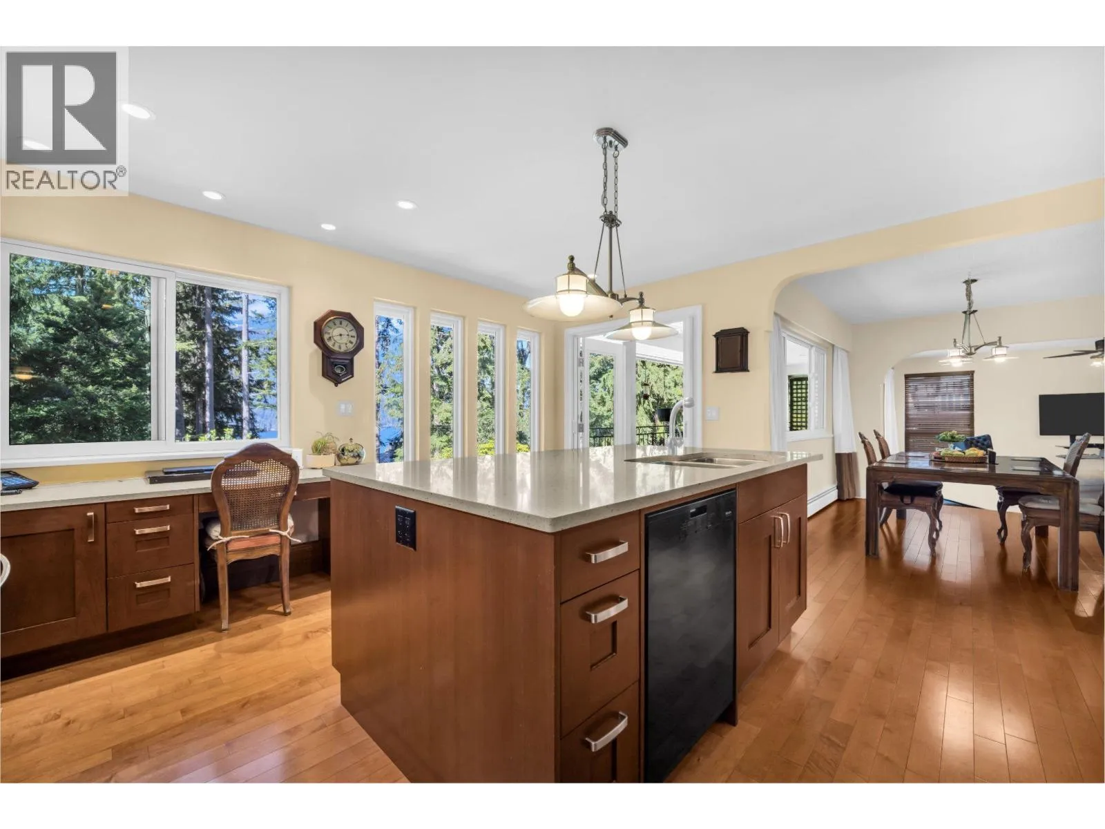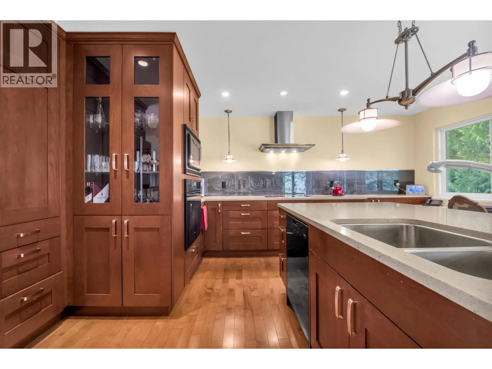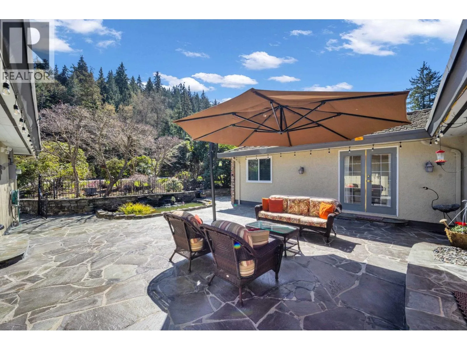 Tucked away on a flat, beautifully manicured 15,800 sq.ft. lot on the sunny side of a quiet Belcarra street, this thoughtfully updated 4 bed, 3 bath home offers a rare blend of lifestyle, function, and long-term value. A private courtyard sanctuary finished in Pennsylvania bluestone features a soothing waterfall with goldfish, creating a peaceful retreat that seamlessly blends indoor and outdoor living. The home flows to a sheltered balcony and 250 sq.ft. lower deck with serene garden outlooks and ocean views, plus potential membership in a nearby group dock. The main level offers a renovated kitchen with Miele appliances, a large Silestone island, and a stunning gas rock f/p, along with updated bathrooms. The walkout lower level with separate entry is ideal for a suite or Airbnb. Outside, manicured gardens and a swim spa complete the resort-like feel. Additional features include a 22KW generator, high-efficiency boiler, EV-ready outlet, irrigation system, workshop RV & ample amounts of parking. (id:27476)