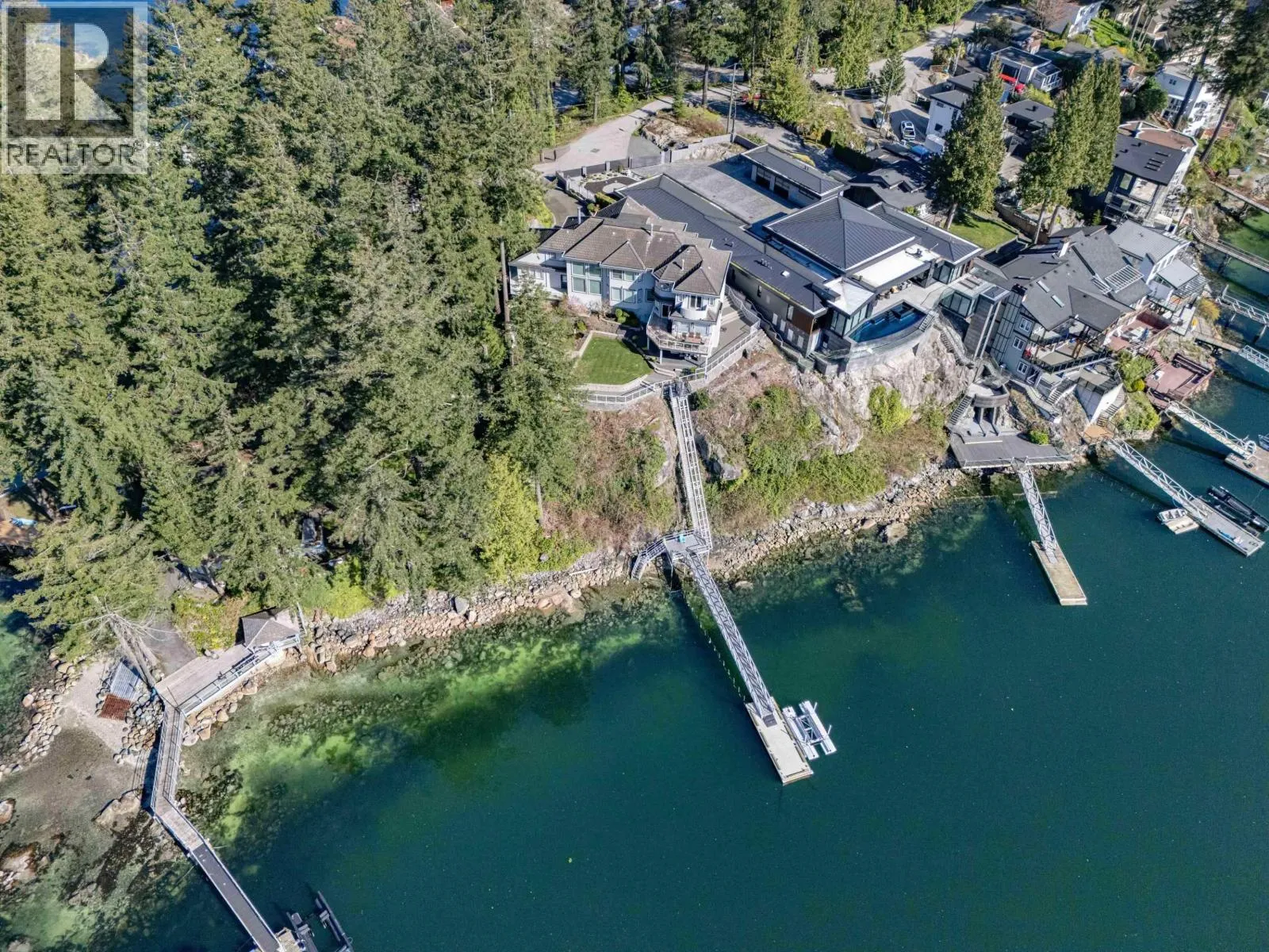 Spectacular gated waterfront residence in Belcarra offering unobstructed panoramic views, exceptional privacy, and resort style living. Situated on a 17,500 sq.ft. lot with approximately 139 ft of shoreline, this 5,270 sq.ft. custom-built home is perched above the pristine waters of Belcarra Bay, capturing breathtaking views from every room. Designed to maximize its setting, the home features soaring ceilings, expansive windows, and a bright open-concept layout. The main level offers a grand foyer with a dramatic staircase, spacious living and dining areas, and an entertainer´s kitchen with a large centre island and seamless access to a stunning view deck. Upstairs, the primary suite is a private retreat with gas fireplace, walk-in closet, spa-inspired ensuite, and a view balcony. The walkout lower level offers flexibility for extended family or Airbnb potential. A new tram provides quick water access, with a new commercial grade concrete dock, deep moorage, and boat lift completing this exceptional offering. (id:27476)