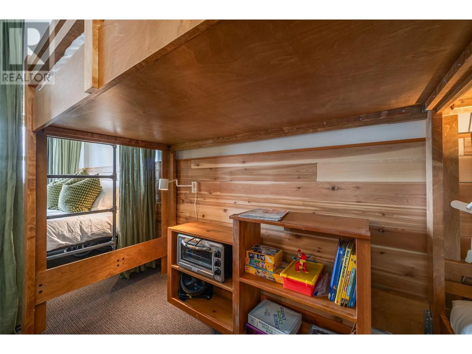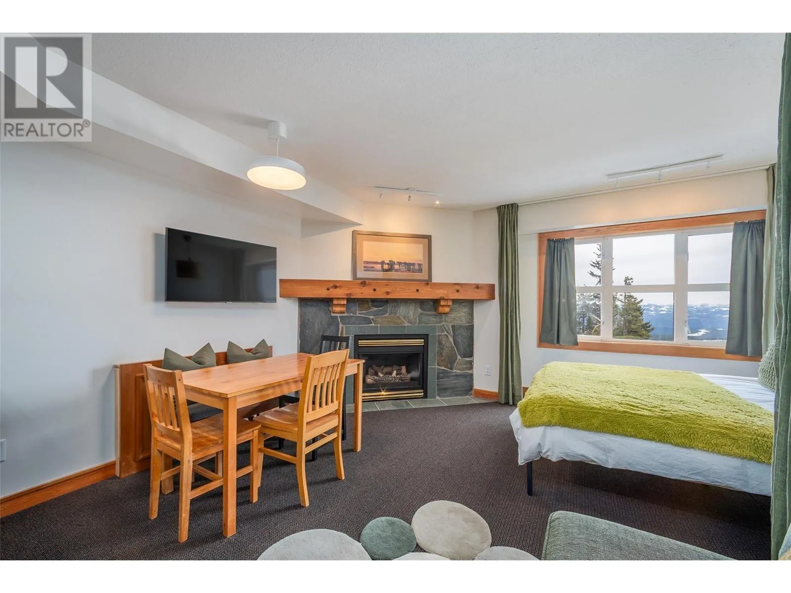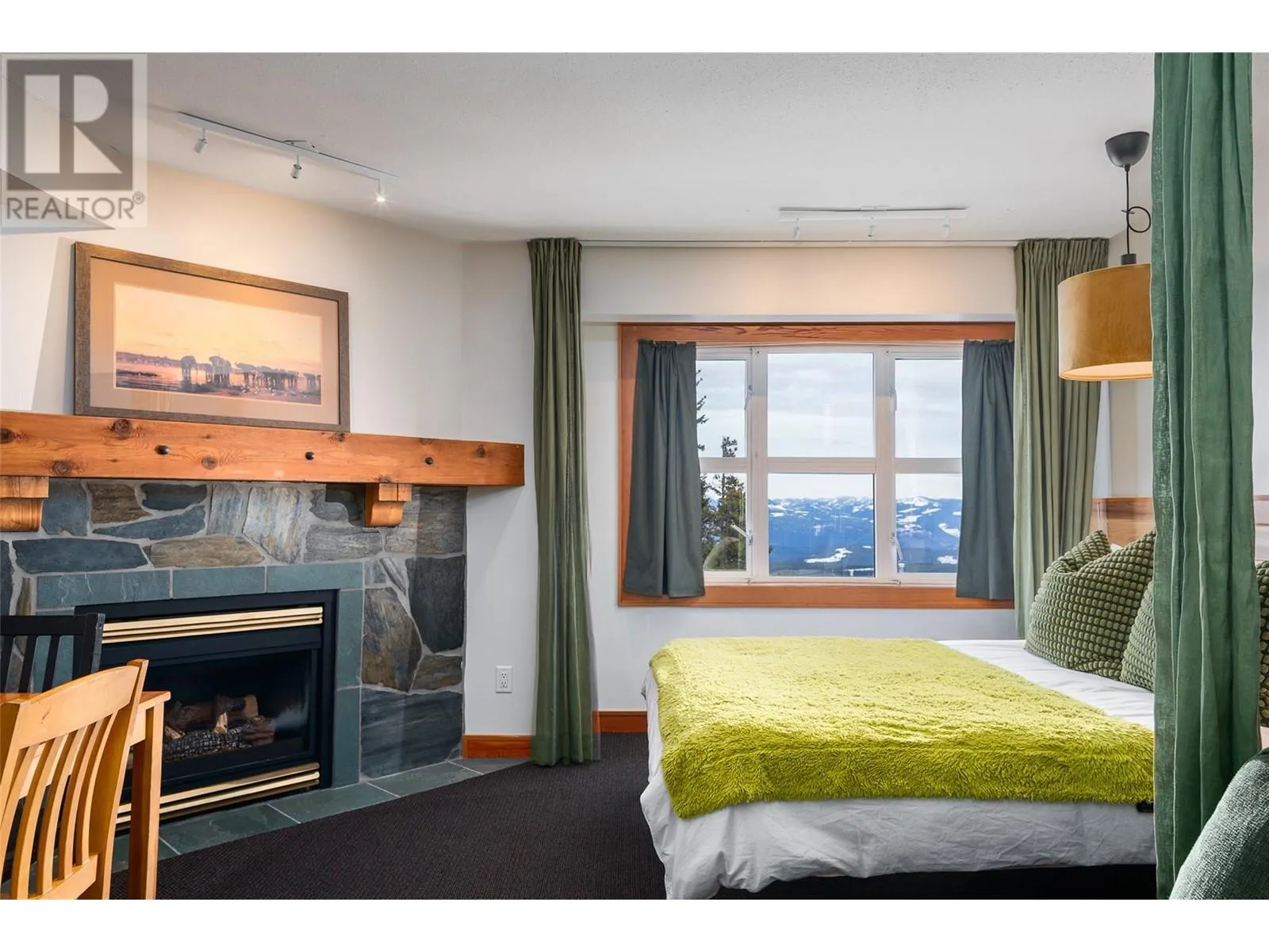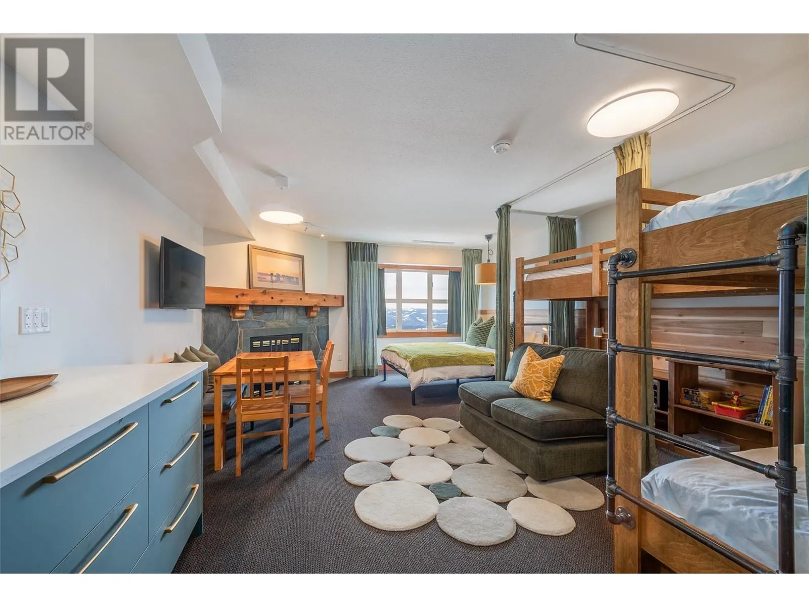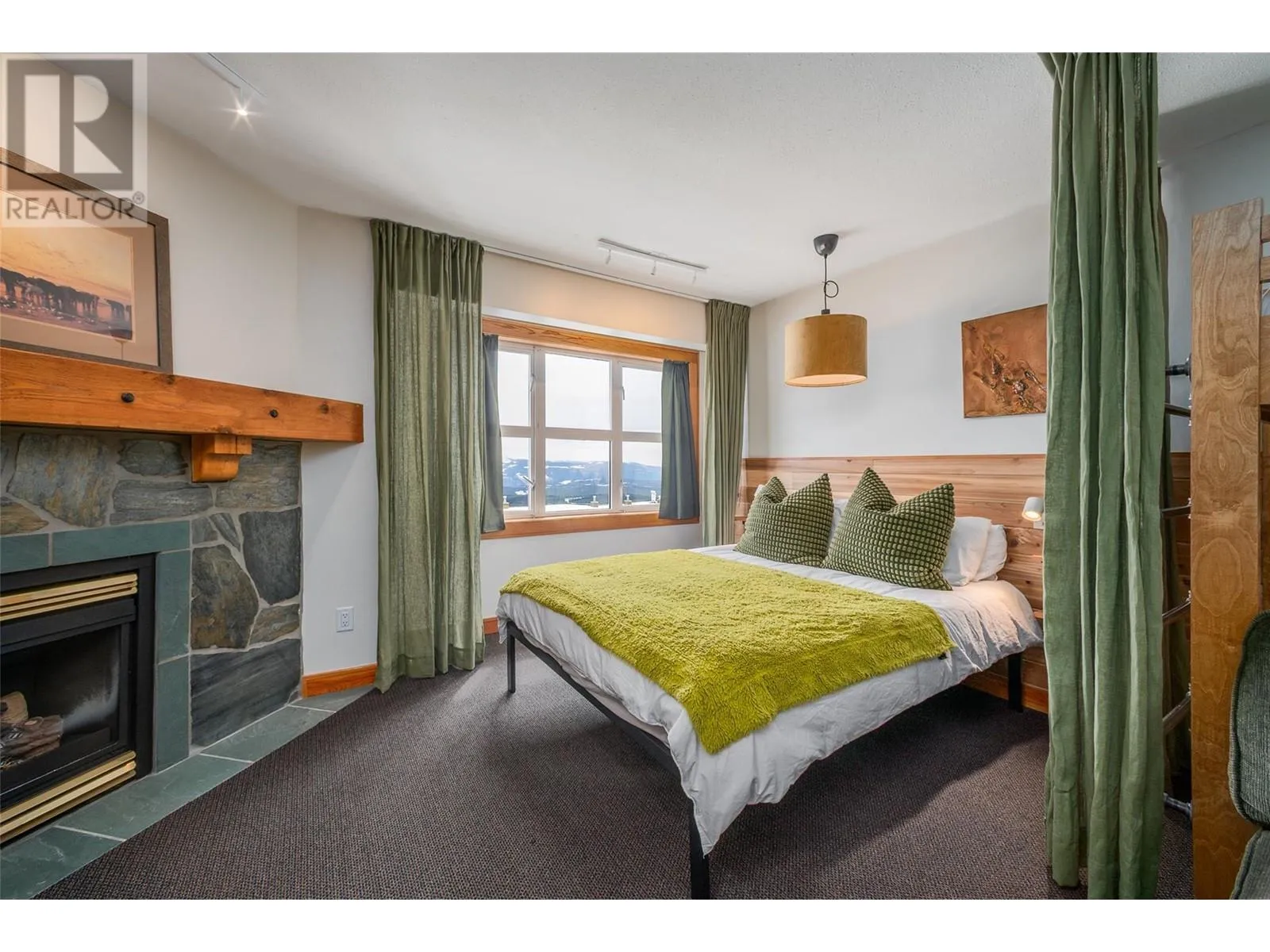 WELCOME TO THE MOST UNIQUE & CHARMING SUITE ON THE MOUNTAIN! Beautifully Updated Top Floor condo located in the middle of the Village at Big White!!! NO GST !! - This White Crystal Inn - NO GST !! Unit showcases a fresh on-trend decor including; cedar cladding, curtains & window treatments, kitchen cupboards, drawers, countertops & appliances, bedroom furniture, light fixtures and wall mounted TV. Find coat hooks for all & a cozy inviting rock feature fireplace for all round - year round use, as the Big White Community has embraced the off-season outdoors with trails for trekking & terrific mountainside mountain biking. This Fully equipped condo comes with kitchen appliances, furnishings & creative hand-crafted custom bunkbeds to easily sleep 5! THE Very Best location in the Village for access to Big White amenities and comes with use of one Underground Parking stall. A Ski in \ Ski out entrance makes it easy hop on the Bullet Express Chair & Lara's Gondola. The Outdoor Hot Tub & Patio is an enticing way to end the day with post ski recreation while The BullWheel Family Restaurant / Pub is also onsite at the Inn for your added convenience & enjoyment, all of this and more make this place an ideal spot to stay and super easy to invest in with a central reservations system to opt into! (id:27476)