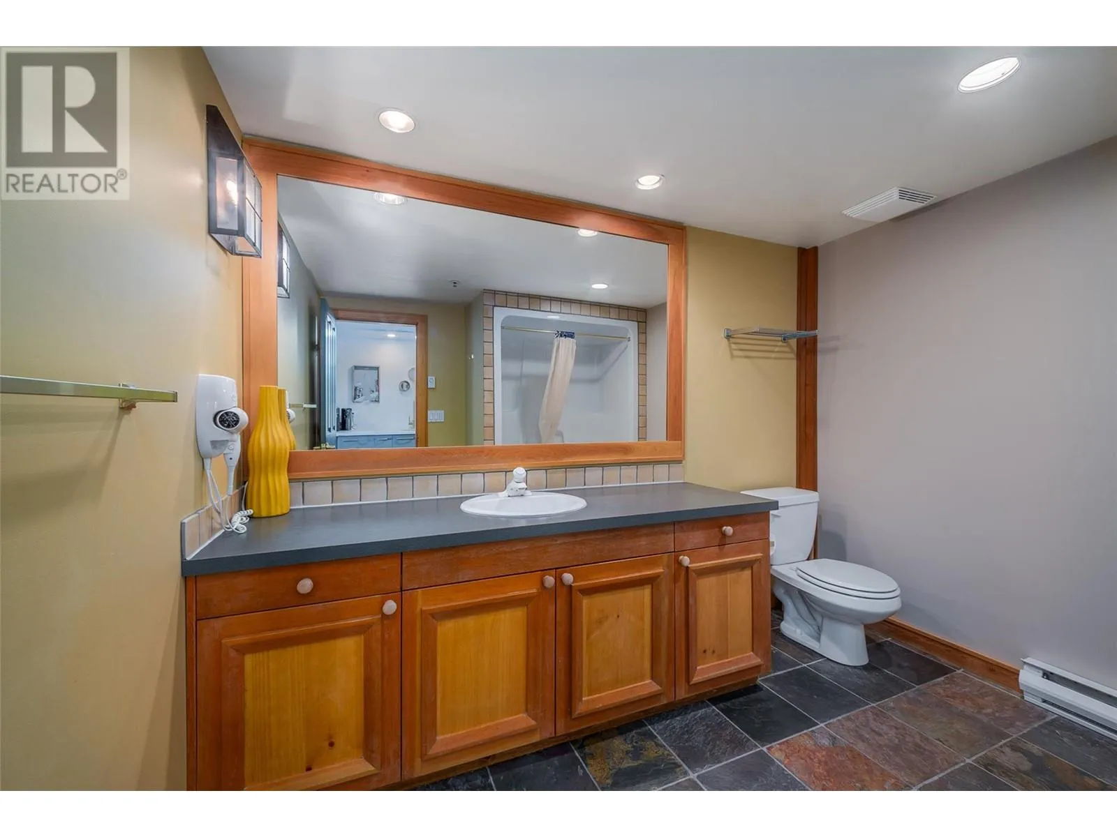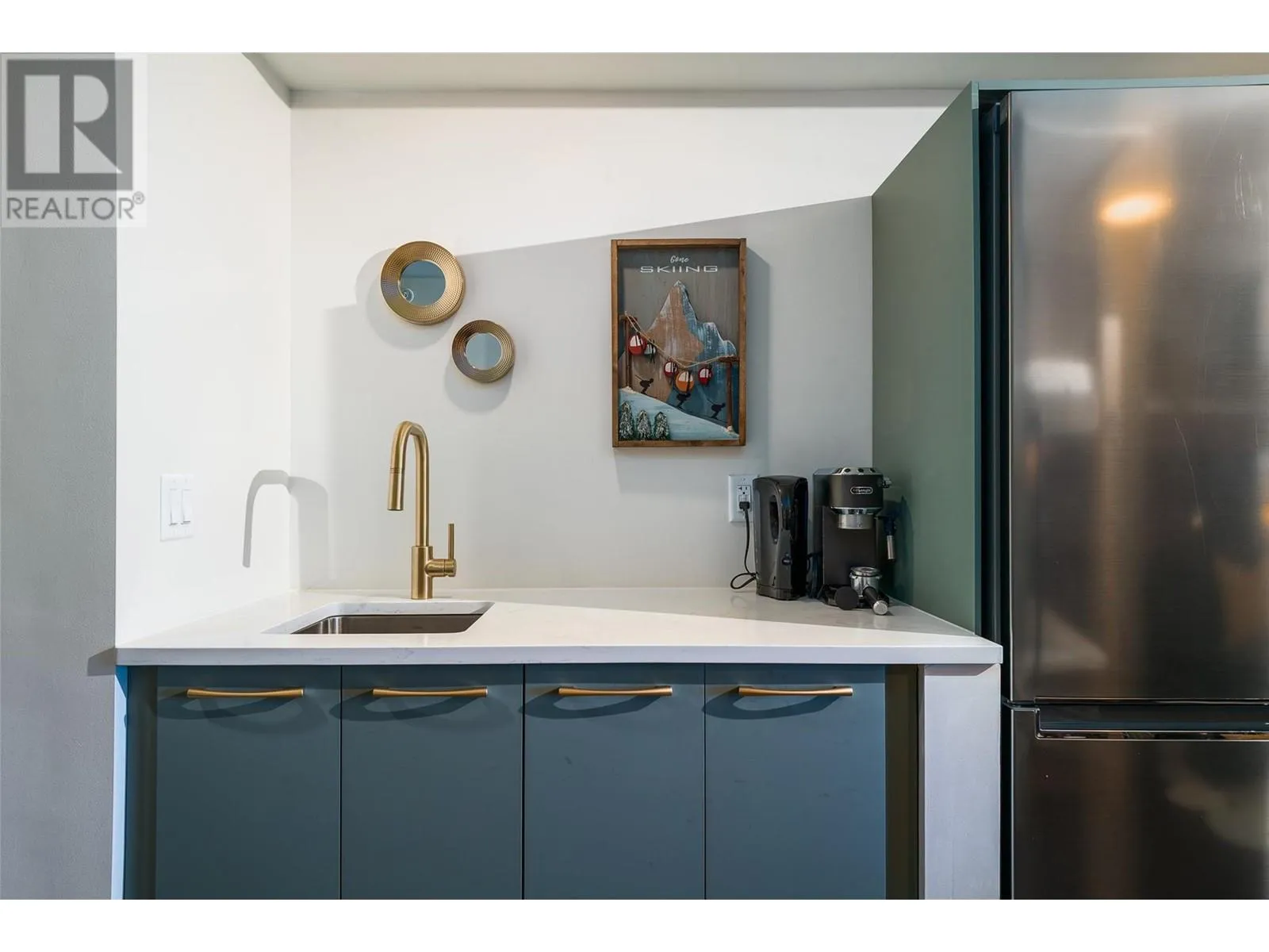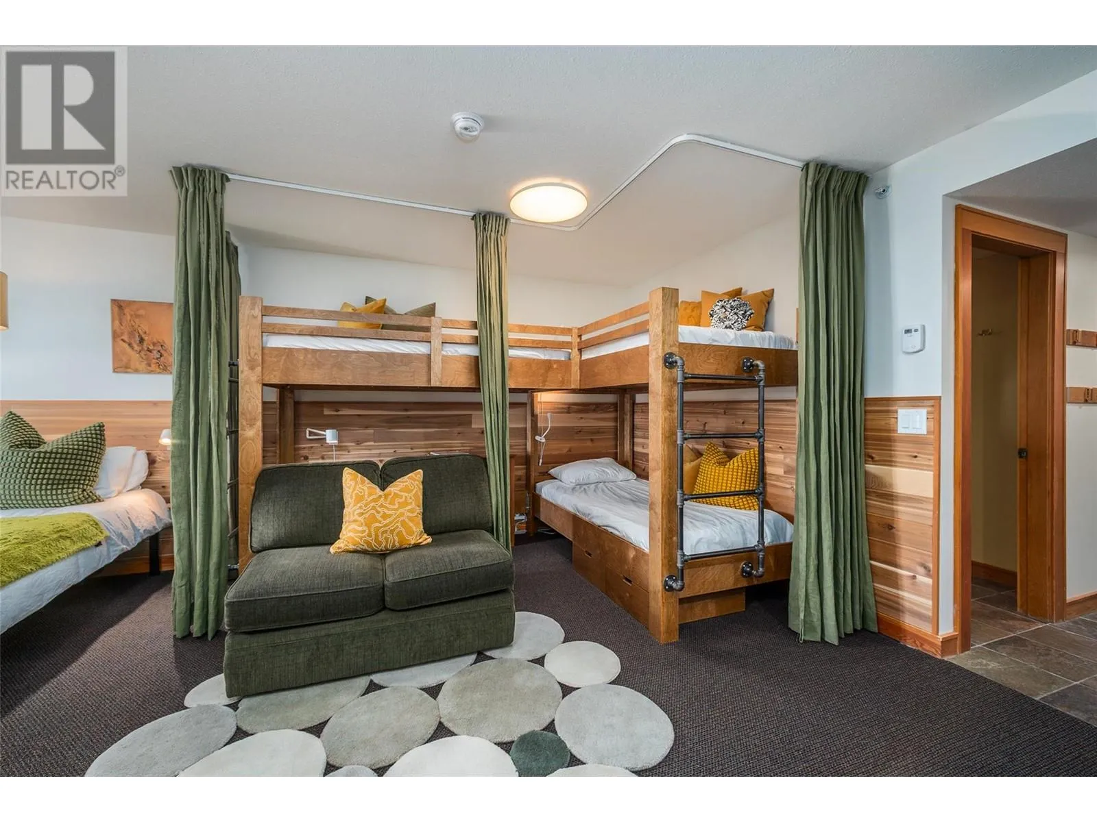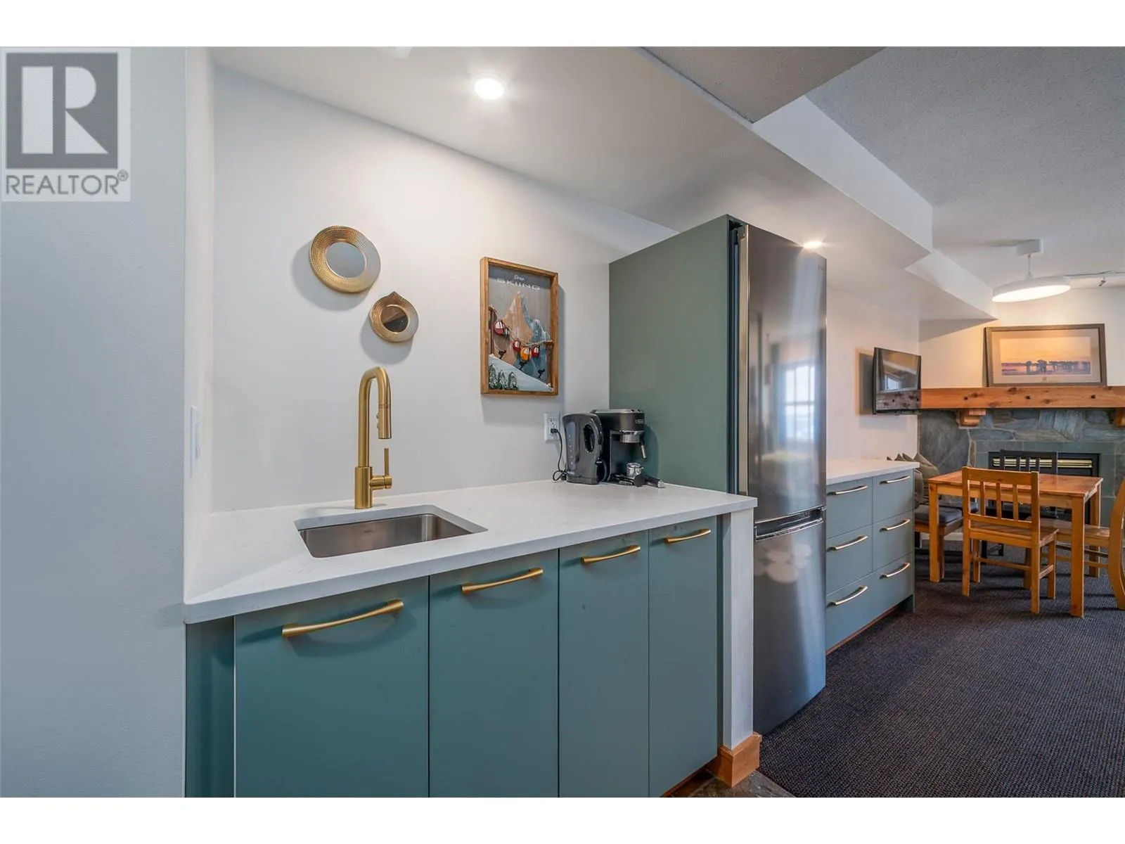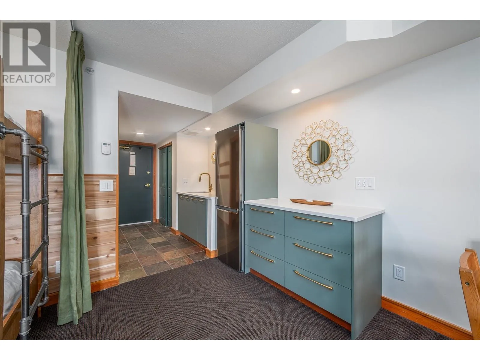 WELCOME TO THE MOST UNIQUE & CHARMING SUITE ON THE MOUNTAIN! Beautifully Updated Top Floor condo located in the middle of the Village at Big White!!! NO GST !! - This White Crystal Inn - NO GST !! Unit showcases a fresh on-trend decor including; cedar cladding, curtains & window treatments, kitchen cupboards, drawers, countertops & appliances, bedroom furniture, light fixtures and wall mounted TV. Find coat hooks for all & a cozy inviting rock feature fireplace for all round - year round use, as the Big White Community has embraced the off-season outdoors with trails for trekking & terrific mountainside mountain biking. This Fully equipped condo comes with kitchen appliances, furnishings & creative hand-crafted custom bunkbeds to easily sleep 5! THE Very Best location in the Village for access to Big White amenities and comes with use of one Underground Parking stall. A Ski in \ Ski out entrance makes it easy hop on the Bullet Express Chair & Lara's Gondola. The Outdoor Hot Tub & Patio is an enticing way to end the day with post ski recreation while The BullWheel Family Restaurant / Pub is also onsite at the Inn for your added convenience & enjoyment, all of this and more make this place an ideal spot to stay and super easy to invest in with a central reservations system to opt into! (id:27476)