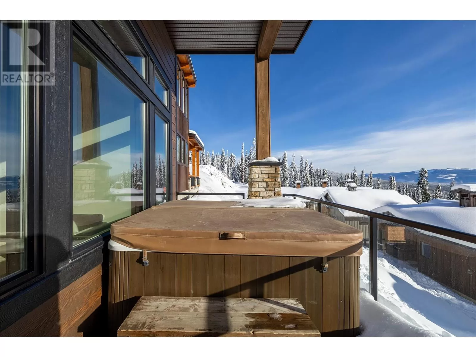 Discover the ultimate alpine escape at this exquisite, custom-built chalet nestled in the prestigious Feathertop Estates at Big White Ski Resort. With true ski-in, ski-out access right from your back door, youâre steps away from world-class slopes and breathtaking, unobstructed views of the Monashee Mountains. This is luxury mountain living at its finest, designed for the discerning traveler who values comfort, style, and unparalleled natural beauty. This four bedroom, three bathroom with a cozy loft, comfortably accommodates multiple families or groups, ensuring both privacy and communal gathering spaces. The open layout showcases impeccable craftsmanship and thoughtful design, with every detail centered around maximizing the captivating mountain vistas. The chaletâs kitchen is a chefâs dream, featuring a spacious island, pot filler, and premium appliancesâideal for creating memorable meals and hosting friends and family. Whether relaxing in the private hot tub under starlit skies, enjoying movie night in the custom theater, or unwinding in the fully furnished games room, every moment here is designed for relaxation and pleasure. The oversized, heated two-car garage fits two full-sized trucks and all your ski equipment, with ample driveway parking for additional vehicles. With easy access to Kelowna Airport, including direct flights from major cities like Montreal, Toronto, and Los Angeles, this Big White chalet is more than a vacation; itâs an investment in an extraordinary lifestyle. (id:27476)