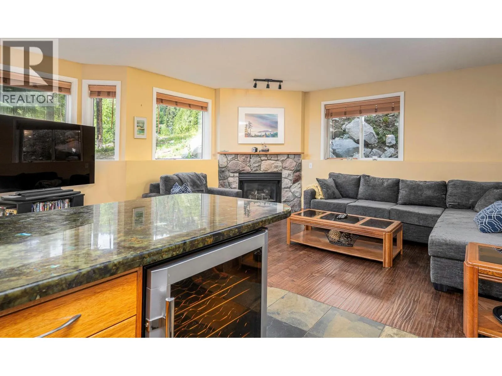 This very practical unit sits directly on the Perfection ski run. Ski in and out of your door with 10/10 ski access. It comes updated with granite countertops, heated floors, updated sectional couch in the main room and the flexibility of having the option of a second suite or opening up the walls and turning it into one larger unit. The full one bedroom suite can be rented and pay all your expenses while you enjoy the use of the two bedroom space overlooking the ski run. The property will be vacant and ready to go for the ski season. GST paid and all furniture included. (id:27476)