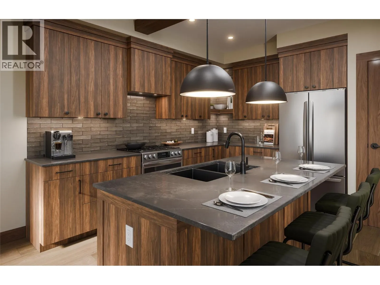 Built by H&H Custom Homesârecognized as Okanagan Builder of the Yearâ255 Feathertop Way introduces the newest ski-in, ski-out residences at Big Whiteâs Sundance Resort. With direct connections to the Bullet Express and Black Forest chairlifts, these homes put you on the slopes within moments, while Big Whiteâs Village Centre is just a short walk away. The architecture draws from modern craftsman design, blending board-and-batten siding, black metal-clad windows, wood accents, and far-reaching mountain views. Each 2,300-square-foot residence includes 3 bedrooms, 3 bathrooms, a den, and an oversized lock-off closet. The main floor integrates an open kitchen and gathering area with a covered deck, hot tub, and gas BBQ connectionâideal for year-round use. Every unit also incorporates a 510-square-foot, 1-bedroom suite with its own entrance, covered patio, summer kitchen, luxury vinyl plank flooring, and upgraded soundproofing. Sundance Strata fees cover building insurance, exterior maintenance, garbage and recycling collection, snow removal, and full access to resort amenitiesâincluding the private shuttle, heated outdoor pool and slide, multiple hot tubs, and indoor facilities. (id:27476)