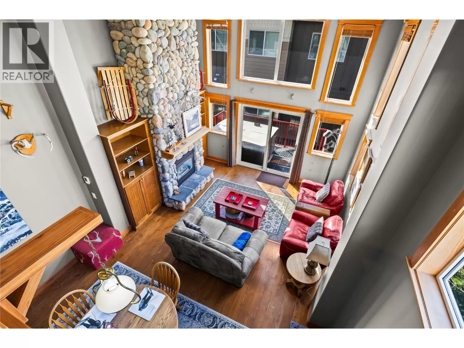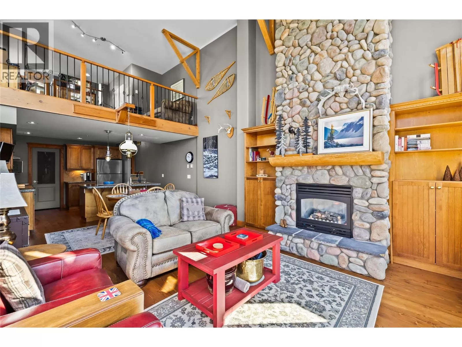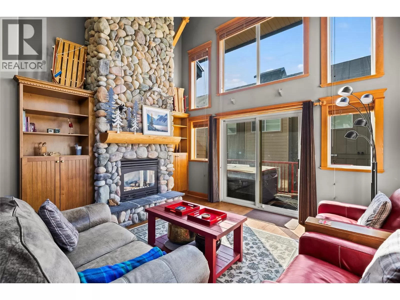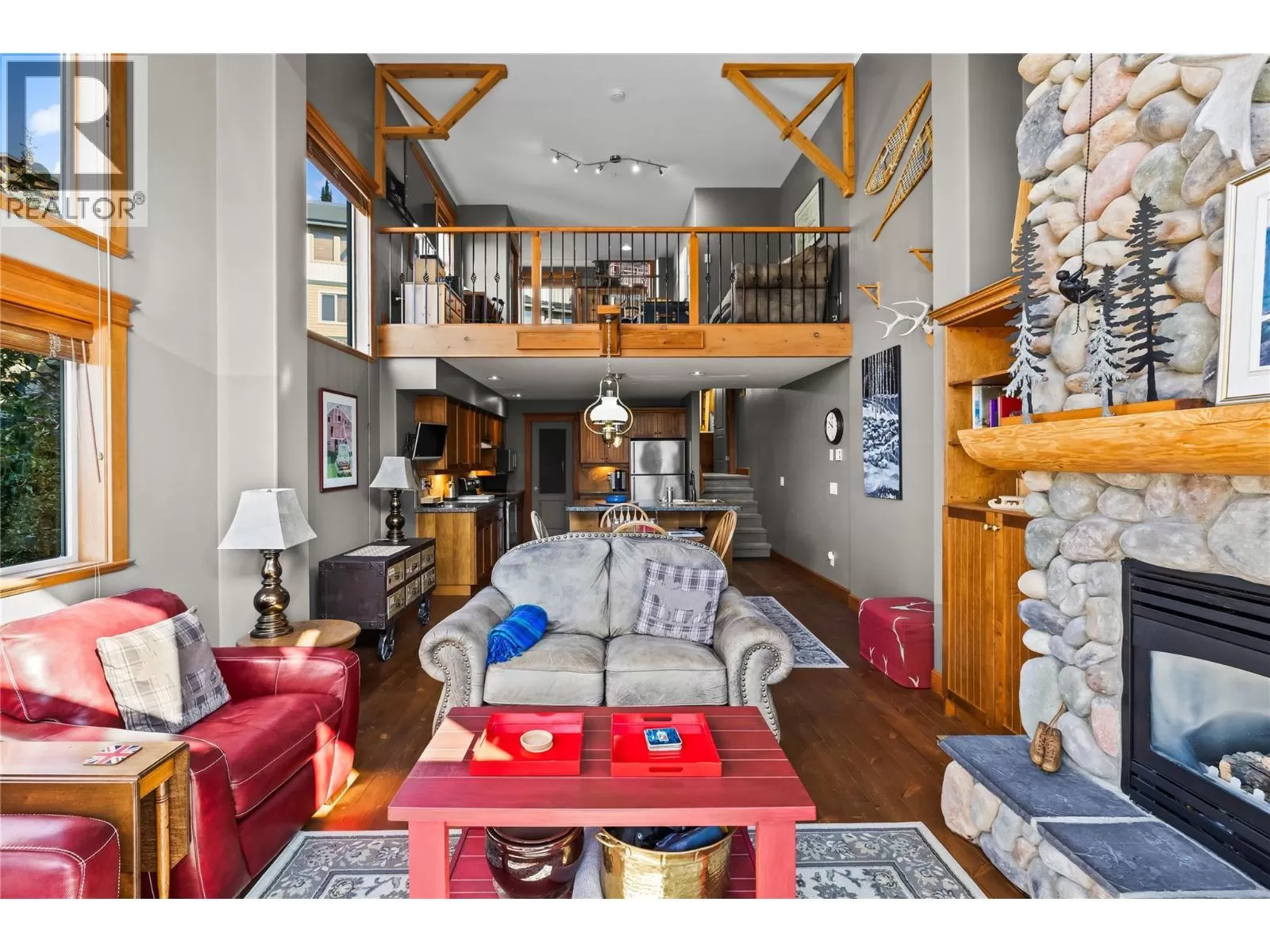 Welcome to Treetops #26, a rare end-unit townhouse that delivers privacy, space, and that unmistakable Big White mountain vibe. Spanning three levels, this home offers two generously sized bedrooms with their own ensuites, plus a versatile loft/den that can easily serve as a third bedroom. With three bathrooms and the convenience of an in-suite washer and dryer, itâs designed for easy mountain living. The great room is anchored by a dramatic two-story river rock fireplaceâperfect for gathering around after a day on the slopes. Sunlight pours through additional windows, highlighting the panoramic views of the mountains and those gorgeous Okanagan sunsets. Step outside and youâre only a short stroll to the Mogul Track ski-in, ski-out or the free mountain shuttle, keeping you effortlessly connected to the action. After skiing or riding Big Whiteâs famous champagne powder, retreat to your private hot tub for the ultimate après experience. With strata handling snow removal, roadways, and waste services, you can focus on what matters mostârelaxing and making memories. Treetops #26 isnât just a getaway; itâs a true alpine retreat ready to be enjoyed. (id:27476)