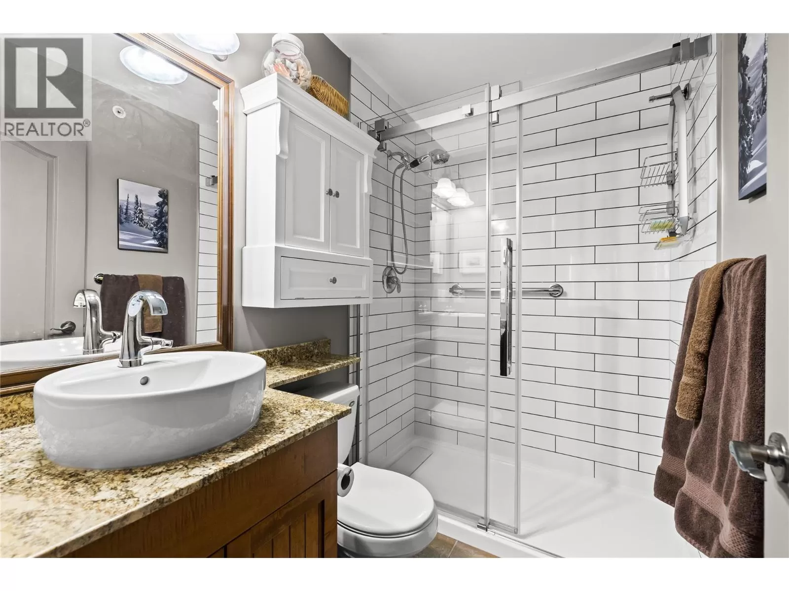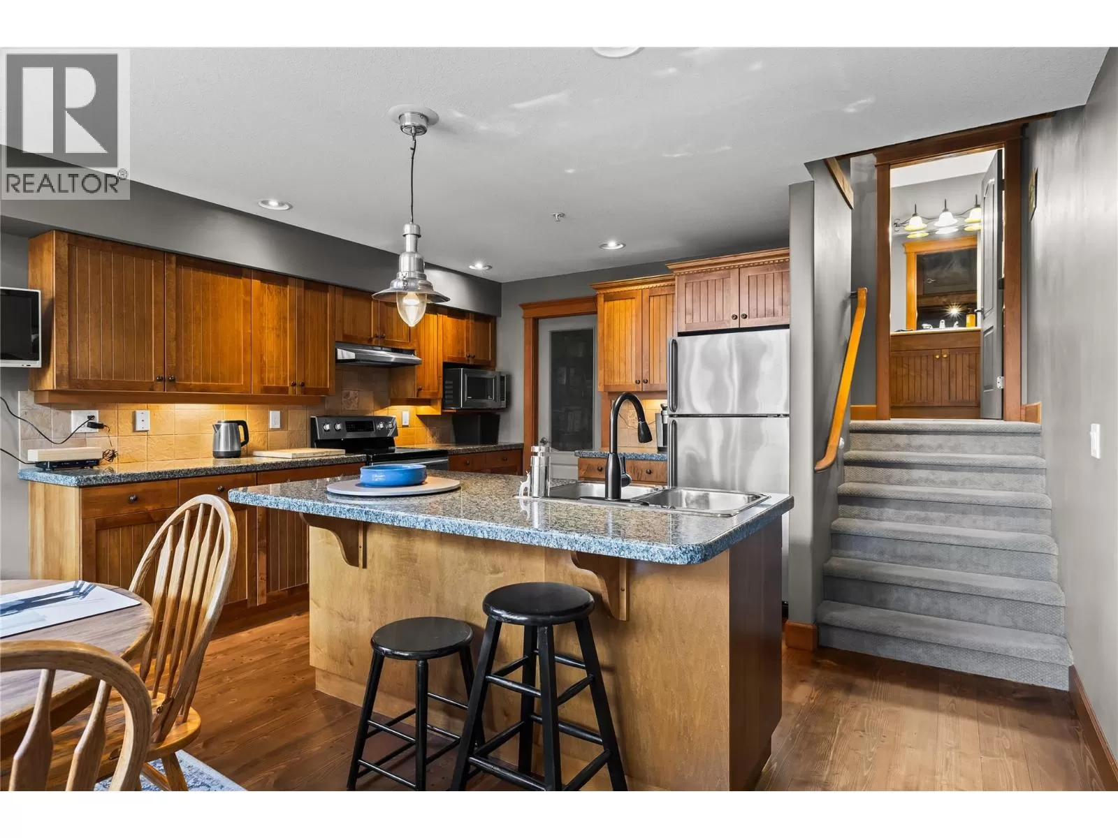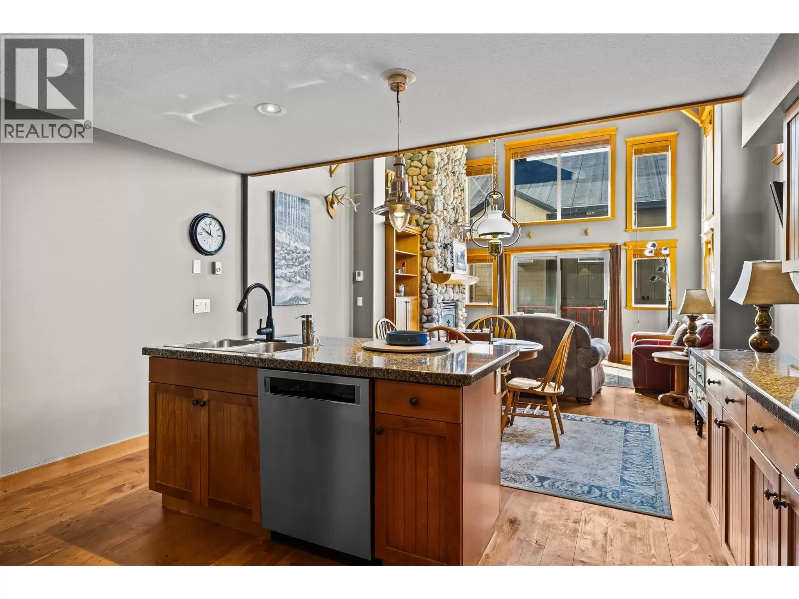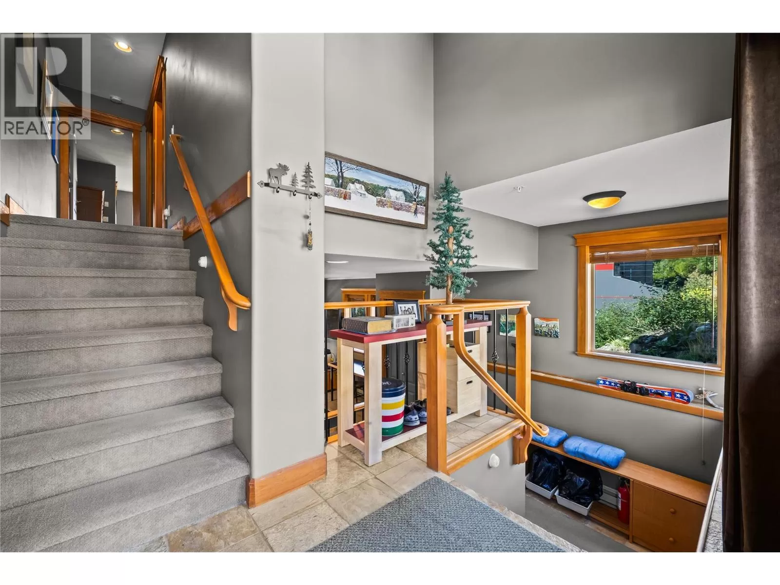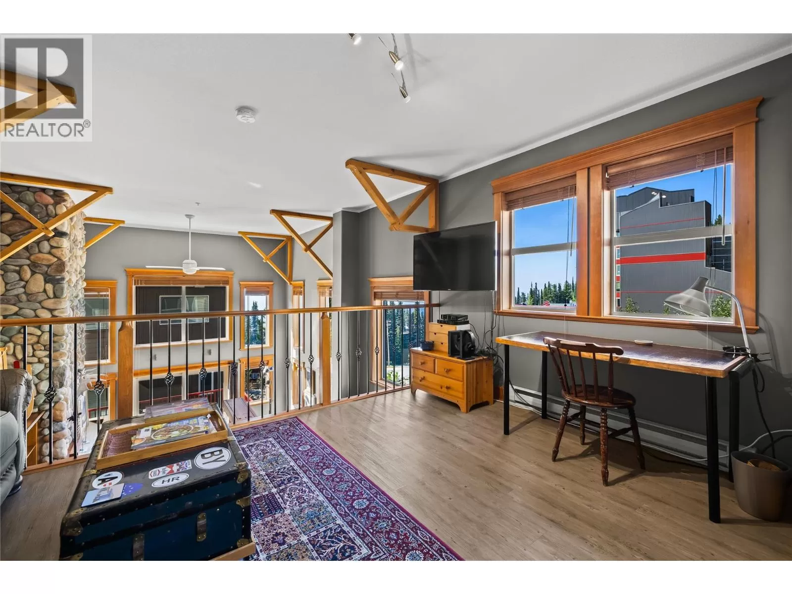 Welcome to Treetops #26, a rare end-unit townhouse that delivers privacy, space, and that unmistakable Big White mountain vibe. Spanning three levels, this home offers two generously sized bedrooms with their own ensuites, plus a versatile loft/den that can easily serve as a third bedroom. With three bathrooms and the convenience of an in-suite washer and dryer, itâs designed for easy mountain living. The great room is anchored by a dramatic two-story river rock fireplaceâperfect for gathering around after a day on the slopes. Sunlight pours through additional windows, highlighting the panoramic views of the mountains and those gorgeous Okanagan sunsets. Step outside and youâre only a short stroll to the Mogul Track ski-in, ski-out or the free mountain shuttle, keeping you effortlessly connected to the action. After skiing or riding Big Whiteâs famous champagne powder, retreat to your private hot tub for the ultimate après experience. With strata handling snow removal, roadways, and waste services, you can focus on what matters mostârelaxing and making memories. Treetops #26 isnât just a getaway; itâs a true alpine retreat ready to be enjoyed. (id:27476)