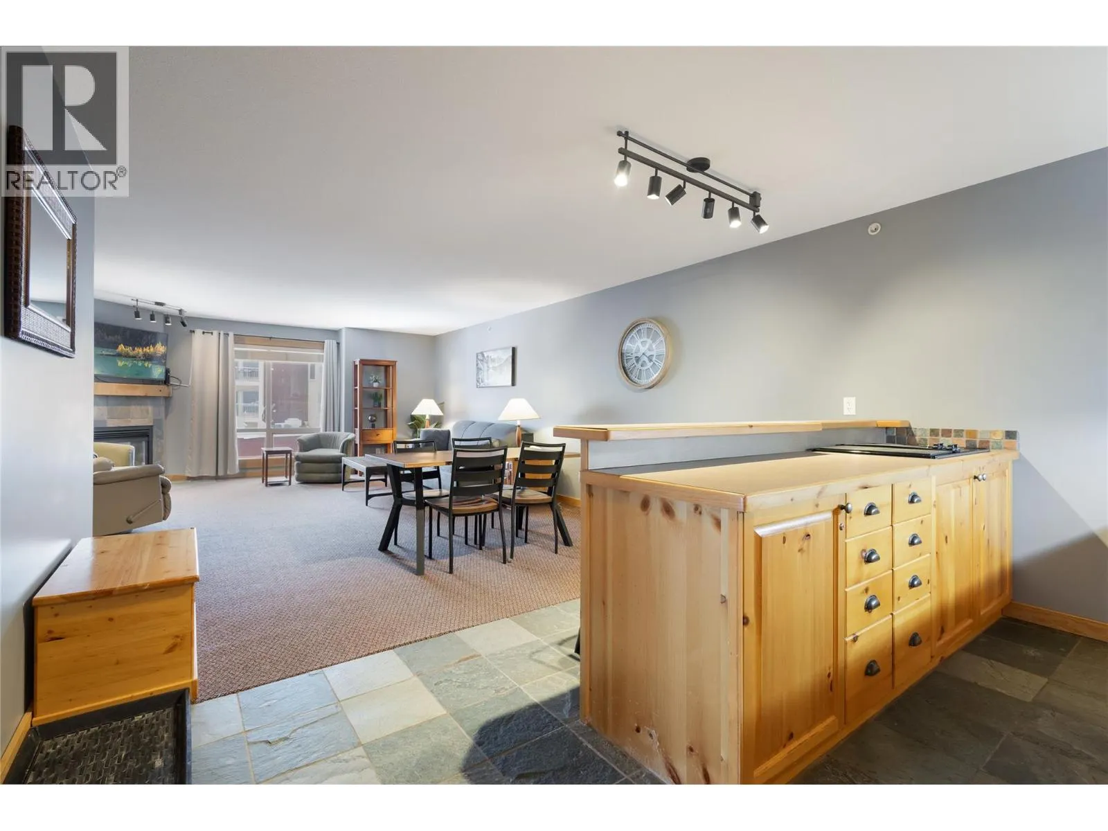 Discover the ultimate ski-in/ski-out opportunity with this top-floor, corner unit nestled right in the heart of the village! Whether you're an investor looking for a prime rental property or a mountain lover seeking your own slice of alpine paradise, this spacious 1-bedroom, 1-bathroom gem is ready to impress. Step inside one of the largest units in the building and be greeted by an open, airy space that comfortably accommodates up to 4 guests. Enjoy the warmth of the gas fireplace, whip up meals in the fully equipped kitchen that whole family can enjoy. Strata fees include heating, cooling, wifi and cable making it an effortless investment with no surprises. Leave your car in the designated parking spot, store your gear in the private locker, and hit the slopes right beside the Plaza Chair. The location, space and amenities tick all the boxes to ensure you maximize on nightly rentals. After a day carving through fresh powder, relax in the communal hot tub or refuel at the renowned Black Diamond Restaurantâboth just steps away. A property like this doesn't come along everyday and doesn't just make for a great investment, but a place to create memories for a lifetime (id:27476)