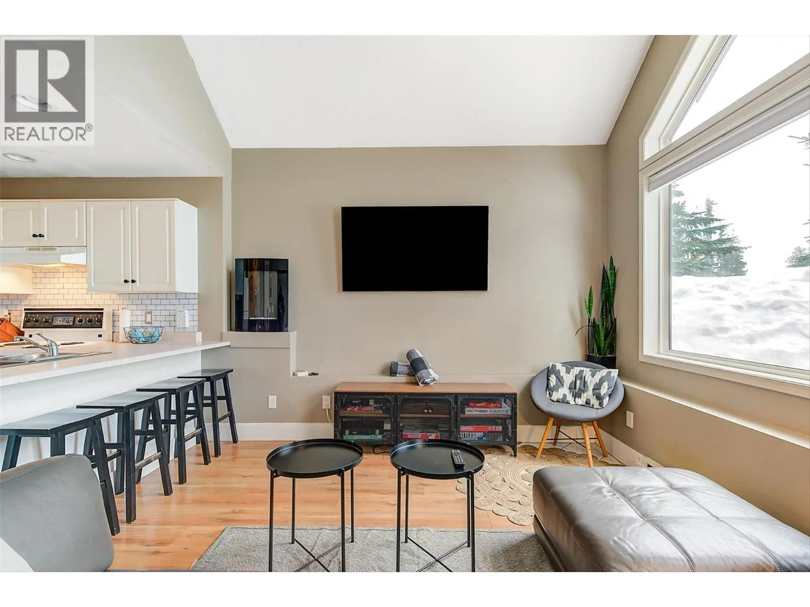 Welcome to your mountain retreat at Big White Ski Resort. This is the perfect opportunity to get ready for this years ski season, weekend getaways, holidays in the mountain, family ski trips or as a fantastic rental opportunity. This fully furnished 2 bed/1 bath unit has a townhouse living feel, is located in the community of Snowpines with several ski run options to lead you from a path right out your front your door to 3 chairlifts and then back home to your hot tub after a exhilarating day on the slopes. The location and space lends great investment value, includes an outdoor ski locker, BBQ area, 2 parking spots, and high vaulted ceilings to make it feel cozy yet spacious. The main living window captures that morning light and Monashee Mountain sunsets! With a well appointed kitchen including a dishwasher, large Primary bedroom with a stacker washer/dryer, this is one to visit. Only a short 10 minute walk to the village with well lit paths on your walk home from the evening festivities or night out at the restaurants or bars. There are no rental restrictions and is ready for quick possession. Please view the Virtual Tour, and book your viewing today! (id:27476)