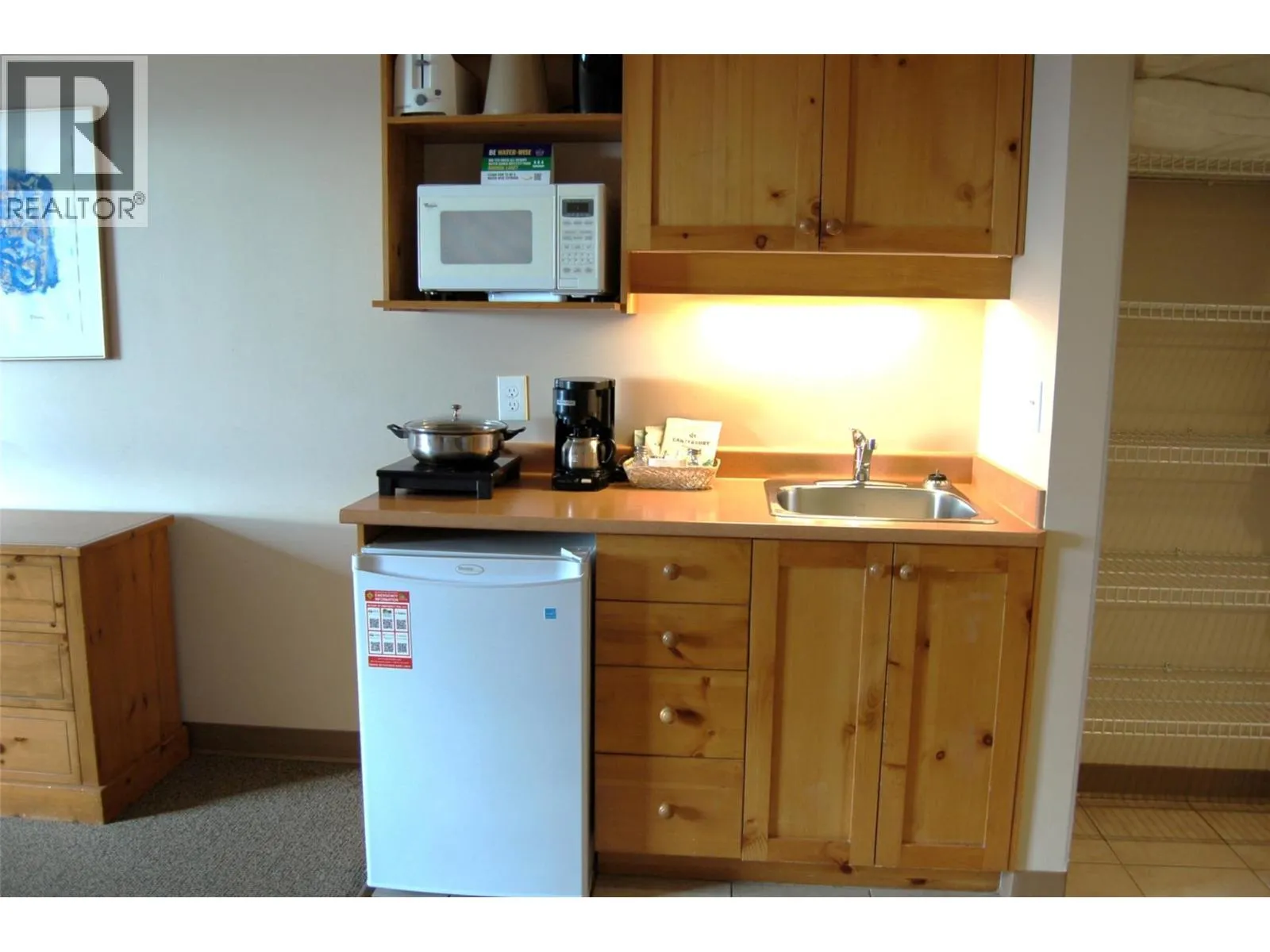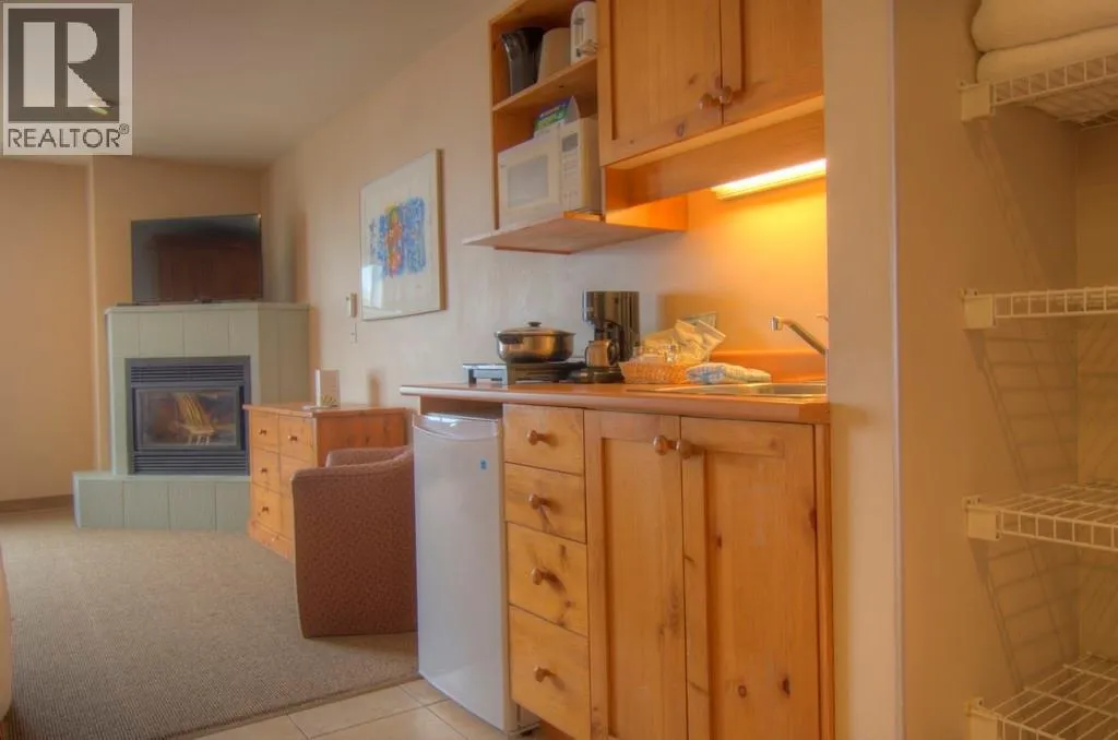 Fantastic opportunity at the Inn at Big White! Best location in the building - top floor, close to the elevator and stairs with a striking view of the Monashee Mountains - but away from the noise of the pool and hot tub and the sight line of the Plaza Chair. This studio unit has a comfy queen bed, table and chairs, wall bed, club chairs, cozy gas fireplace, Optic TV with music and movies, WiFi, galley kitchenette with an induction cooktop, mini-fridge, microwave, & more, & 4 pc bath. Enjoy magical sunsets & weekly fireworks from the comfort of your own suite! Bring your favourite foods & beverages but don't forget to explore all of the amazing eateries at Big White! Steps from the heart of the village, the Inn at Big White offers excellent resort amenities with a relaxing, small town atmosphere. After a day on the slopes, enjoy the breathtaking views from the outdoor pool & hot tub, play in the games/party room, workout in the fitness center, & store your gear in the ski/board locker room. Front desk operates 24 hours for your convenience, and there is a restaurant, the Fat Marmot, on site for those nights when you feel like staying in. Park your vehicle upon your arrival in the secure, heated, underground parking garage and leave it there until departure day! The Inn at Big White is perfectly walkable. Use your unit as much or as little as you like - leave it in the rental pool when not using it and start collecting income right away, winter and summer! GST MAY APPLY. (id:27476)