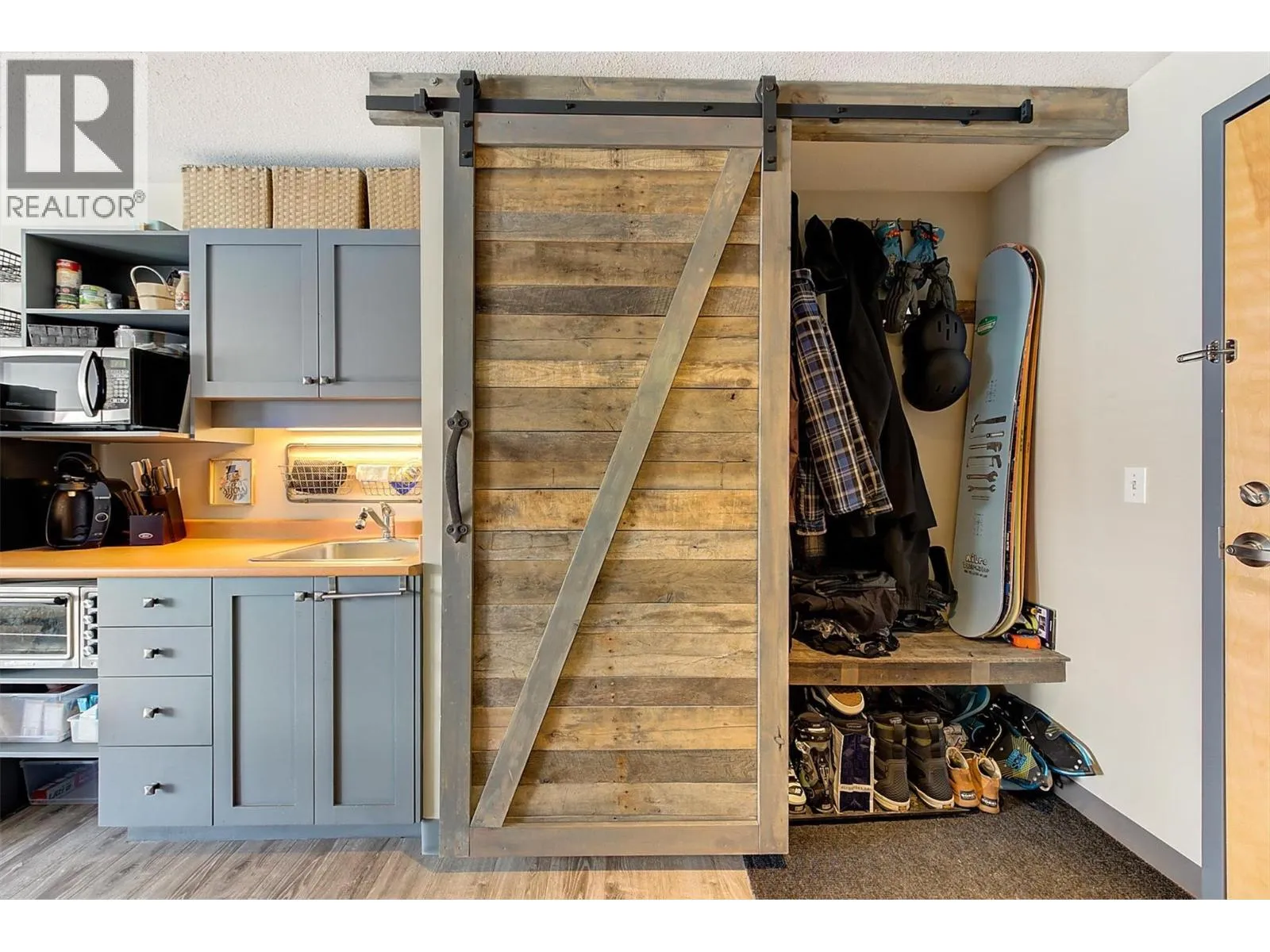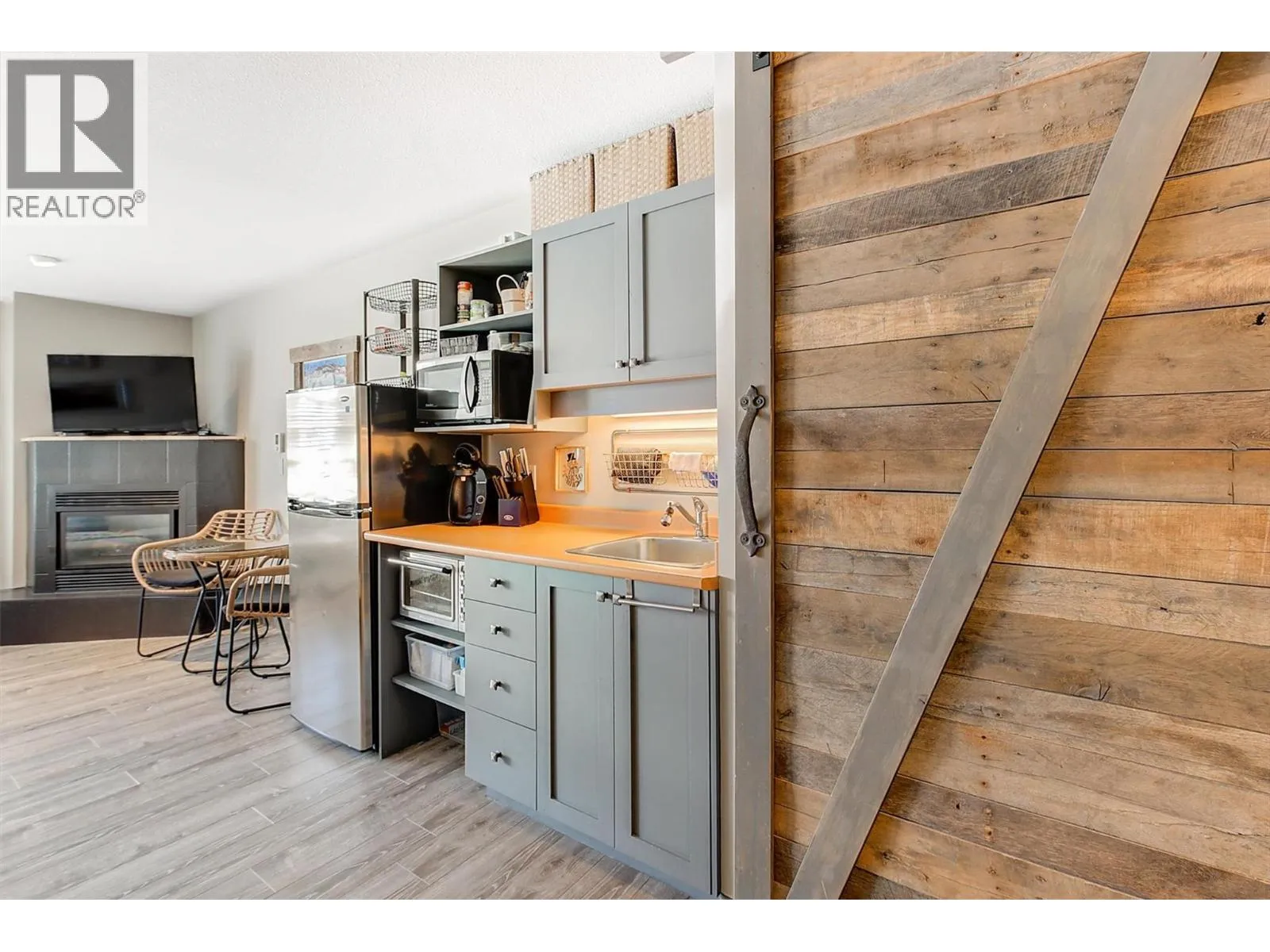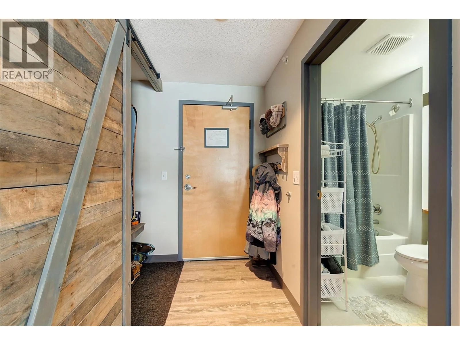 Welcome to this beautifully updated and meticulously maintained top-floor unit, move-in ready and waiting for new owners! Step inside to find modern vinyl plank flooring, fresh paint, new blinds, and stylish touches like a rustic barn door. Thoughtfully designed for comfort, the space accommodates up to four guests with a Murphy bed and a hide-a-bed sofa. Ideally located just steps from Village amenities, youâll enjoy access to an outdoor heated pool, hot tub, fitness centre, and games room. Towels for the pool and hot tub are provided and laundered by the strata for added convenience. Strata fees also include internet, cable, heat, water, gas, and electricity, making ownership simple and stress-free. Additional features include secure underground parking (with first-come, first-served surface parking), a locker room with ski-key racks, and communal laundry facilities. This property is versatile, perfect as a personal getaway, short-term rental, or both. With many recent updates, including furniture and bathroom fixtures, it offers a quiet retreat on the cool side of the building in summer. Plus, no GST is payable, making it an even more attractive investment. Donât miss this opportunity to own a stylish, convenient, and comfortable unit in the heart of the Village! (id:27476)
