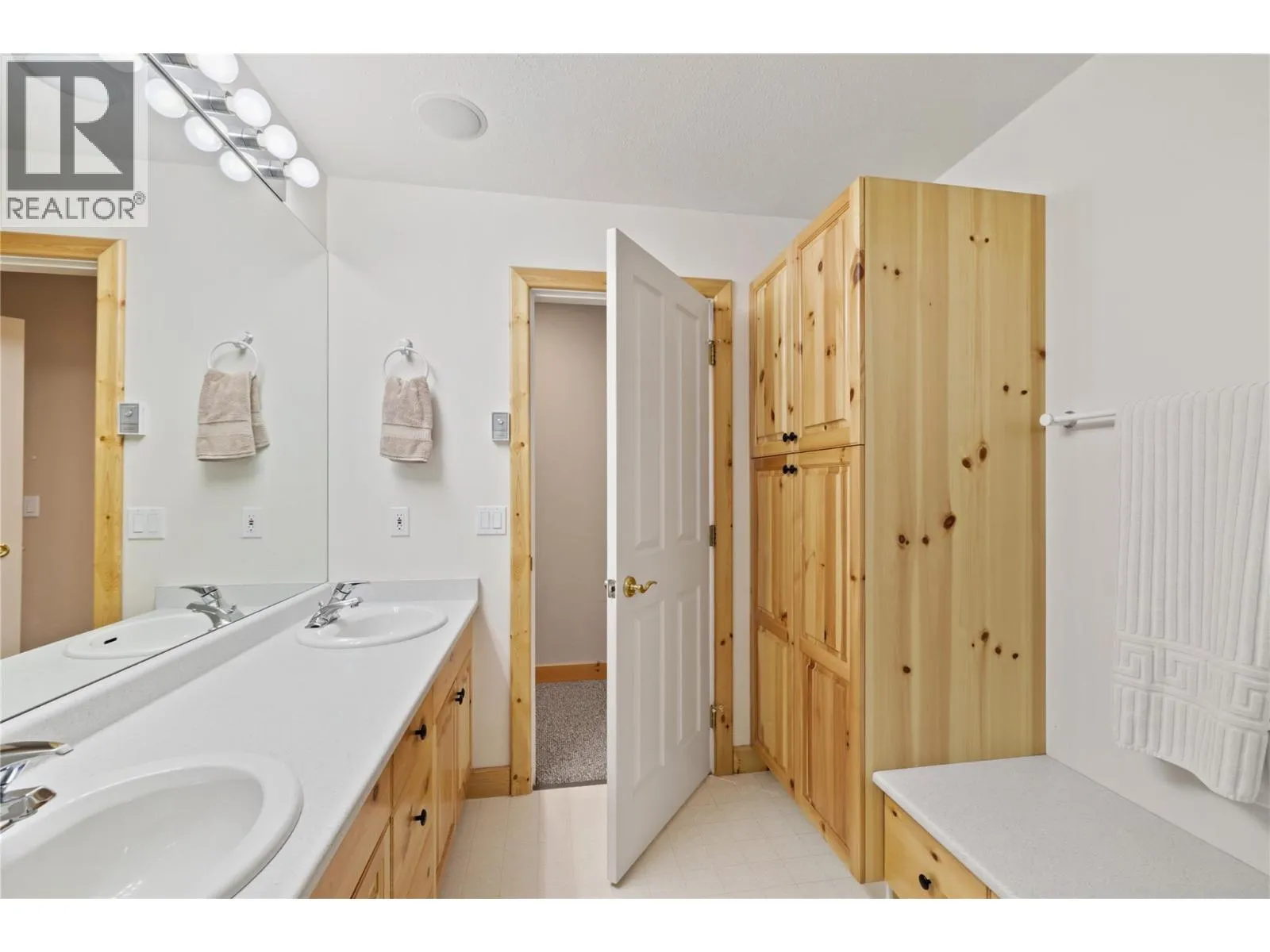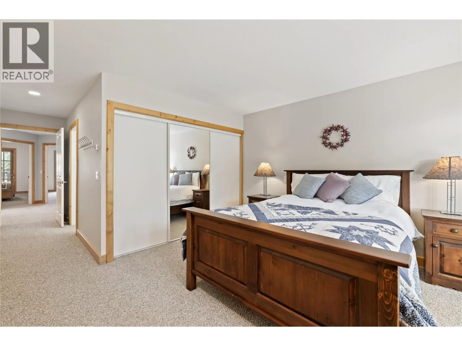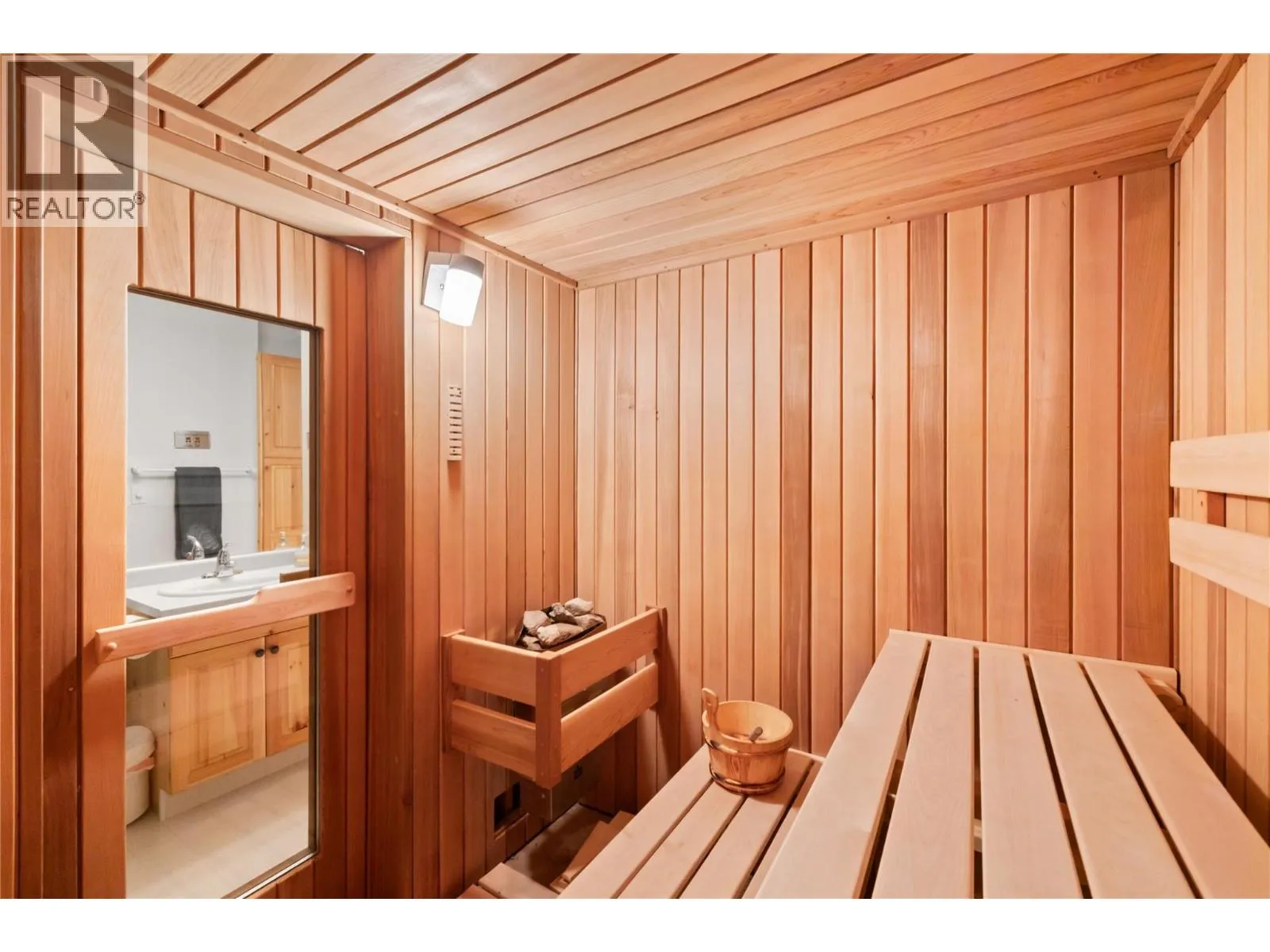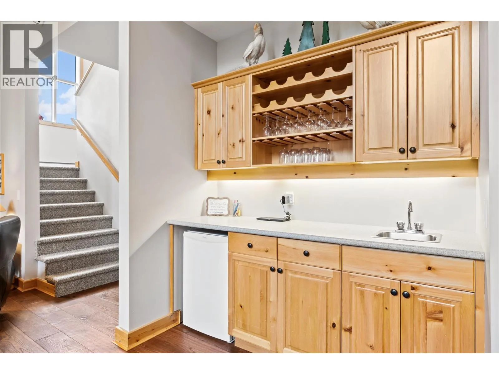 Discover mountain living at its finest in this stunning 4 bed, 4.5 bath half duplex at Big White Ski Resort. Warm and inviting with rich wood finishes from top to bottom, vaulted wood ceilings, and two cozy fireplaces, this home exudes alpine charm. The main floor offers an open, light-filled living space that flows seamlessly onto a large covered deck with a private hot tubâperfect after a day on the slopes. Enjoy true ski-in/ski-out access and incredible spaces for entertaining, including a spacious lower-level rec room complete with a bar area, full-size fridge, dishwasher, and walk-out covered patio. Two additional bedrooms and baths downstairs provide ample room for guests, while a private sauna offers the ultimate apres-ski retreat. Whether youâre looking for the perfect family getaway or a lucrative investment property, this home delivers the ultimate Big White experience. (id:27476)